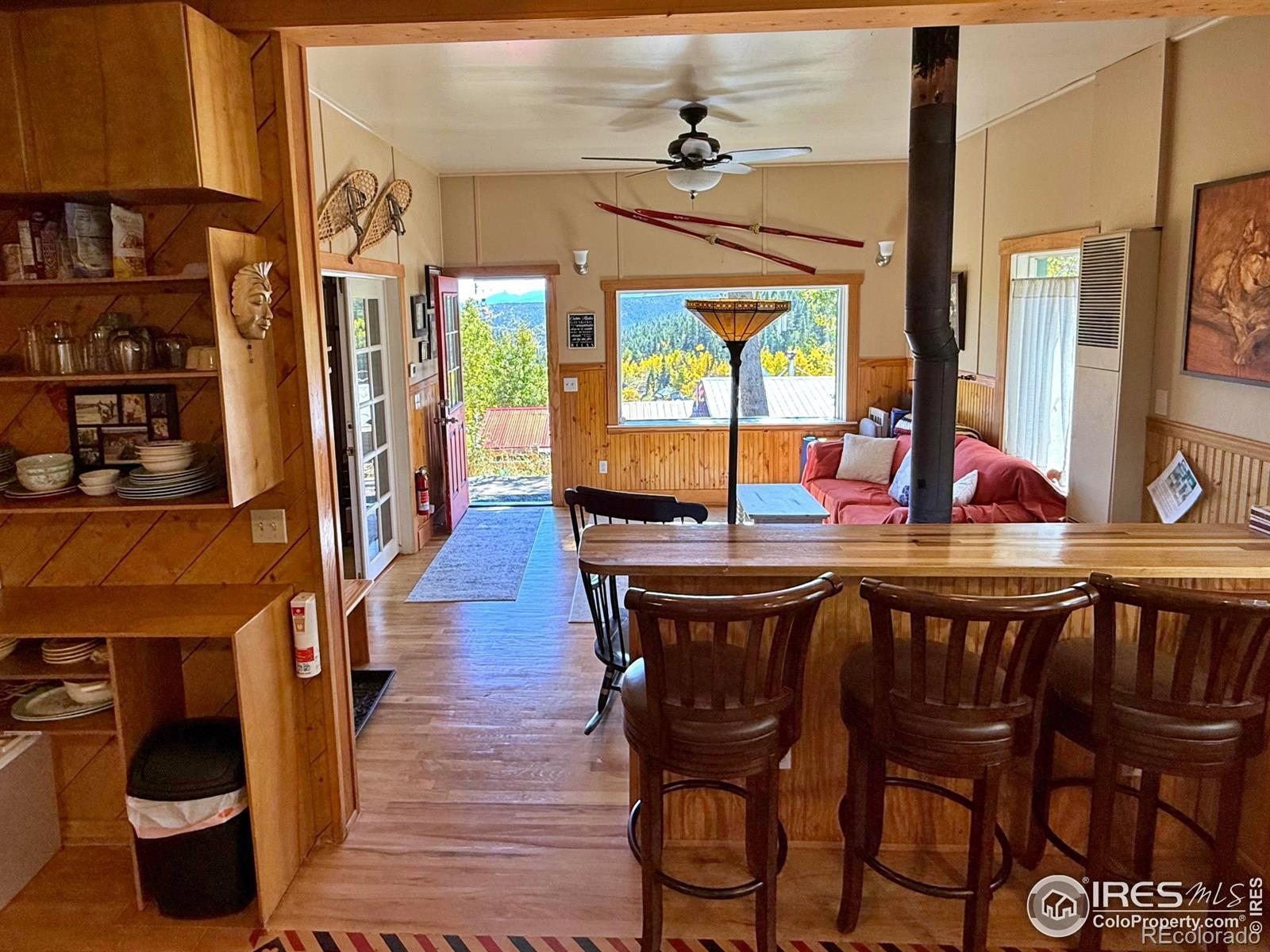Step into this artistic mountain cabin and fall in love! This oasis with a view is just a half hour from Boulder perched on the hillside in the unique town of Ward, along the spectacular Peak to Peak Hwy. With too many artistic features to list, you can feel the years of love invested in this cabin, full of useful shelves and other creative use of spaces. The bathroom is magical with a 6ft tub and a one of a kind tile surround. With an amazing wood stove you'll enjoy cozy winter nights, and at 9,200' the summers are cool and spectacular. Supplemental propane & electric heat also. The golden aspens will have you spellbound from the picture window while gazing across 30 miles of mountains. Despite the cozy setting amongst the neighbors, this is a private and quiet place, ideal as a weekend getaway, rental, or cozy home. On Town of Ward water that sources from an artisan spring above town, you'll never drink bottled water at home again. This is one of the last community water systems in the country pure enough to remain untreated. Just 10 minutes from beautiful Brainard Lake and Indian Peaks Wilderness this is truly a gateway to these spectacular Rocky Mountains. Nederland is just 20 min away and Eldora Ski area just beyond that. All pics within 10 minutes of the cabin. Call for an explanation of the alternative, indoor, toilet system. This will be a cash sale. A special home on the market for the first time in nearly 40 years.