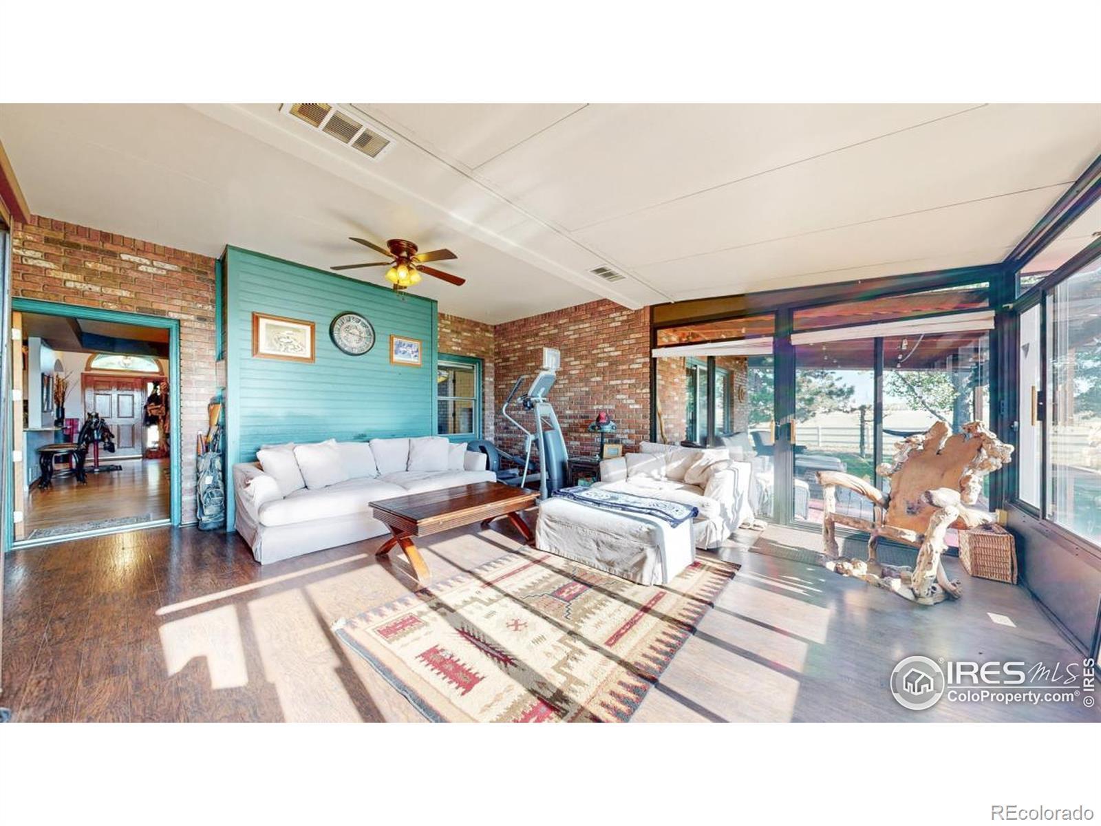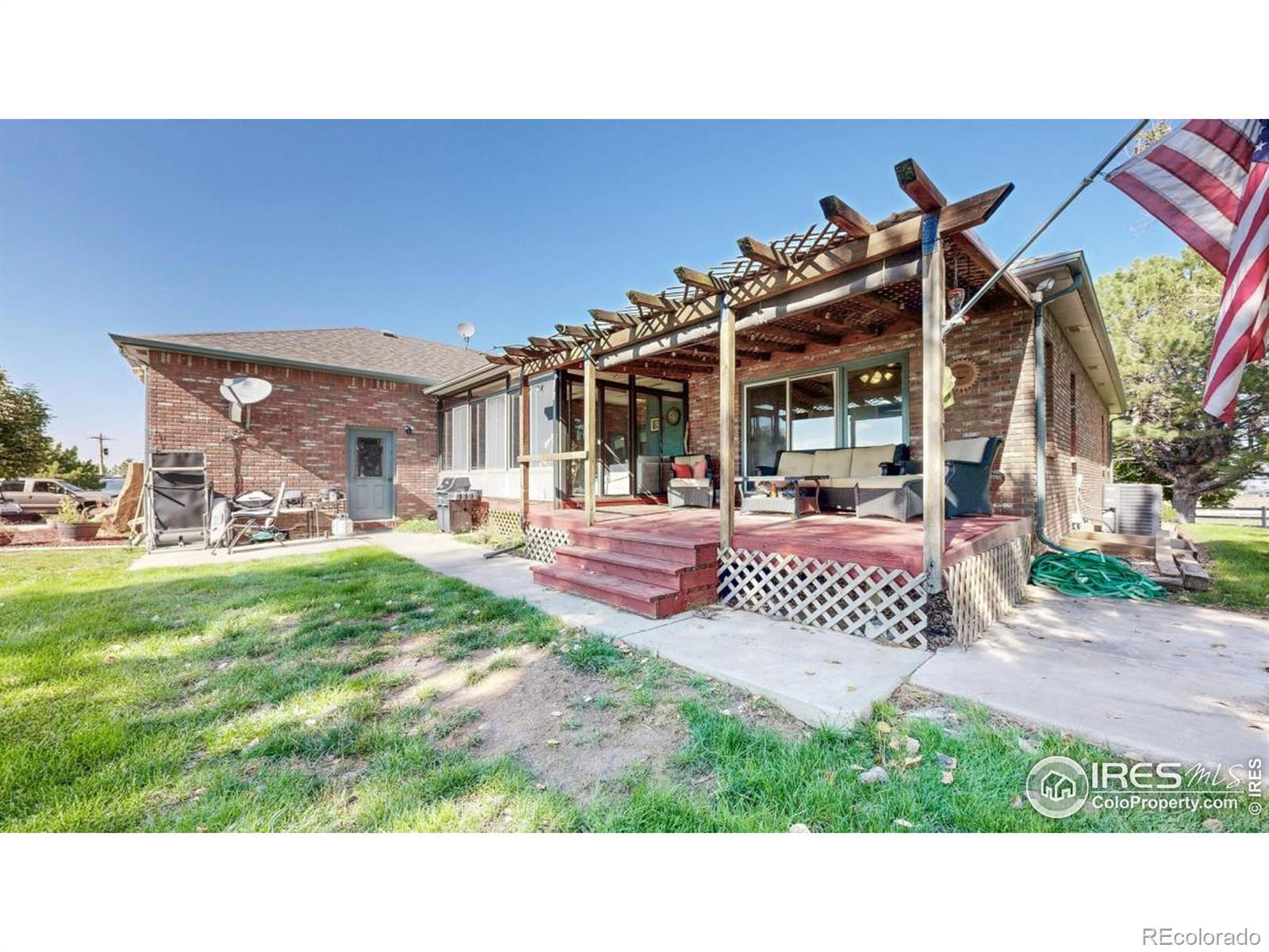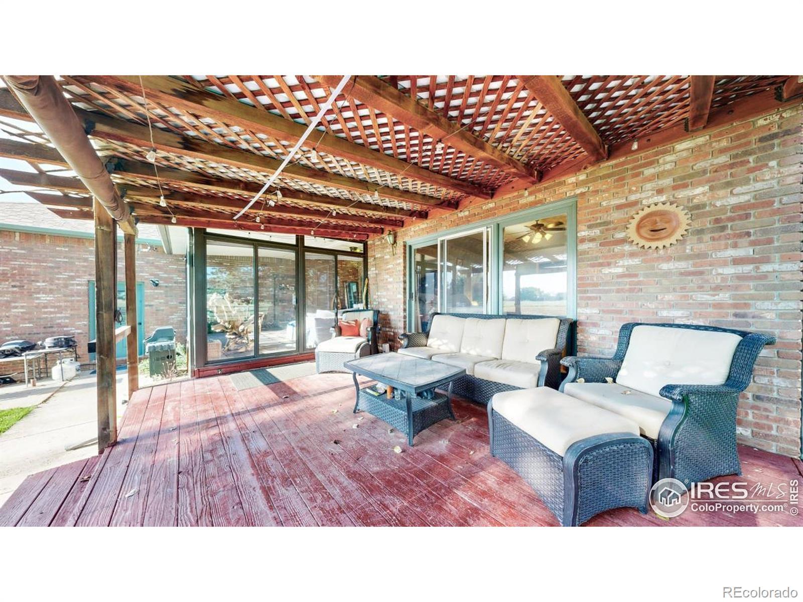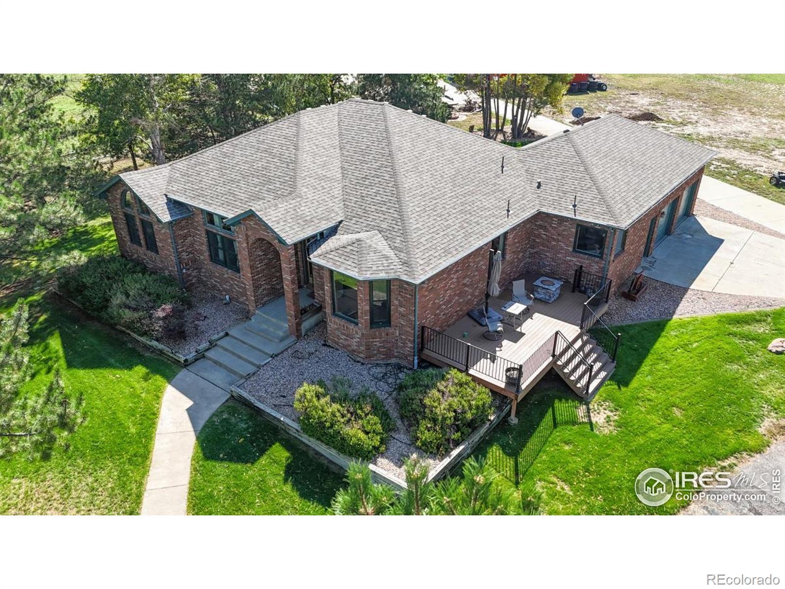 HORSES ALLOWED, TOYS And RV's. Gorgeous All Brick Ranch Home on Over 7 Acres w/ Spectacular Views. Walk Out of Your Primary Bdrm or Sunroom to the Deck. Warm, Inviting Floor Plan, with Great Attention to Detail & Quality. Basement Professionally Finished. Property Surrounded by Carefree Vinyl Fencing With Security Gates. All Steel 2000+ sq. ft. Insulated/Wired Shop with 16 Door. Plenty of Room for your RV. Easy access to I-25 Makes Commutes a Breeze.