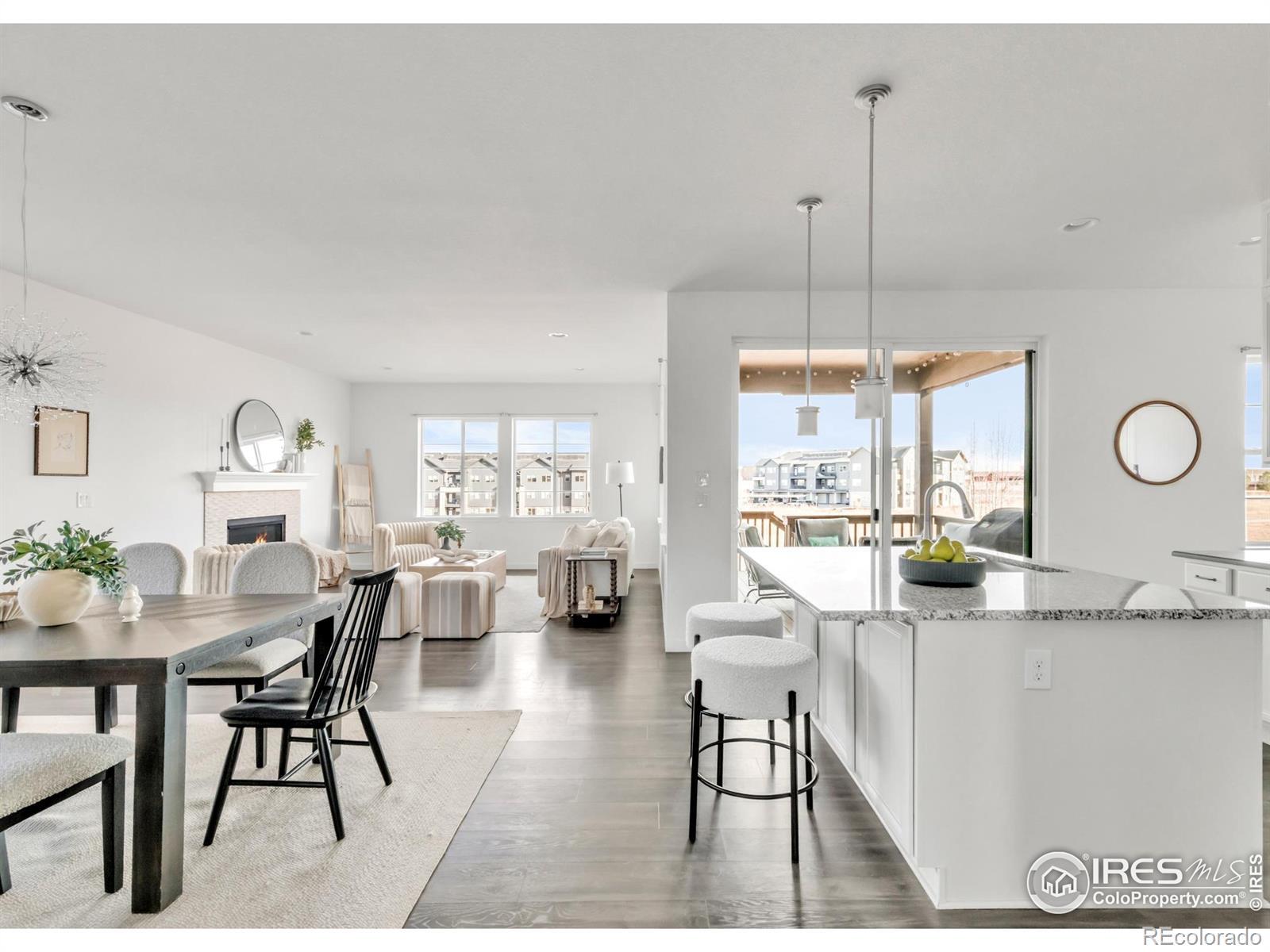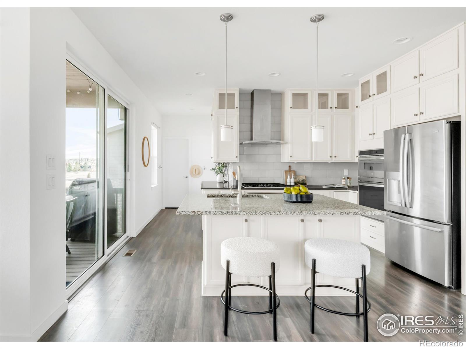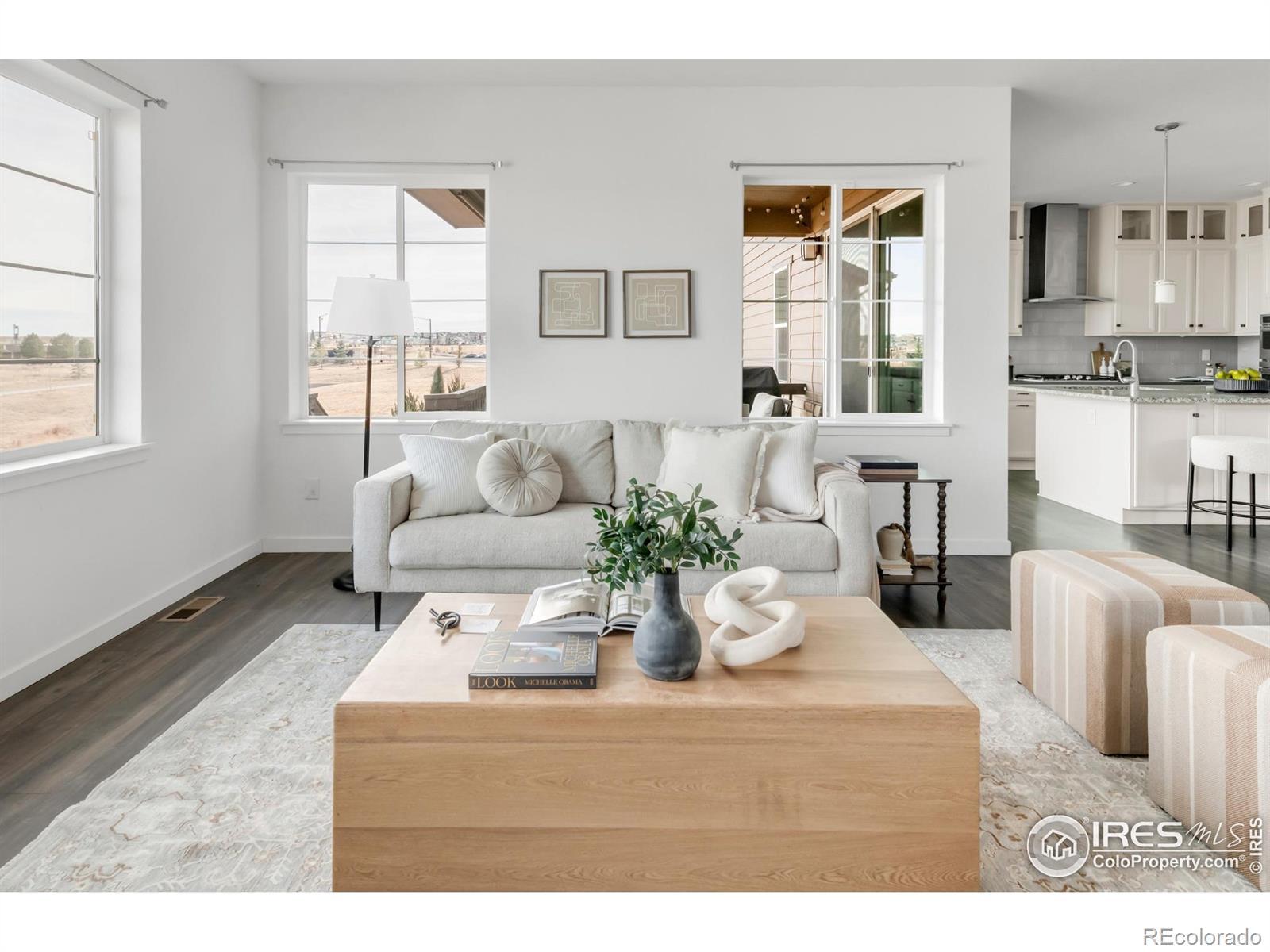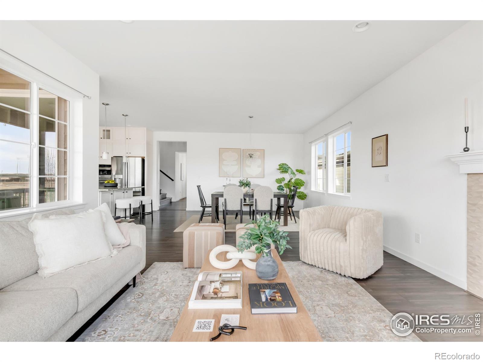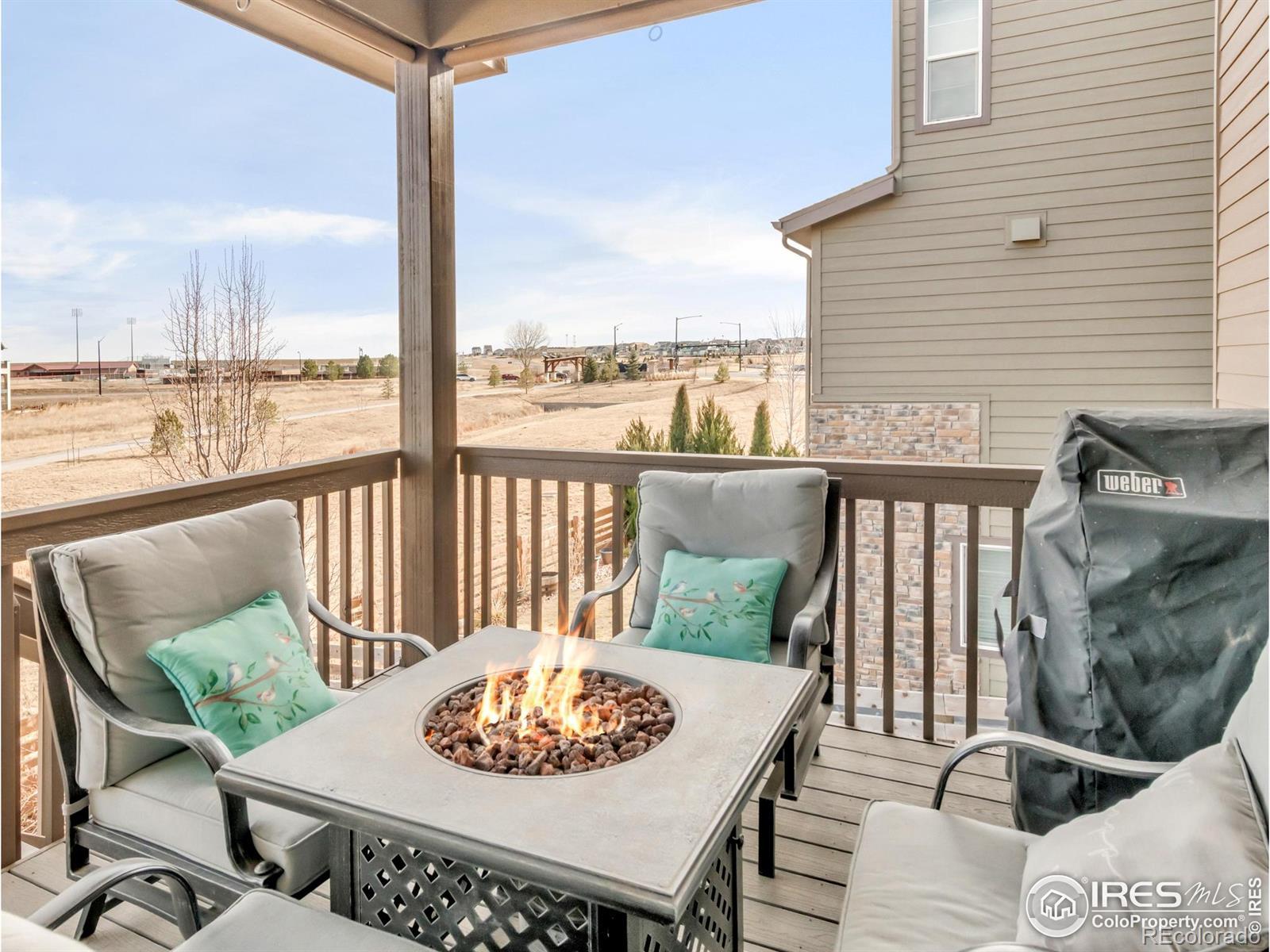 Tucked away at the end of a quiet cul-de-sac with no through traffic, and backing to serene open space, this 2019-built home is thoughtfully designed with room for everyone-and then some. With three distinct living spaces, a flexible layout, and a setting that feels both private and connected, it's a home that truly works for the whole family. A wide, welcoming foyer sets the tone and opens to a light-filled main level where new luxury laminate flooring flows seamlessly throughout. The living room is anchored by a sleek gas fireplace and connects effortlessly to the chef's kitchen, complete with a generous island, pantry, and double ovens-perfect for everyday meals, holiday hosting, and everything in between. A tucked-away half bath and a spacious main-level office add even more versatility. Step outside to the Trex deck, where included patio furniture invites you to linger and enjoy peaceful open-space views. From here, stairs lead down to the fully fenced backyard and covered patio-ideal for playtime, outdoor dining, or unwinding under Colorado skies. Upstairs, four bright bedrooms and three full bathrooms provide plenty of personal space, while a large loft offers a flexible second living area for homework, gaming, or relaxing together. A centrally located laundry room makes daily routines easy and efficient. The fully finished walkout basement introduces a true third living space, featuring a conforming bedroom, full bathroom, and expansive recreation area-perfect for guests, movie nights, fitness, or hobbies. Additional highlights include a three-car tandem garage, a newer roof installed in 2023, and owned solar panels for improved efficiency and long-term savings. Set in a secluded, no-through-traffic location yet just minutes from Erie's parks, trails, and vibrant amenities, this home offers the rare combination of privacy, functionality, and modern comfort.
