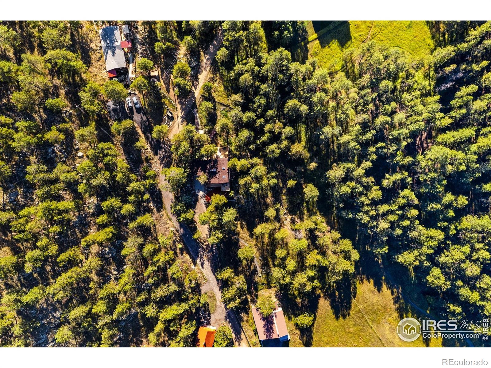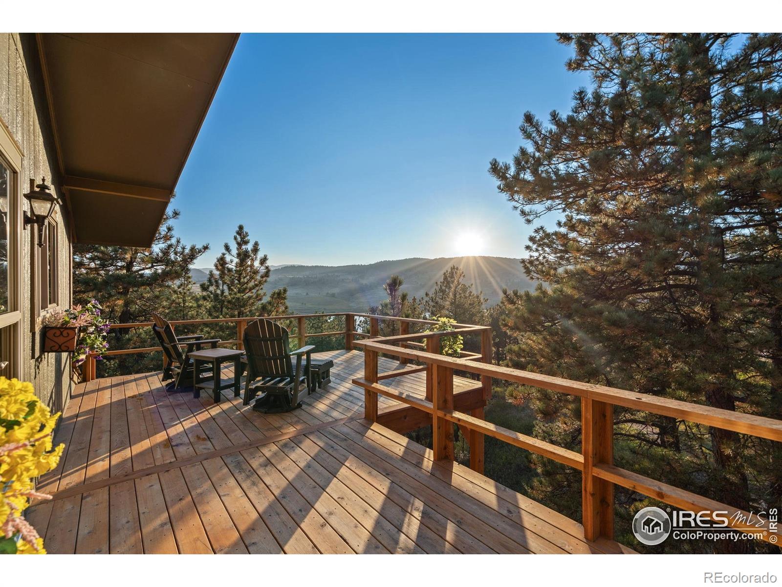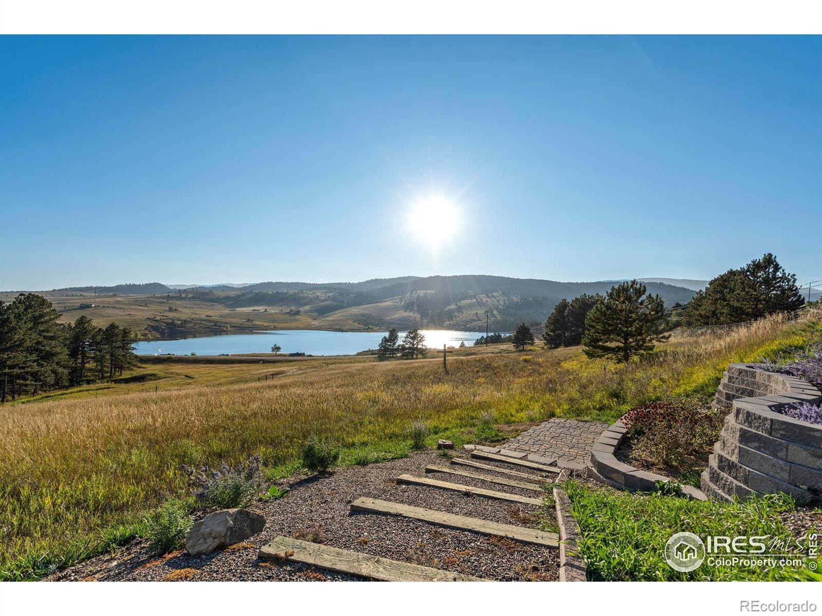 Nestled in a serene setting just 25 minutes from downtown Loveland, this unique property offers privacy, mountain views, and a lifestyle designed for both comfort and versatility. Zoned for horses and surrounded by mature trees and landscaping, the home is perfectly positioned to capture sweeping views of Pinewood Reservoir and the surrounding foothills. With multiple kitchens, entrances, and living areas, this residence is ideal for multi-generational living. Bedroom 3 is a detached in-law apartment, offering independence while staying close. Inside, you'll find multiple office spaces (one easily convertible into a 4th bedroom), abundant storage, and several fireplaces-both indoors and out-for cozy gatherings year-round. Outdoor living shines with expansive decks and patios on multiple levels, winding paths throughout the property, and a welcoming outdoor fireplace. Whether entertaining or simply soaking in the peaceful surroundings, every corner invites connection with nature. Car enthusiasts, hobbyists, or those in need of serious workspace will love the oversized garage complex featuring a recreation room, shop, craft room, loft, carport, and patio. Additional detached garage space provides even more storage and flexibility. Close to Carter Lake and Pinewood Reservoir recreation areas and trails, this property is the perfect balance of retreat and convenience-offering room to spread out, work, play, and live the Colorado lifestyle to its fullest.