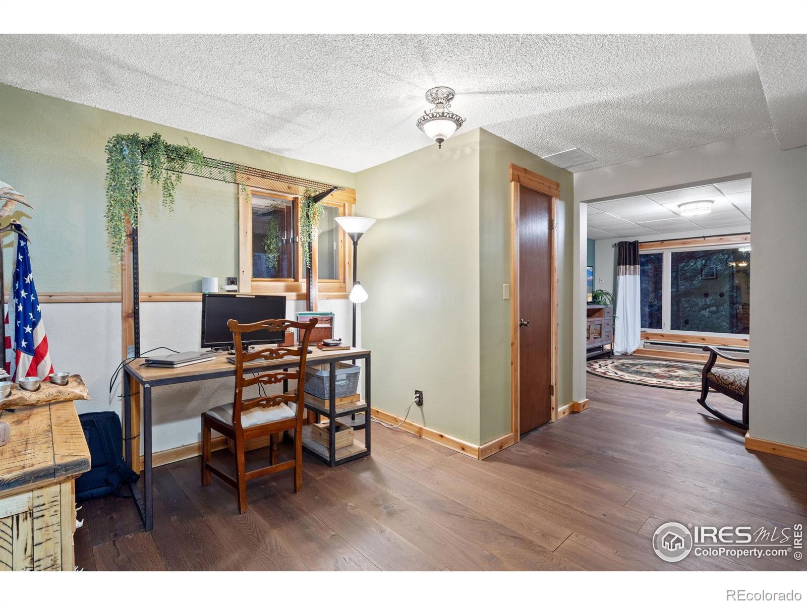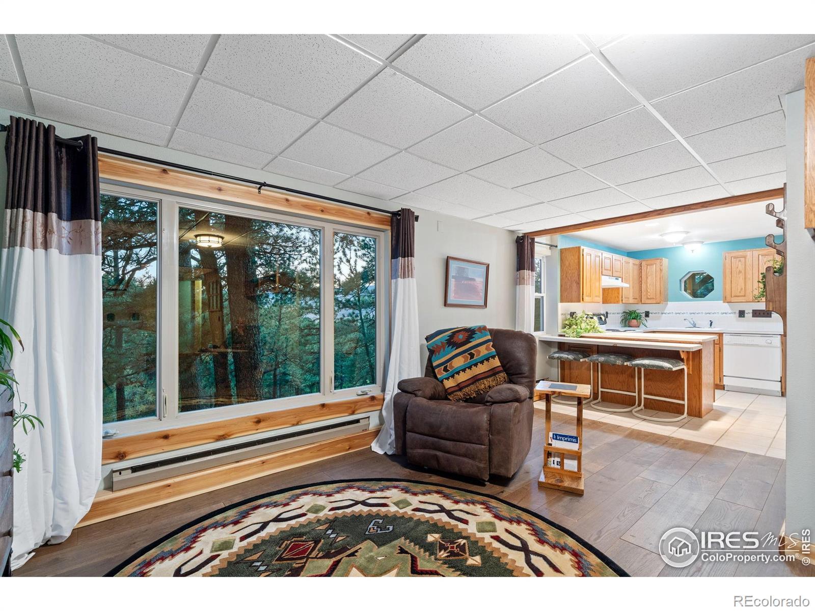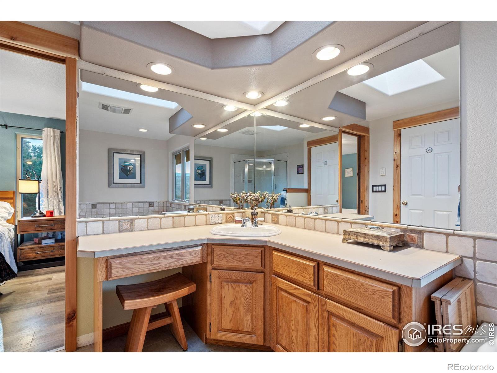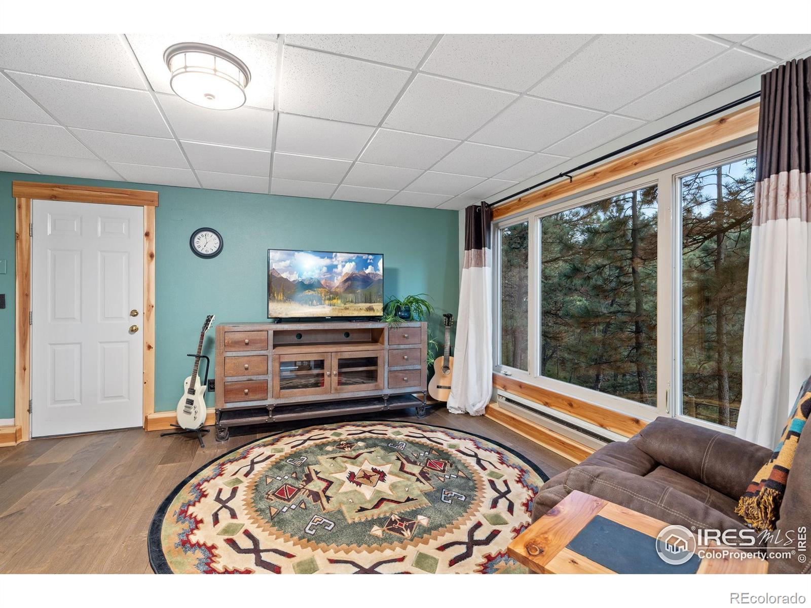 Nestled in a serene setting just 25 minutes from downtown Loveland, this unique property offers privacy, mountain views, and a lifestyle designed for both comfort and versatility. Zoned for horses and surrounded by mature trees and landscaping, the home is perfectly positioned to capture sweeping views of Pinewood Reservoir and the surrounding foothills. With multiple kitchens, entrances, and living areas, this residence is ideal for multi-generational living. Bedroom 3 is a detached in-law apartment, offering independence while staying close. Inside, you'll find multiple office spaces (one easily convertible into a 4th bedroom), abundant storage, and several fireplaces-both indoors and out-for cozy gatherings year-round. Outdoor living shines with expansive decks and patios on multiple levels, winding paths throughout the property, and a welcoming outdoor fireplace. Whether entertaining or simply soaking in the peaceful surroundings, every corner invites connection with nature. Car enthusiasts, hobbyists, or those in need of serious workspace will love the oversized garage complex featuring a recreation room, shop, craft room, loft, carport, and patio. Additional detached garage space provides even more storage and flexibility. Close to Carter Lake and Pinewood Reservoir recreation areas and trails, this property is the perfect balance of retreat and convenience-offering room to spread out, work, play, and live the Colorado lifestyle to its fullest.