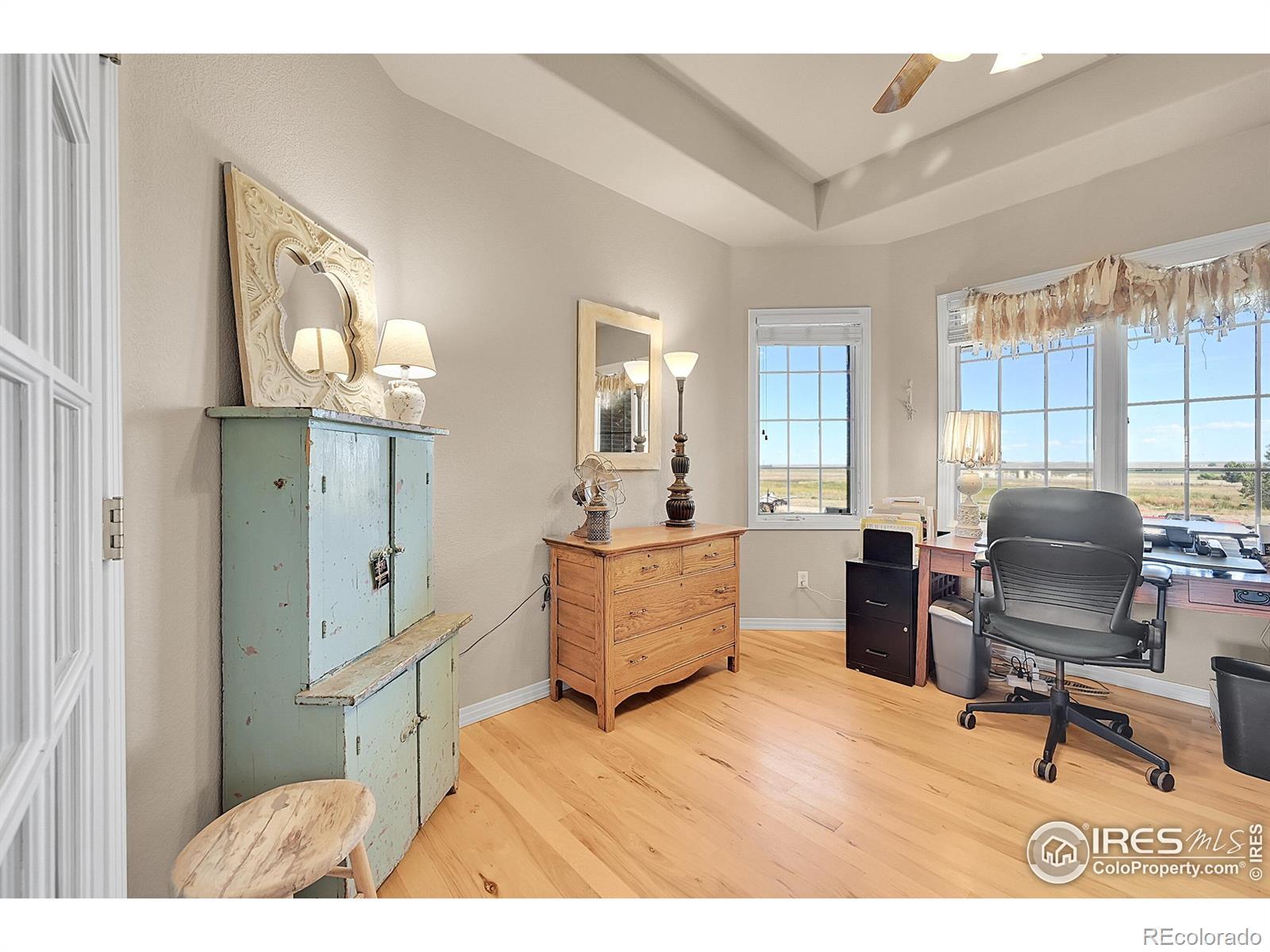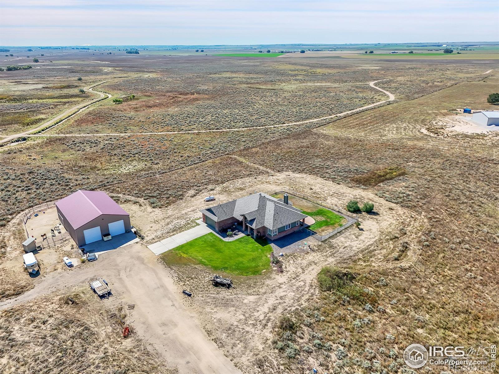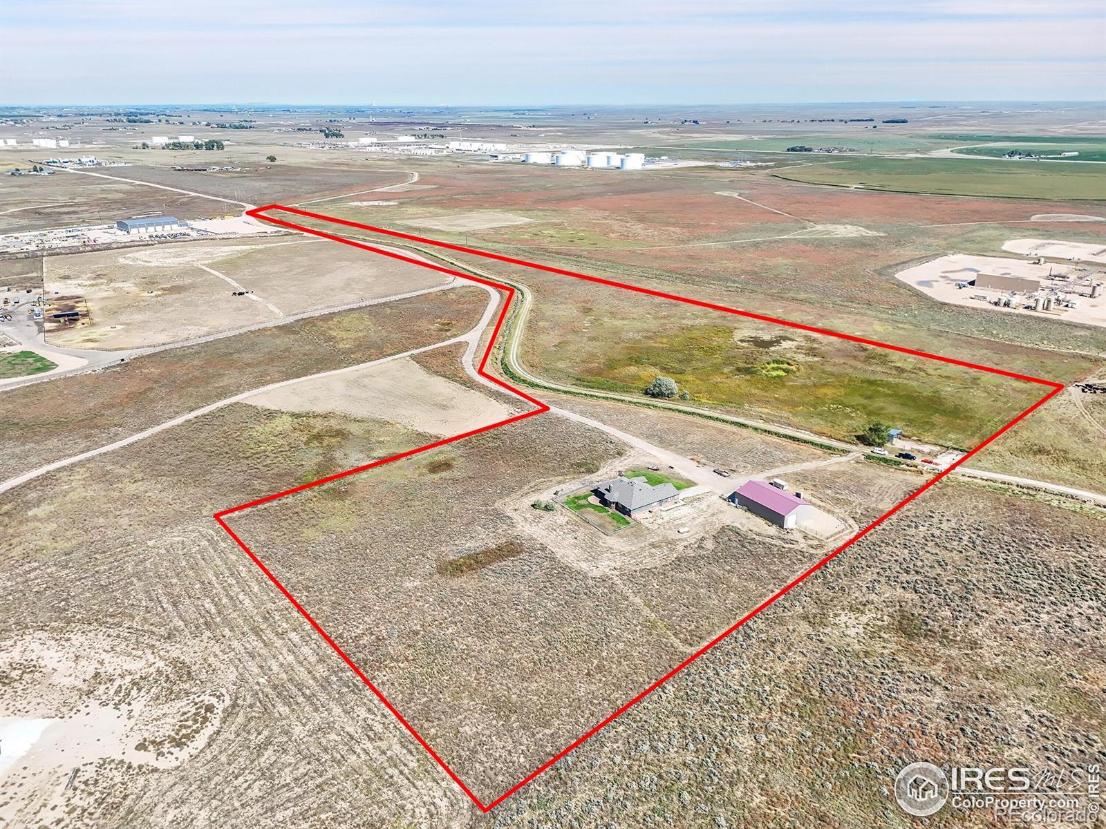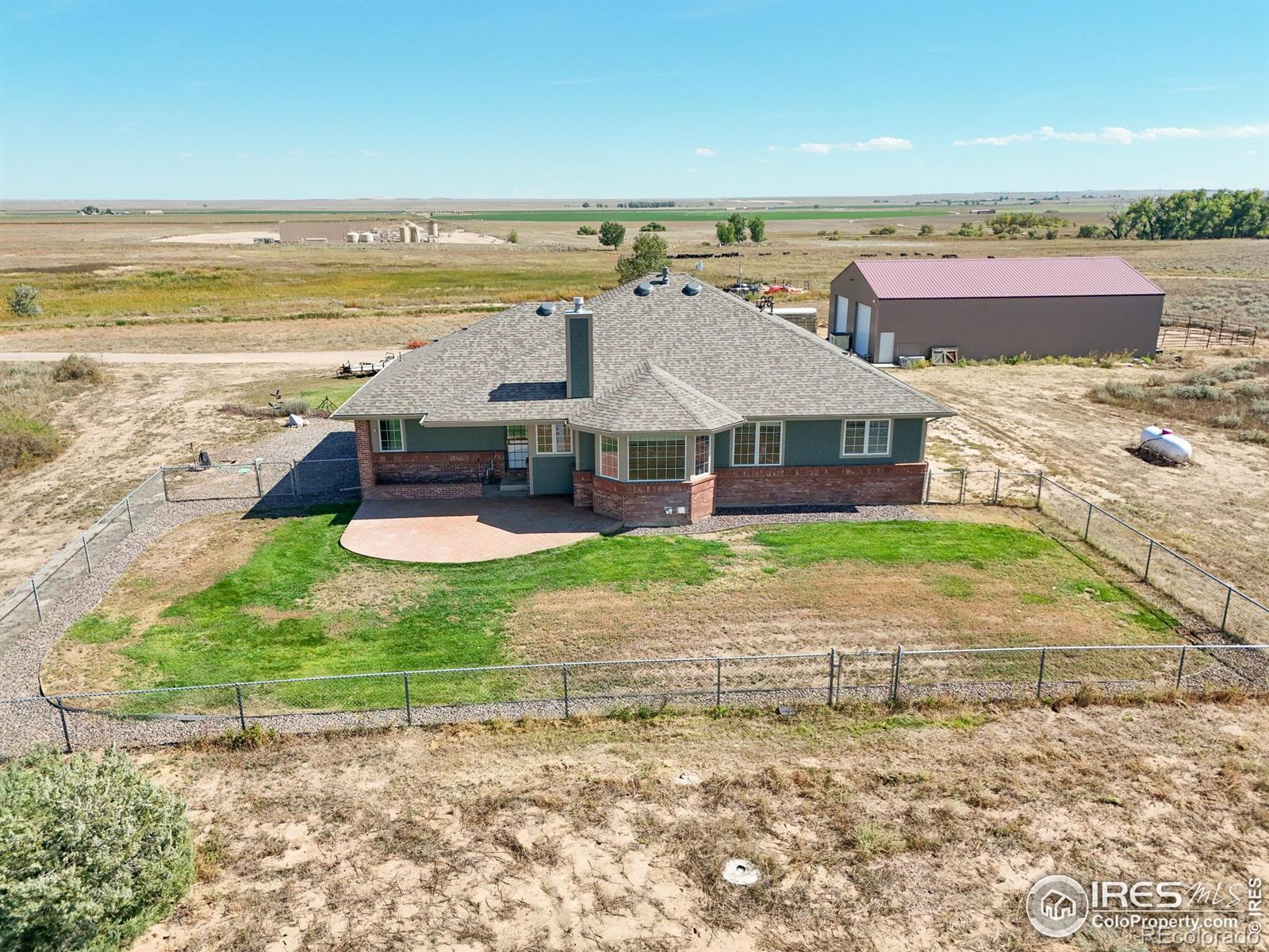 Escape the traffic, noise, & crowds of the city & come home to wide-open spaces & a peaceful retreat! This beautiful ranch-style home sits on 21+ acres with breathtaking mountain views, offering the perfect balance of tranquility & convenience.For those who love to tinker, build, or create, a 60x40 shop awaits-complete with a concrete slab, water, electricity, propane heat, multiple large overhead garage doors, & sliding barn doors for effortless access.Inside, the home features 3 spacious bedrooms plus a versatile 4th bedroom/office. The open layout with vaulted ceilings highlights a large living area where a panoramic bay window with seating frames stunning views. Cozy up around the gas fireplace or entertain in the expansive kitchen with an island that flows seamlessly into the living space.The main-floor primary suite is a true retreat with walk-out access to a stamped concrete patio, a luxurious 5-piece bath with jetted tub, & a generous walk-in closet. Additional conveniences include a large main-floor laundry room (washer, dryer, & sink included), a mudroom, & an attached two-car garage.Outdoors, enjoy an irrigated front & back lawn, fenced backyard, loafing shed with corral, & majority of the acreage fully fenced. Sub-irrigation from Neres Canal offers excellent potential for pastures, crops, or a large garden. Zoned agricultural, this property is ideal for horses, chickens, & other livestock-with no HOA restrictions & no metro tax (check out the current tax bill!) All this,while being just minutes to Platteville,30 minutes to DIA,35 minutes to Denver or Longmont,& 30 minutes to Greeley. Easy access to Kersey Rd., I-76, Hwy 85, & Hwy 34 makes commuting simple. Experience the best of country living with modern comfort-this property offers space, freedom, & breathtaking views, all within reach of city amenities. A home warranty will be provided & transfer to Buyer upon closing. A 3D virtual tour will be listed on homes. com