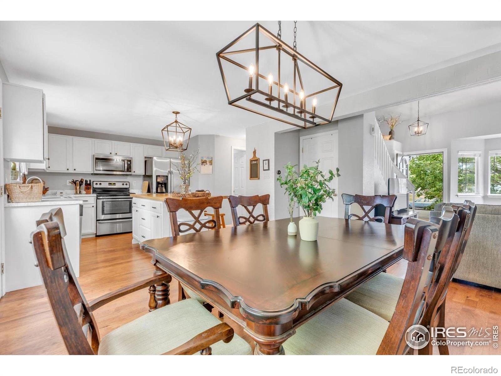 With a nearby neighborhood park and Milavec Lake trail just across the street, this totally move-in ready Fox Run home offers a lifestyle that's as active as it is relaxing. Inside, hardwood floors flow through the open-concept main level, where a sunlit dining room invites memorable dinners, and a tastefully remodeled kitchen with a butcher block island and breakfast bar, makes cooking a joy. A main level powder room and an unfinished basement provide additional flexibility for daily living in this open floor-plan. Step out back to your large backyard with an expansive concrete patio and storage shed, perfect for lively barbecues, outdoor games & quiet evenings under the stars. Upstairs are three spacious bedrooms with seasonal mountain and lake views and a full bathroom. New upstairs carpet just installed! An oversize two-car garage adds ease and peace of mind, while nearby shopping, dining, and recreation keep everything within reach.