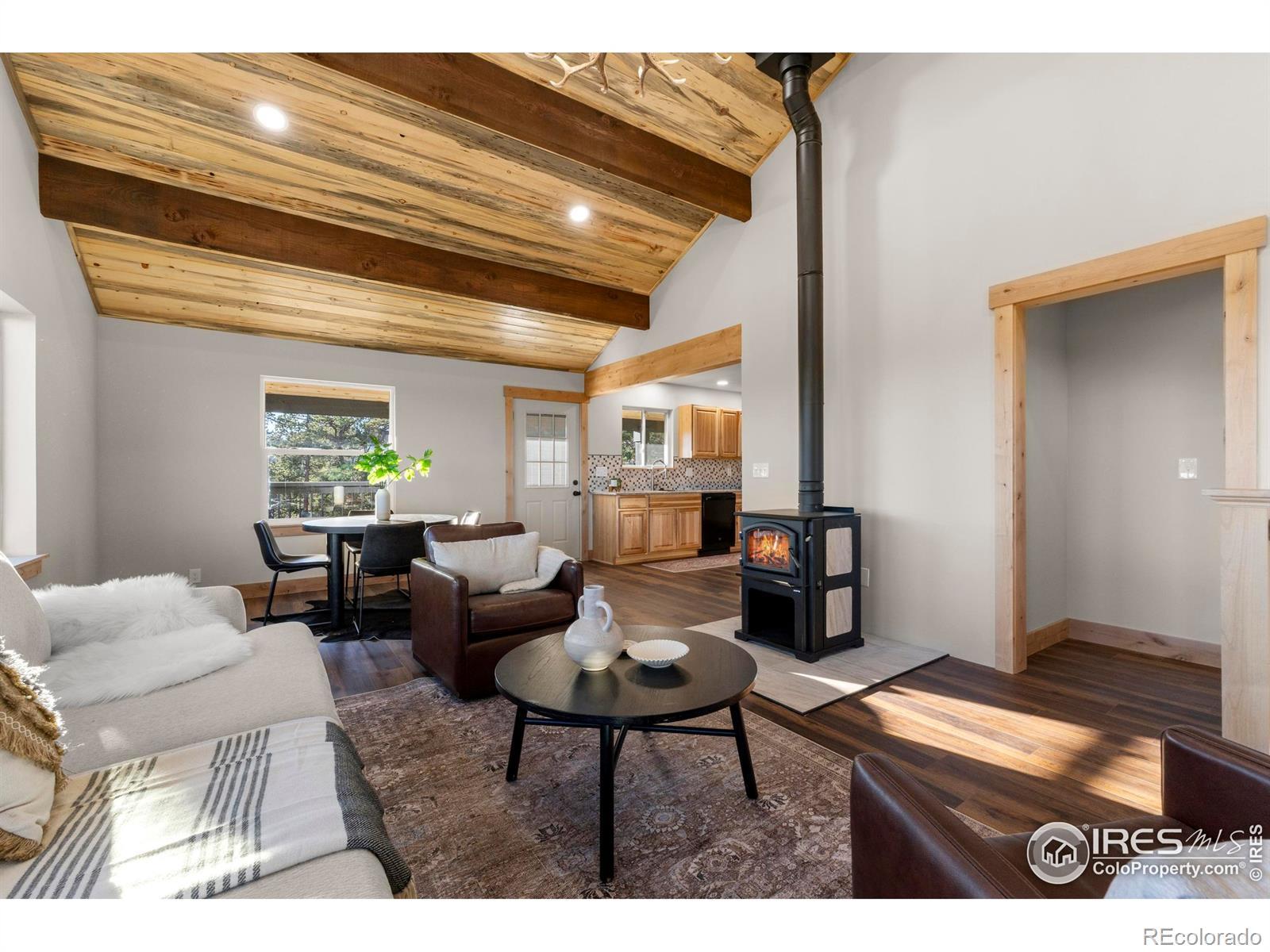 Welcome to your dream mountain retreat - a stunning four-bedroom home on 5.6 acres in beautiful Red Feather Lakes. Surrounded by breathtaking panoramic views, this completely rebuilt cabin perfectly blends modern comfort with rustic mountain charm. Every detail has been thoughtfully crafted - from the skilled workmanship and quality materials to the all-new appliances, electrical, plumbing, fixtures, and finishes - nearly every inch of this home is brand new. Designed and engineered for longevity, the property offers easy, year-round accessibility. Inside, the main level showcases a soaring great room with vaulted beetle-kill pine ceilings, rustic beams, and a cozy new wood-burning stove. Step onto the wrap-around deck and take in the sweeping views from every angle - the perfect place to unwind or entertain. The main level also includes a spacious kitchen, laundry, full bath, and primary bedroom. Upstairs, you'll find a large loft-style family room, two bedrooms with beetle-kill accent walls, and a beautifully finished bath. The fully finished walk-out basement provides even more living space with a generous recreation room and a fourth bedroom.Whether you're seeking a full-time residence or a weekend getaway, this remarkable property delivers peace, privacy, and the unmatched beauty of Colorado's mountains. Words can't do it justice - come see for yourself!