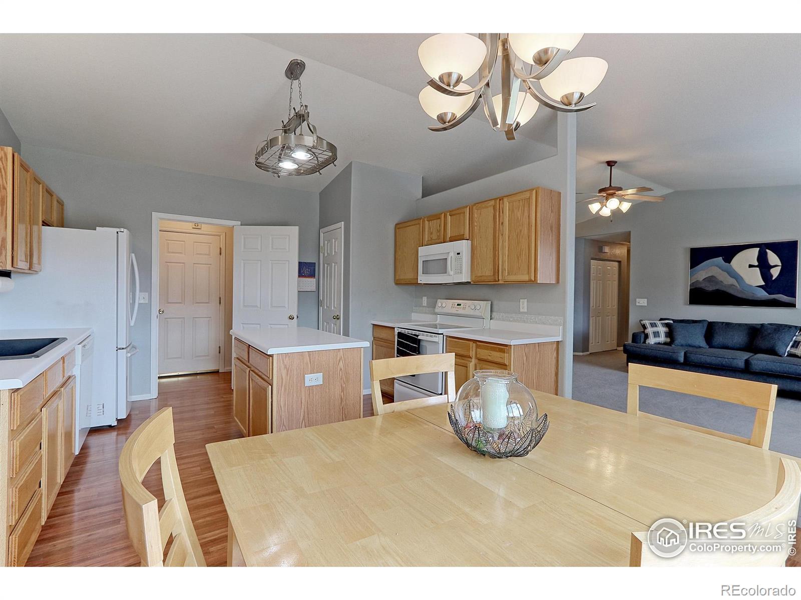 New roof with transferable warranty to be installed soon. Beautifully maintained Ranch home located on a corner lot in a quiet neighborhood in the Quaint town of Mead. This home has a full working 2 bedroom unit in the basement with large Family Rec room, full kitchen and laundry room with washer and dryer; which would be perfect for an in-law apartment or as a rental unit for extra income. When you walk into this home you will be blown away by how open and bright it is. The spacious open living room with vaulted ceilings and water and scratch resistant floors has a wall of picture windows that look out over the beautiful backyard. Just off the living room is the open kitchen with large pantry, center prep island and newer appliances. The dining room has a sliding door that opens up to the backyard that feature a beautiful two-tier deck with custom screening and a large fully fenced-in yard that is beautifully maintained. This home has lots of upgrades throughout that include a redesigned and expanded professionally built primary suite with massive walk-in closet and private ensuite bath. The fully finished basement has 2 large freshly painted bedrooms with new carpet and large egress windows that let in a ton of natural light, plus a full bath with a large tub with shower, full laundry room and full working kitchen. Located just minutes from I-25 with great access to major shopping and dining. This meticulously kept home is turn key ready and available for immediate occupancy so come quick.
