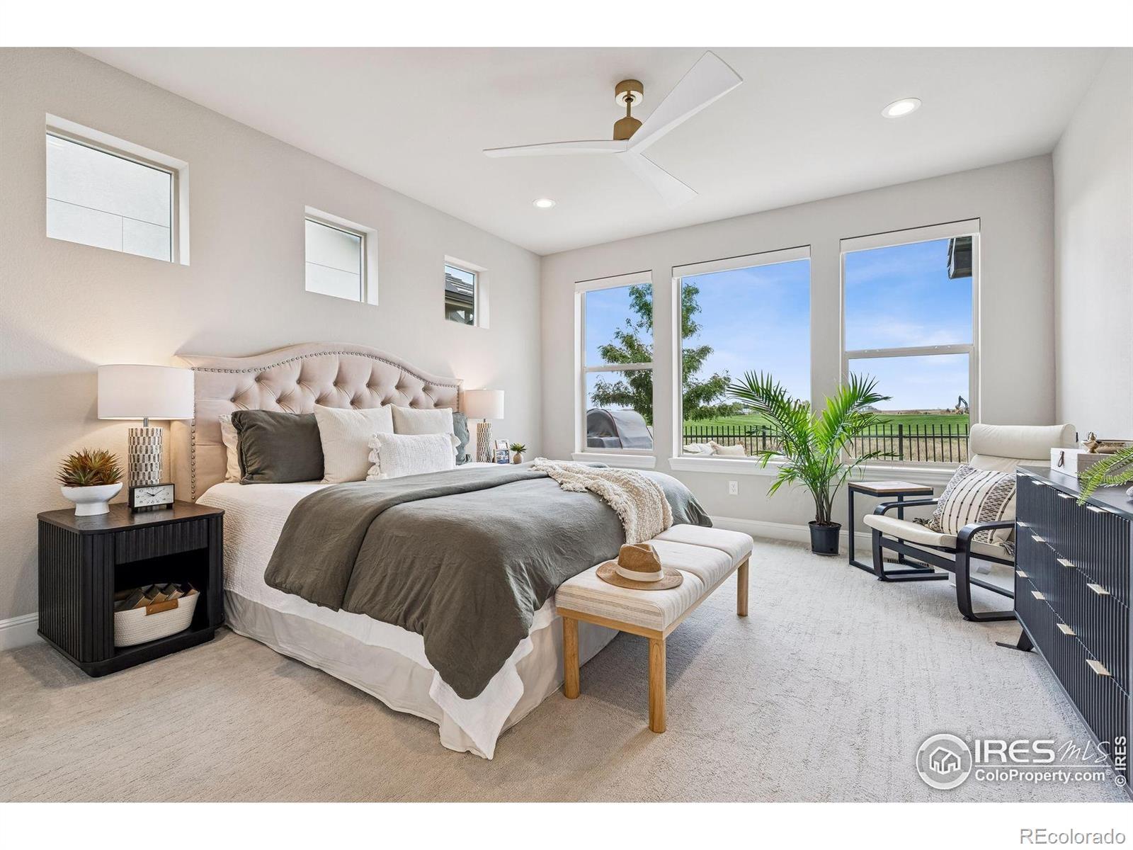 This stunning patio home sits directly on the 5th hole of the TPC Championship Golf Course, offering unparalleled golf course and mountain views. The fenced backyard provides privacy and showcases a beautifully upgraded wrap-around patio with travertine flooring, perfect for outdoor entertaining. The west-facing front porch captures Colorado's breathtaking sunsets over the mountains, while the back patio offers serene views of the fairway. Inside, enjoy true indoor-outdoor living with a 12-foot sliding door connecting the open-concept great room and dining area to the patio. The sun-filled primary suite features large windows, and a spa-inspired bathroom with an upgraded shower that includes a soaking tub inside the shower enclosure. Upstairs, the guest quarters offer two bedrooms, a full bath, and a loft-perfect for family or visitors. The home also includes a spacious laundry room with potential to expand into the primary closet, plus an unfinished basement with a rough-in for future living space. Residents enjoy lock-and-leave convenience with HOA-maintained landscaping and snow removal. Take advantage of the incredible amenities at Heron Lakes, including the 60,000-sq-ft clubhouse with multiple dining venues, a resort-style pool with a swim-up bar, a fitness center, and miles of trails. Experience the perfect blend of luxury, comfort, and low-maintenance living in this exceptional golf course patio home.