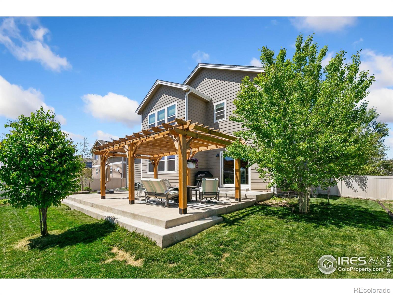 This charming two-story home in the Harvest Village community delivers both functionality and style with room to spread out and enjoy life inside and out. As you enter the home, a welcoming foyer leads you into a spacious open main living area, where you can enjoy gatherings and everyday life. The kitchen is a highlight, featuring stainless steel appliances, granite countertops, a stylish subway tiled backsplash, pantry for additional storage, and a center island that provides additional prep space and seating. A dedicated office near the front of the house provides the perfect space to focus and retreat for some quiet productivity, with just the right amount of separation from the main living space. Head upstairs to find three bedrooms, including the primary suite with its own ensuite bath and walk-in closet. An upstairs laundry brings ease and convenience to your daily routine. The finished basement adds even more value, offering a versatile living area with a bar, plus a fourth bedroom that's perfect for guests, storage, or more flexibility as your needs change. Outside, the fenced backyard features a concrete patio with a pergola, creating a wonderful outdoor living space for al fresco dining or enjoying the fresh air. Assorted newly planted trees enhance the beauty and privacy of the yard, contributing to a serene and inviting outdoor environment. The huge 3-car garage provides plenty of space for vehicles and storage. This vibrant community also includes a pool, playground, and nearby parks and trails, making it easy to get out and explore or unwind. Plus, with easy access to local amenities, this home is sure to meet all your needs.
