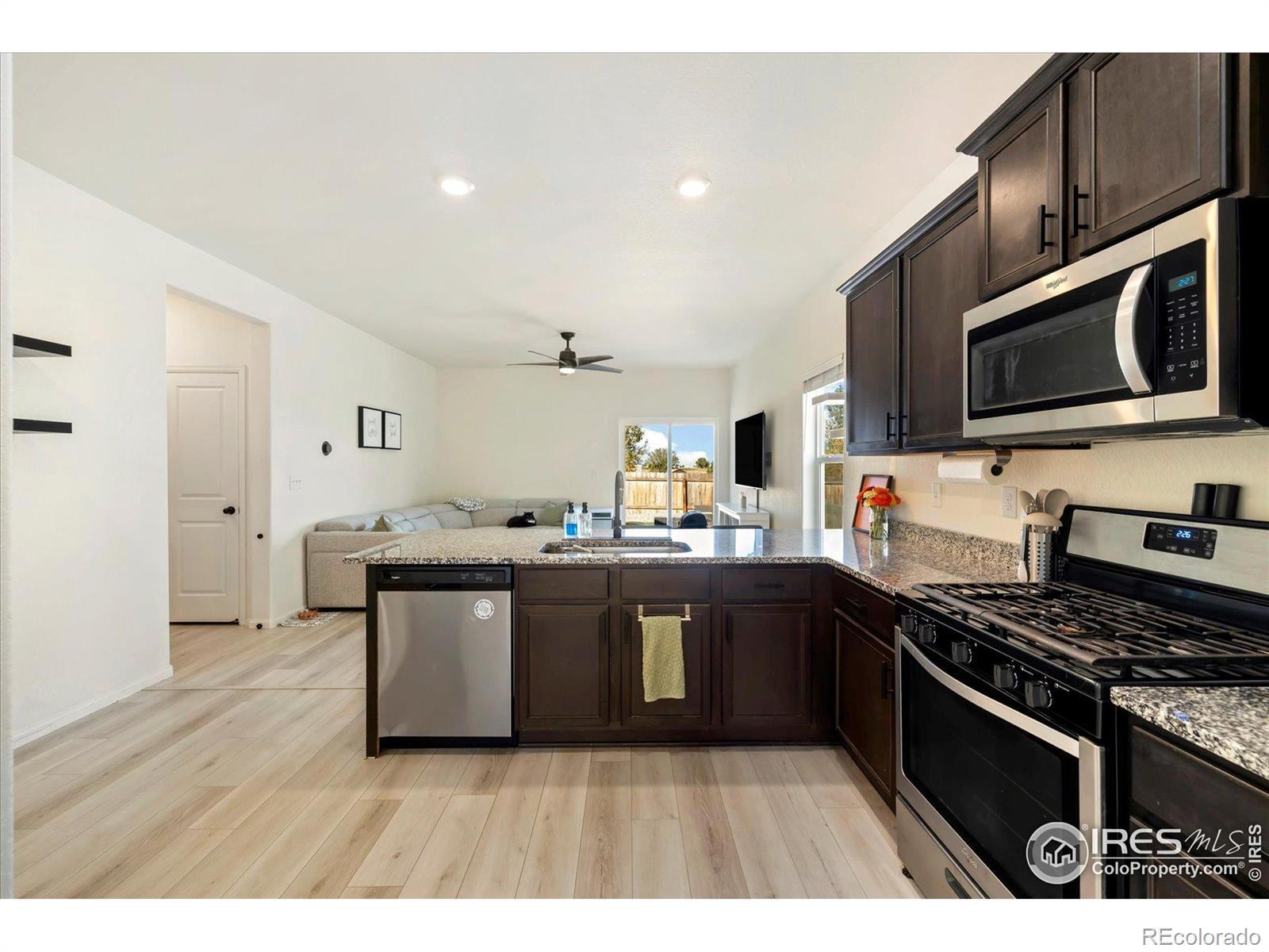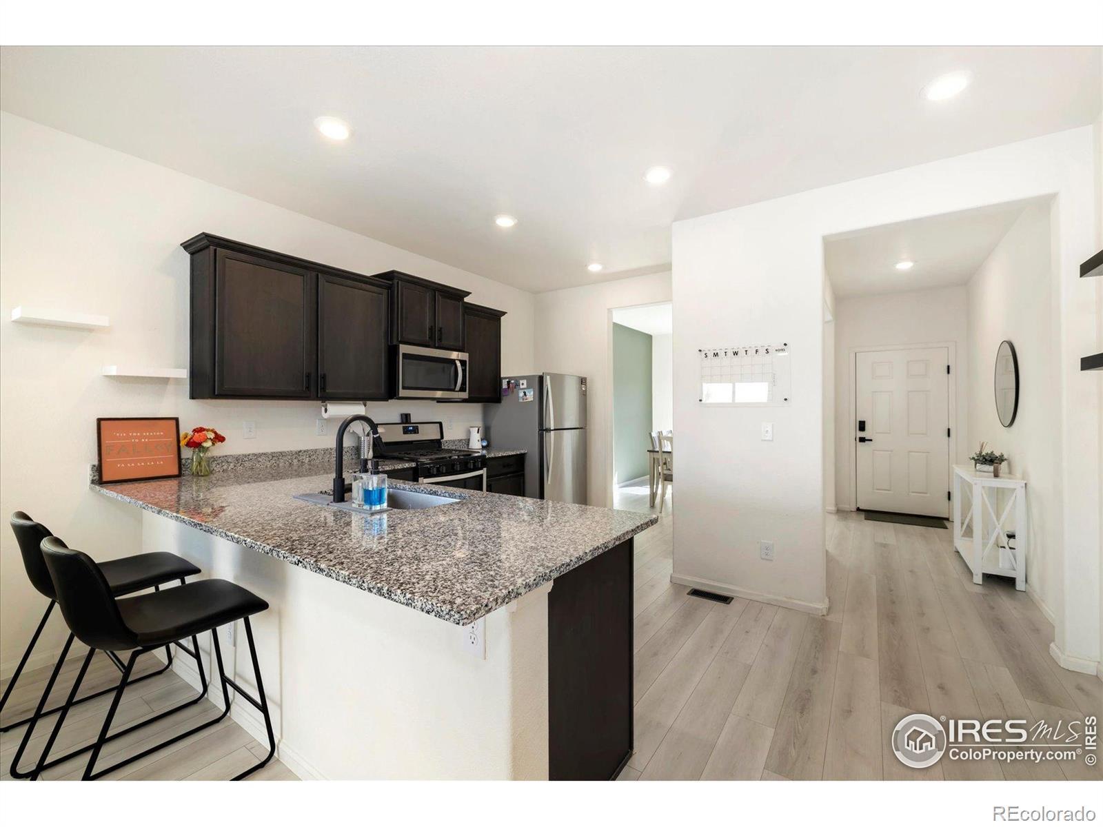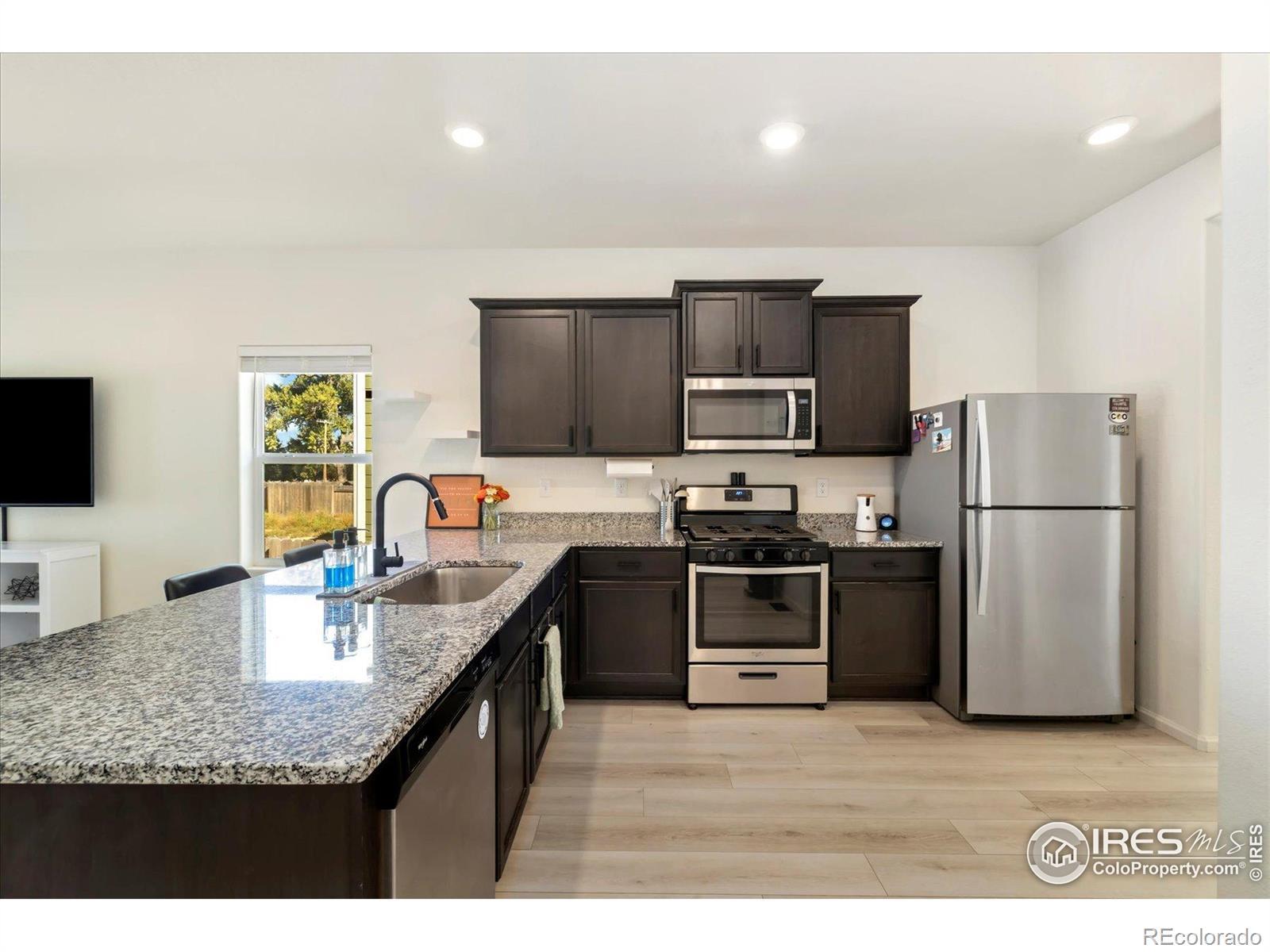 LISTING price change per short sale apprasial. Welcome Home!This beautifully designed 3-bedroom, 2-bath residence in Evans Place offers the perfect balance of modern comfort and timeless style. From the moment you step inside, the foyer sets a warm and inviting tone, opening into a bright, open-concept living area.The kitchen is a true showstopper, featuring energy-efficient stainless steel Whirlpool appliances, stunning granite countertops, and 36" cabinets with crown molding for ample storage. Sleek vinyl plank flooring adds a sophisticated touch.The main level includes the spacious primary suite, complete with a generous walk-in closet and private en-suite bath. Two additional bedrooms provide flexibility for guests, family, or a dedicated home office.Just off the living room, step outside to a fully fenced backyard-your own private retreat with plenty of space A two-car attached garage ensures convenience for vehicles and extra storage.Nestled in a newly developed neighborhood, this home offers easy access to I-76, shopping, dining, schools, and local amenities. Don't miss your chance to own this modern gem in an ideal location!