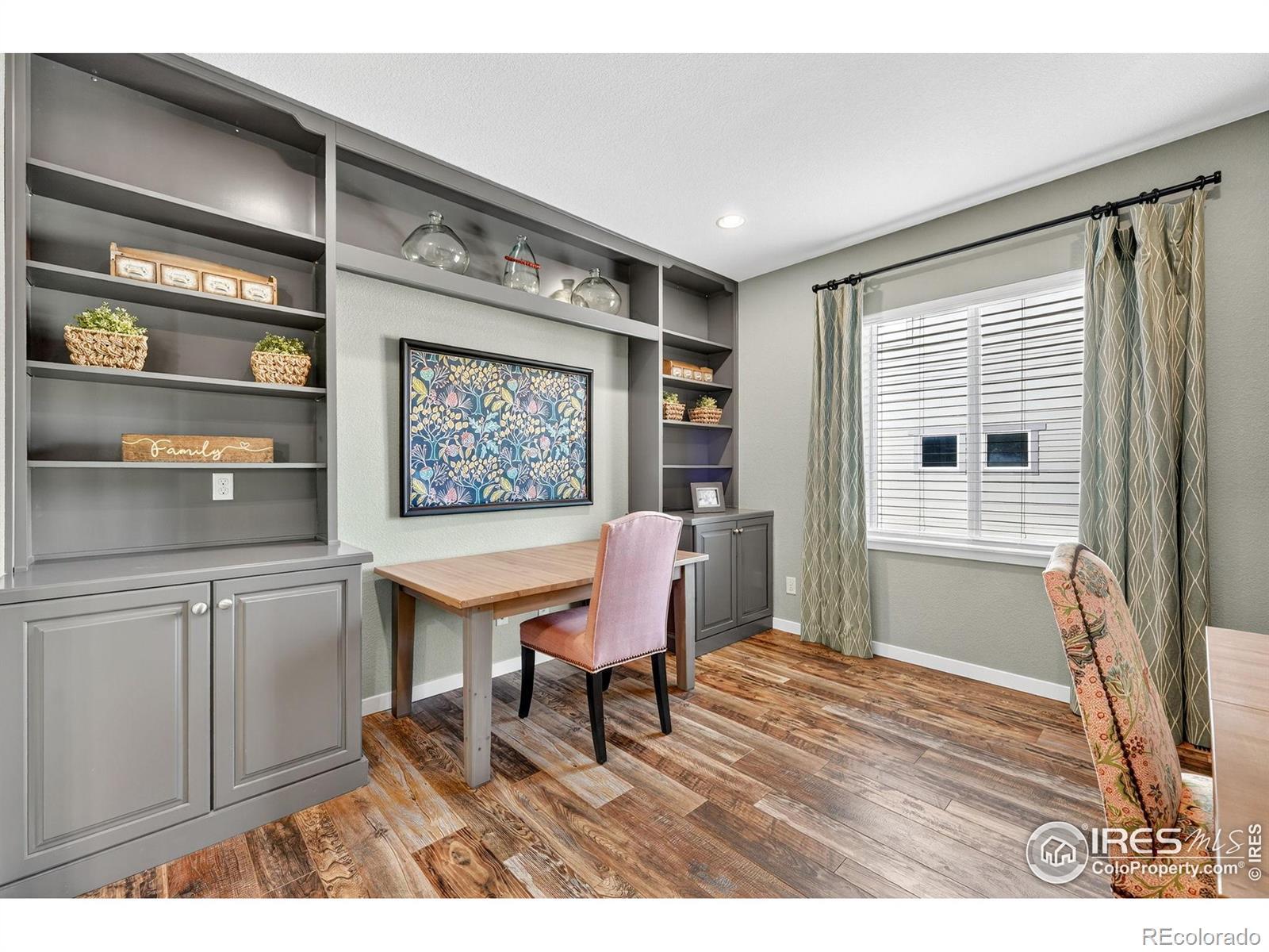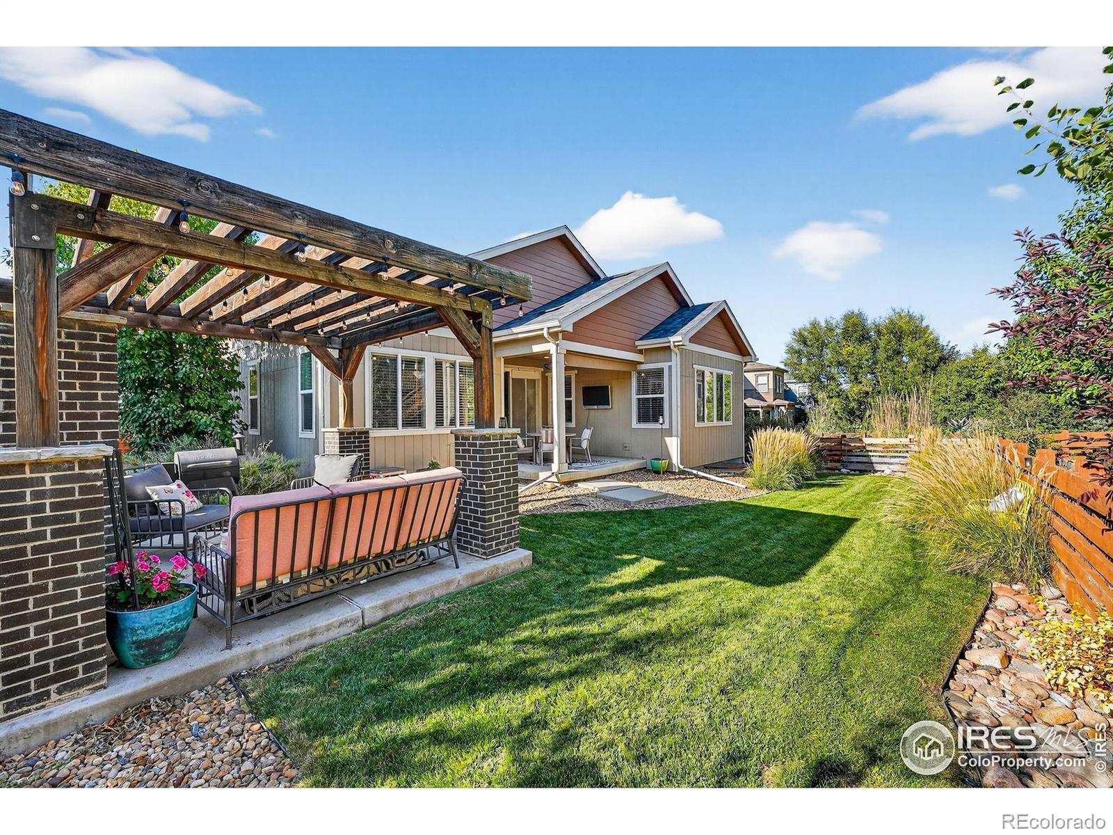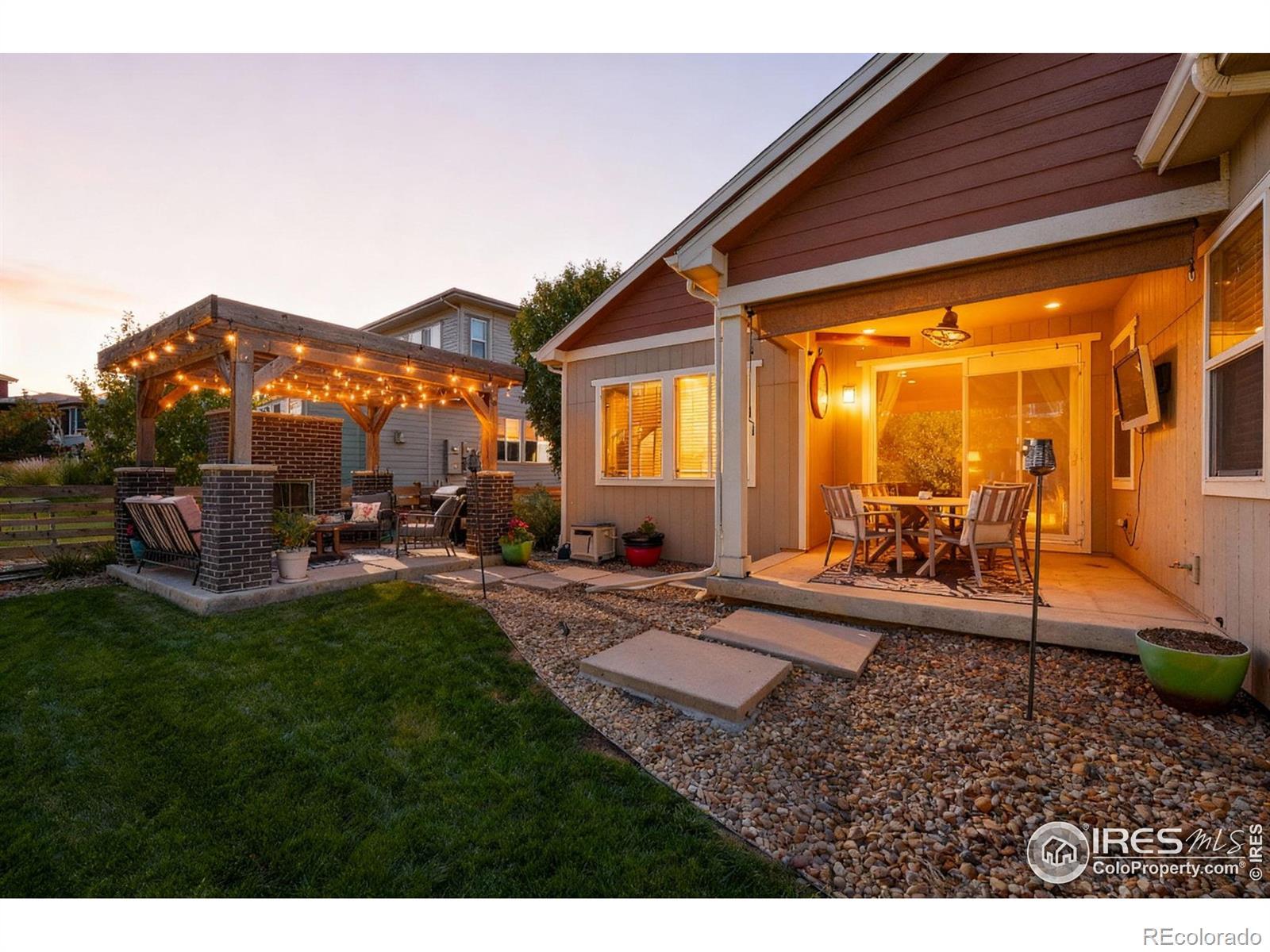 Welcome to this stunning former model home tucked away on a quiet Cul-de-sac in Erie. Offering 2 bedrooms plus an office on the main floor, this home is filled with thoughtful design and stylish updates. The main level showcases beautiful built-ins, upgraded kitchen and bathrooms including a large walk in shower in the primary suite, and a spacious laundry room. Step outside to your private backyard retreat, featuring a covered patio with gas line for your BBQ, and a large brick fireplace under a charming pergola-perfect for entertaining or relaxing evenings outdoors.The finished basement is ideal for multi-generational living with two additional bedrooms, a full bathroom, living and dining areas, washer/dryer hookups, a secret storage closet, and plumbing ready for a future kitchen. Residents enjoy resort-style amenities, including two pools, exercise facilities, clubhouse, trails, and parks. All of this just 20 minutes to downtown Boulder and 25 minutes to downtown Denver. This home was built in 2014 but not occupied until August of 2019. This home has it all and is better than new construction-- just move in! New roof, gutters and garage door in 2024.