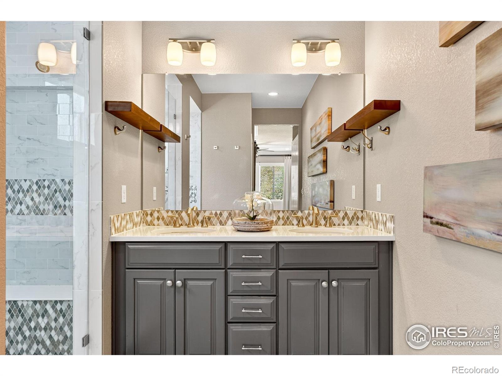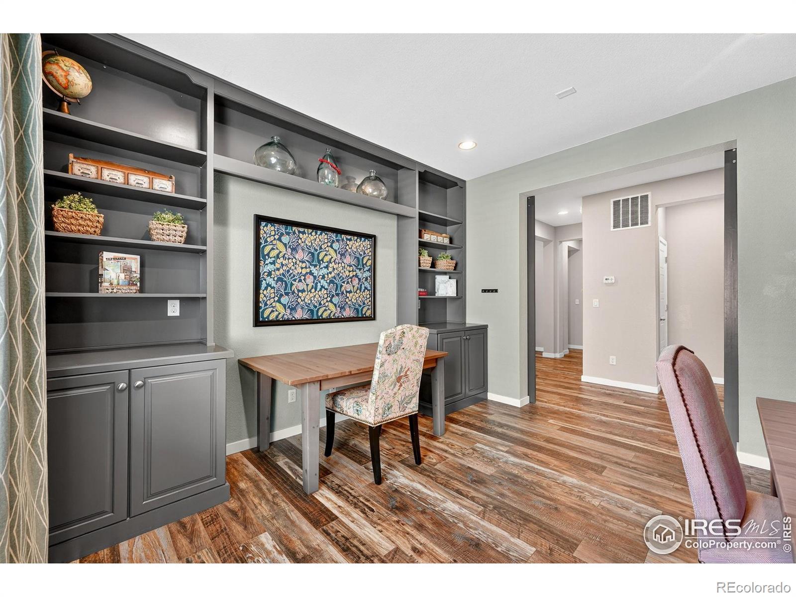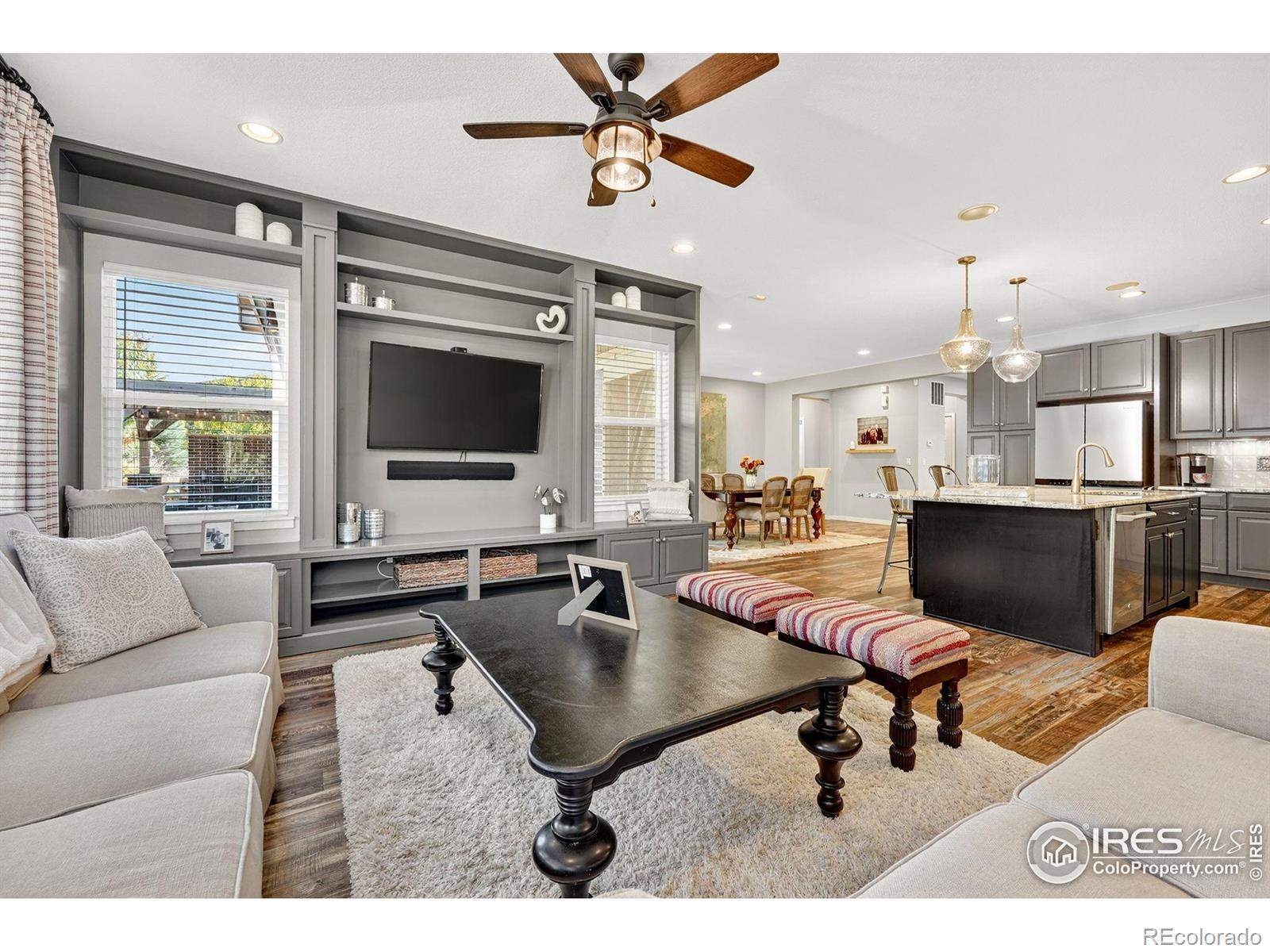 Welcome to this stunning former model home tucked away on a quiet Cul-de-sac in Erie. Offering 2 bedrooms plus an office on the main floor, this home is filled with thoughtful design and stylish updates. The main level showcases beautiful built-ins, upgraded kitchen and bathrooms including a large walk in shower in the primary suite, and a spacious laundry room. Step outside to your private backyard retreat, featuring a covered patio with gas line for your BBQ, and a large brick fireplace under a charming pergola-perfect for entertaining or relaxing evenings outdoors.The finished basement is ideal for multi-generational living with two additional bedrooms, a full bathroom, living and dining areas, washer/dryer hookups, a secret storage closet, and plumbing ready for a future kitchen. Residents enjoy resort-style amenities, including two pools, exercise facilities, clubhouse, trails, and parks. All of this just 20 minutes to downtown Boulder and 25 minutes to downtown Denver. This home was built in 2014 but not occupied until August of 2019. This home has it all and is better than new construction-- just move in! New roof, gutters and garage door in 2024.