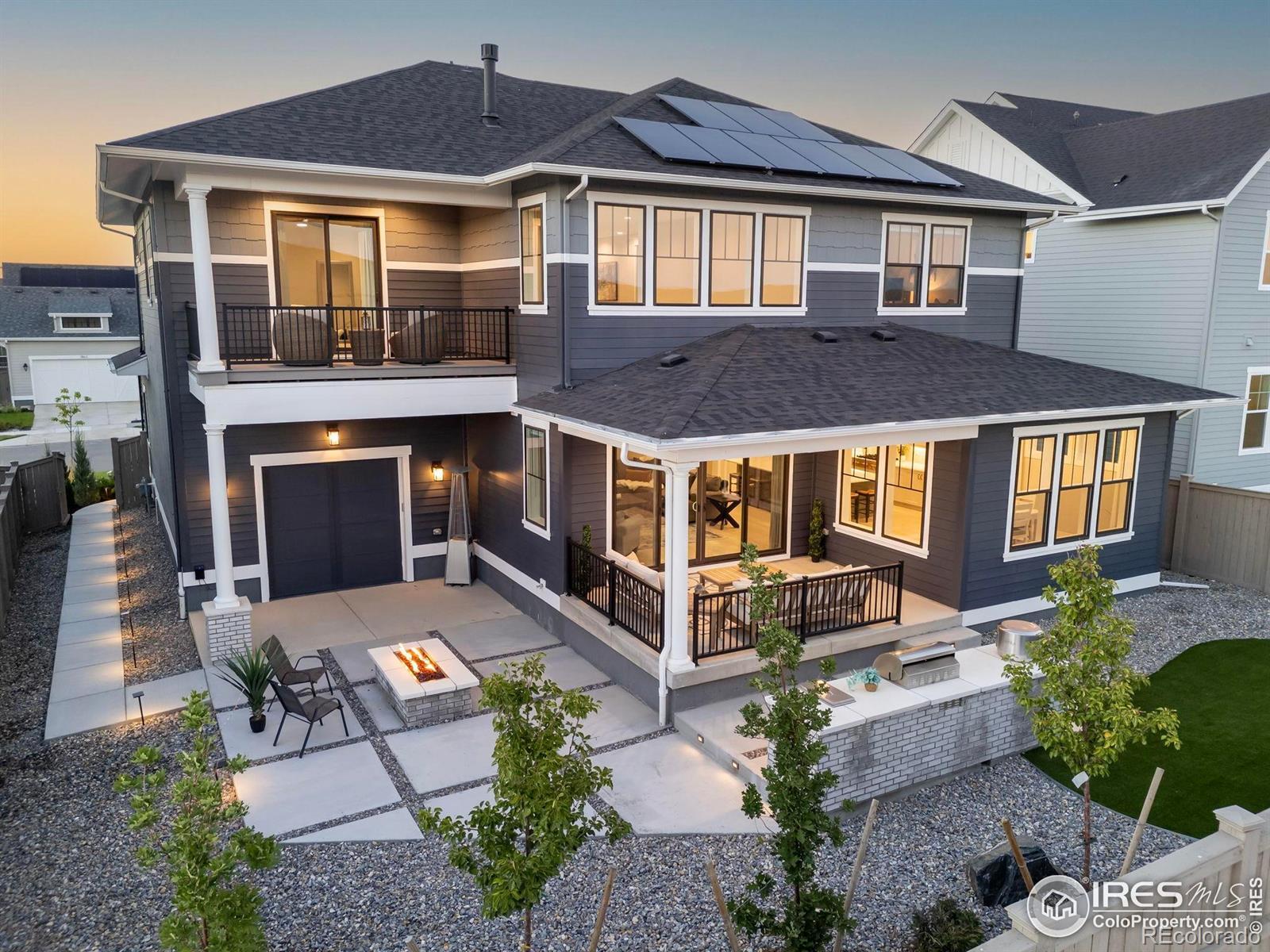 Welcome to an extraordinary residence by the celebrated local builder, McStain, known for their superior craftsmanship and elevated design. This stunning 4,877 sq. ft. home is perfectly situated in Westerly-Erie, offering exclusive access to resort-style amenities, including the pool, spa, fitness facilities, and the Waypoint Community Center. This spacious floor plan features 4 bedrooms, 5 bathrooms, and a highly versatile loft space. Function meets style with a dedicated main-floor office, enhanced by custom, sophisticated built-ins. The gourmet kitchen is a culinary enthusiast's delight, outfitted with a suite of premium JennAir appliances, an oversized central island, and custom high-end finishes. The lower level offers the ultimate escape with a finished basement, complete with a wet bar and ample storage. Upstairs, the primary suite provides a luxurious retreat with a private balcony and an exquisite spa-inspired bathroom. Seamless indoor-outdoor flow leads to the sanctuary-like backyard, featuring a fully equipped outdoor kitchen, a cozy firepit, and maintenance-free turf for year-round enjoyment.Sustainability and comfort are paramount with included solar panels, dual AC units, and energy-efficient upgrades. Combining modern luxury with enduring quality, this Westerly masterpiece is a unique offering for discerning buyers.