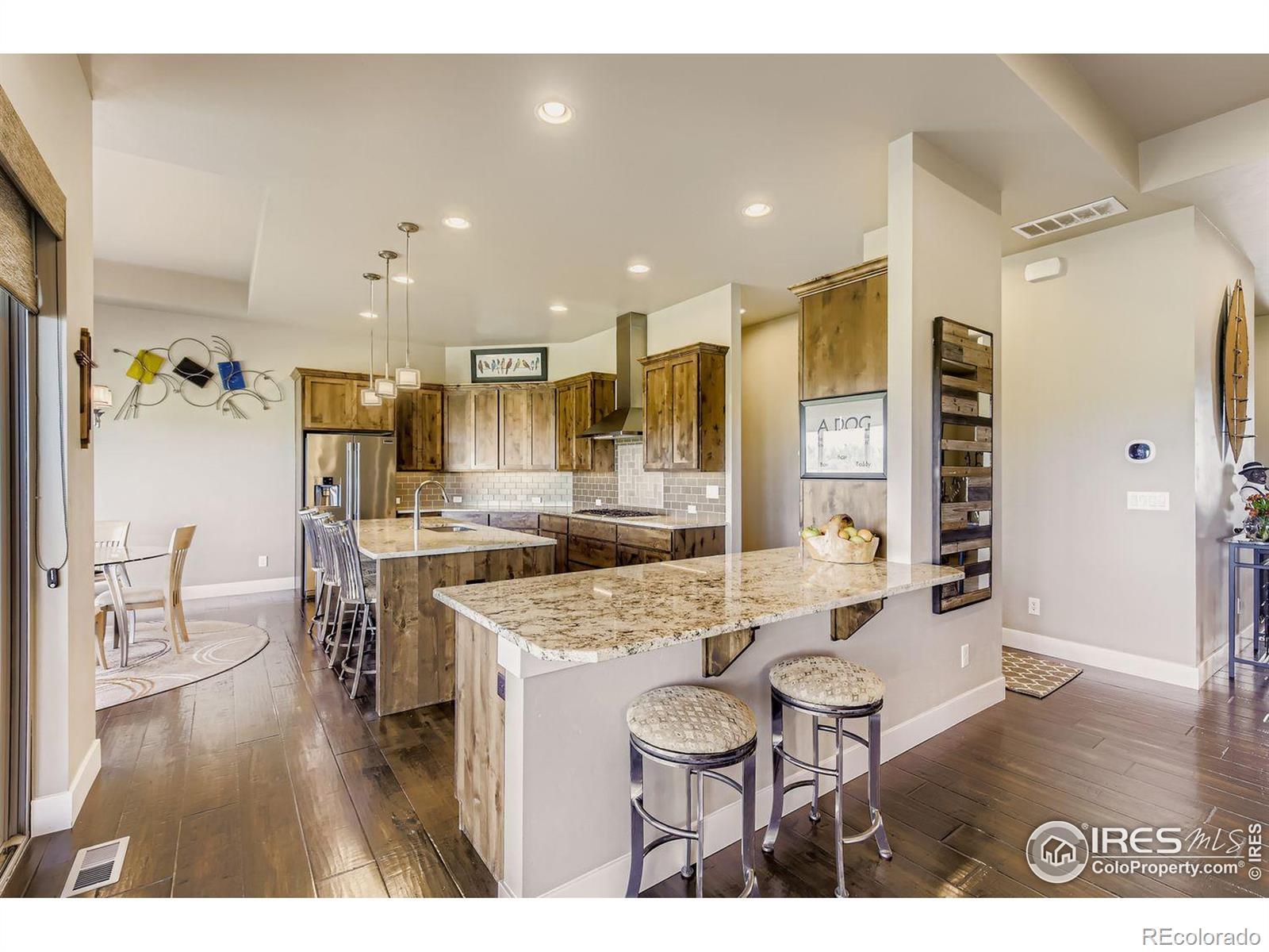 Beautiful ranch-style home with stunning mountain views and open space behind! Welcome home to this charming home perfectly situated to capture breathtaking mountain views and backing to protected open space! All this and just minutes from Old Town with great restaurants, shopping and entertainment, the hub of fun in Fort Collins. If you are looking to live the Colorado dream, this is the place. Move-in ready with a chef's kitchen and spacious rustic home bar featuring rich barn wood cabinetry, a full sink, and dishwasher for added convenience. This well-appointed area offers ample counter space and is ideal for entertaining guests or creating private living quarters for family and guests. Live the Colorado dream with the covered deck, patio and firepit area. Don't miss this rare opportunity to own a ranch-style home with mountain views and open space right out your back door!