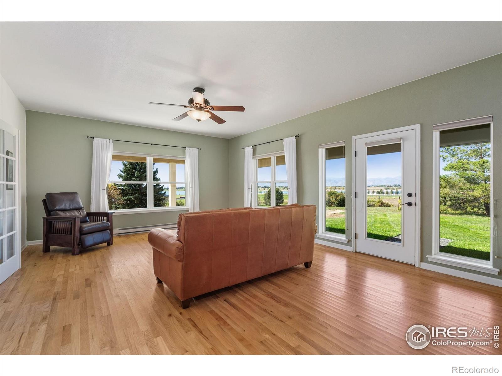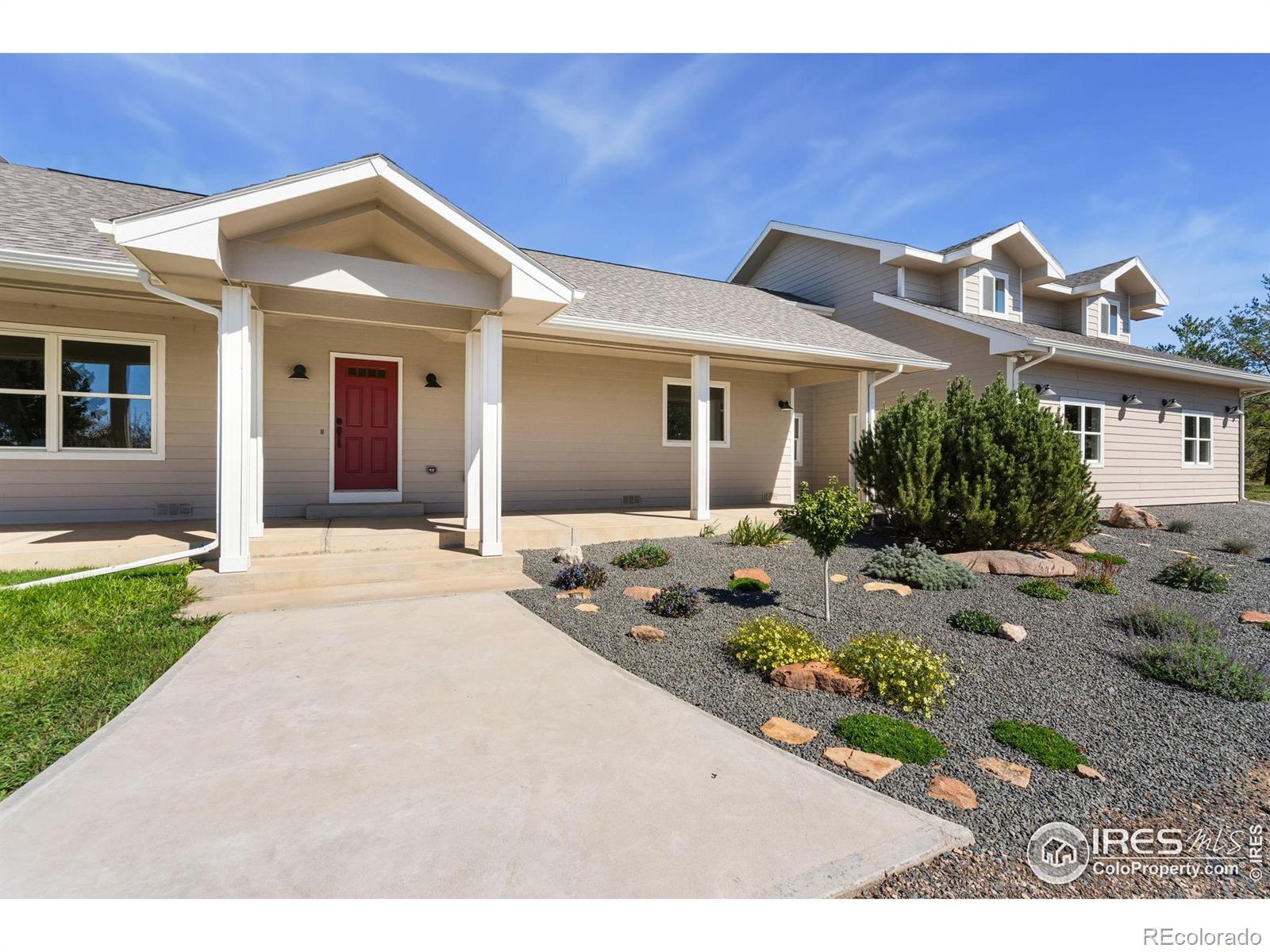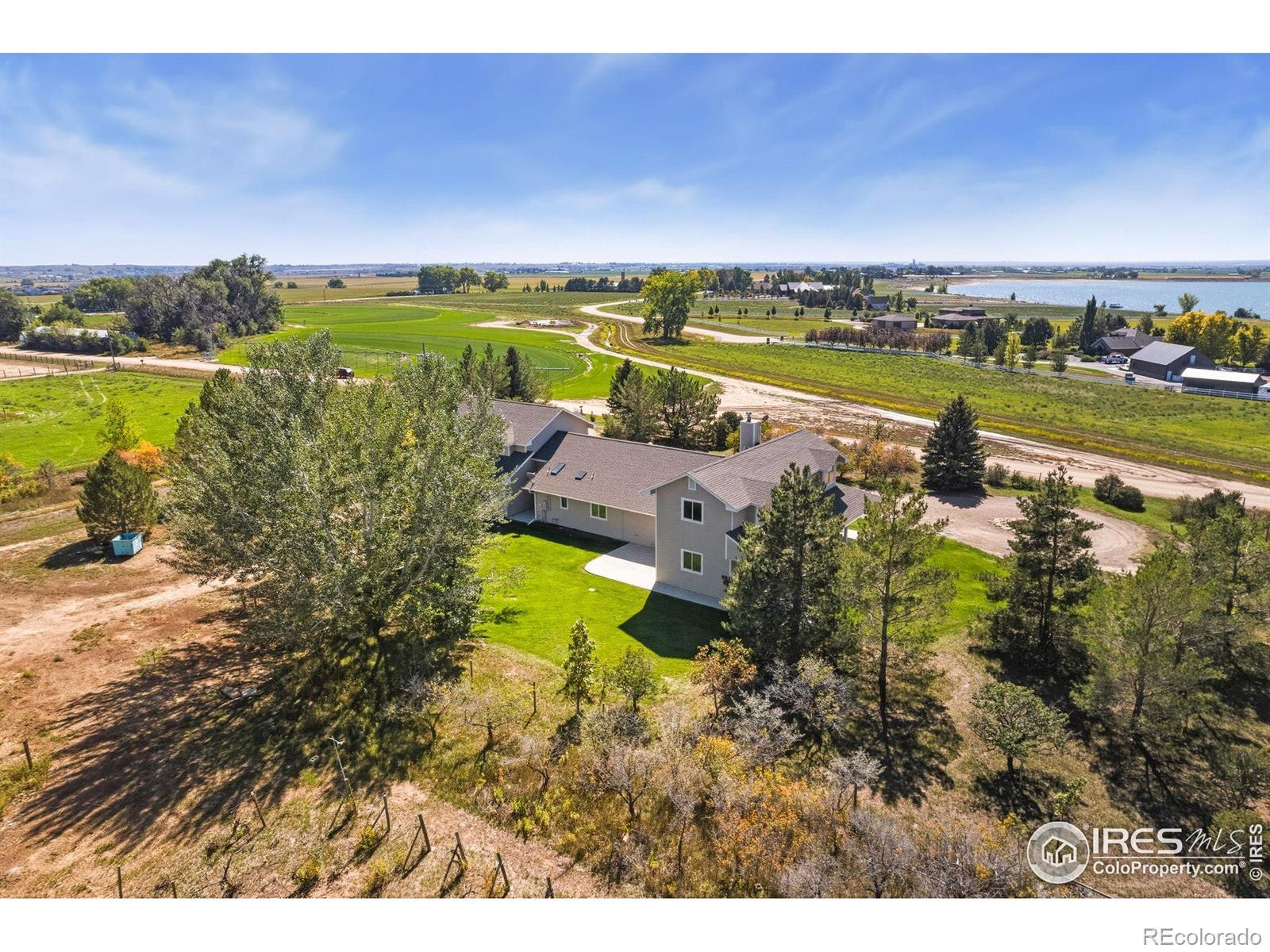 Tucked away on a quiet no-outlet road just south of Wellington, this spacious property combines privacy, views, and versatility on 19.5 acres. With easy access to I-25, it offers both seclusion and convenience. The home spans over 3,000 square feet and features wood floors, a finished oversized 3-car attached garage, and a bonus room over the garage that's ideal for a recreation or entertainment space. Take in sweeping Front Range views along with water views of North Poudre Reservoir #6 from multiple outdoor spaces, including a charming wraparound porch. The property is beautifully framed by mature landscaping and provides plenty of room for animals, recreation, or crop production. Horses, cows, and other livestock are welcome, and the land offers the flexibility to grow crops or create pasture. A large detached shop adds even more functionality, whether for hobbies, storage, or equipment. For those seeking water rights, one share of North Poudre Irrigation water is available for purchase separately (not included in the listed price). With no HOA, endless opportunities for use, and a rare balance of privacy, acreage, and accessibility, this property is ready to support a wide variety of lifestyles.