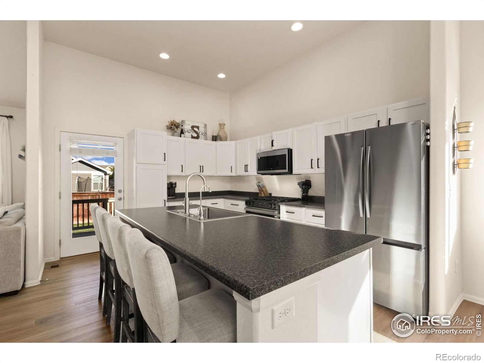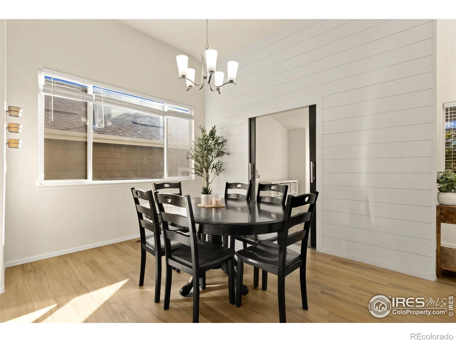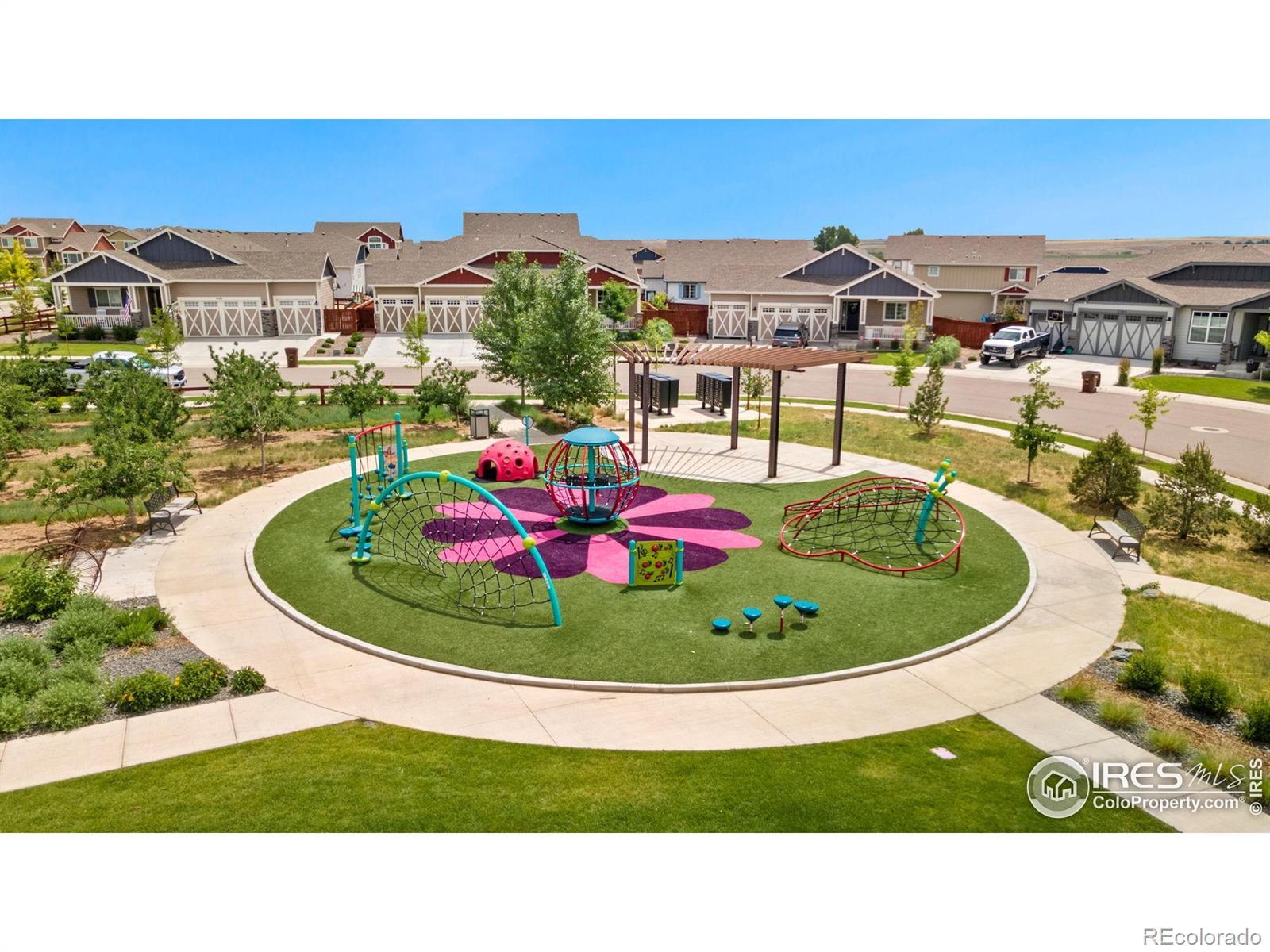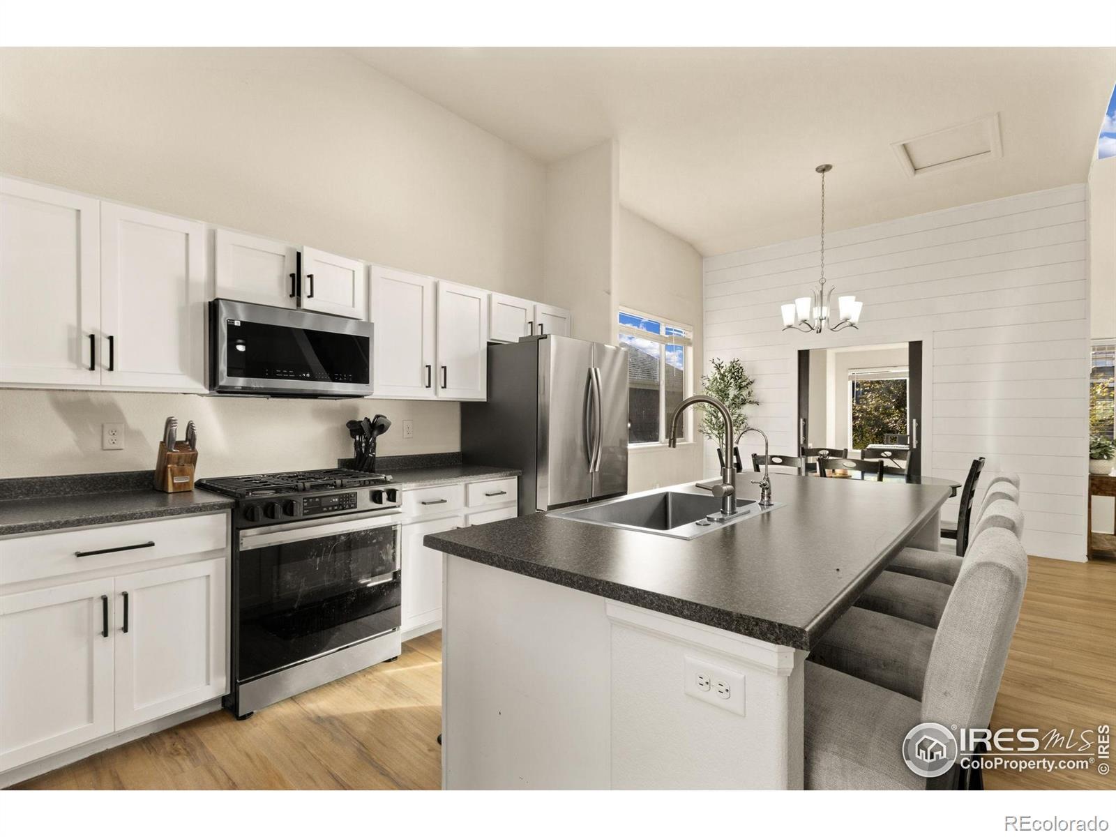 OPEN HOUSE SUNDAY OCTOBER 26TH FROM 1-3PM!! Beautiful 2-story home in the desirable Raindance community featuring a main floor primary suite with large walk in closet and private bathroom. Convenient main floor office with shiplap accent wall and pocket French doors. The open-concept layout includes a bright eat-in kitchen with white cabinetry, cabinet pulls, single-bowl stainless steel sink with filtered water dispenser, and new Samsung appliances. New LVP flooring flows throughout the main level, creating a fresh, modern feel.Upstairs you'll find two additional bedrooms and a full bathroom, while the unfinished 1,239 sq ft basement provides endless opportunity for future expansion or storage. The main floor also offers laundry and 2.5 total bathrooms throughout the home.Enjoy outdoor living on the covered deck overlooking a fully fenced backyard-perfect for pets, play, and entertaining. Raindance offers resort-style amenities including golf, a community pool, water park, trails, orchards, and easy access to I-25 for commuting to Fort Collins, Loveland, Greeley, or Denver.
