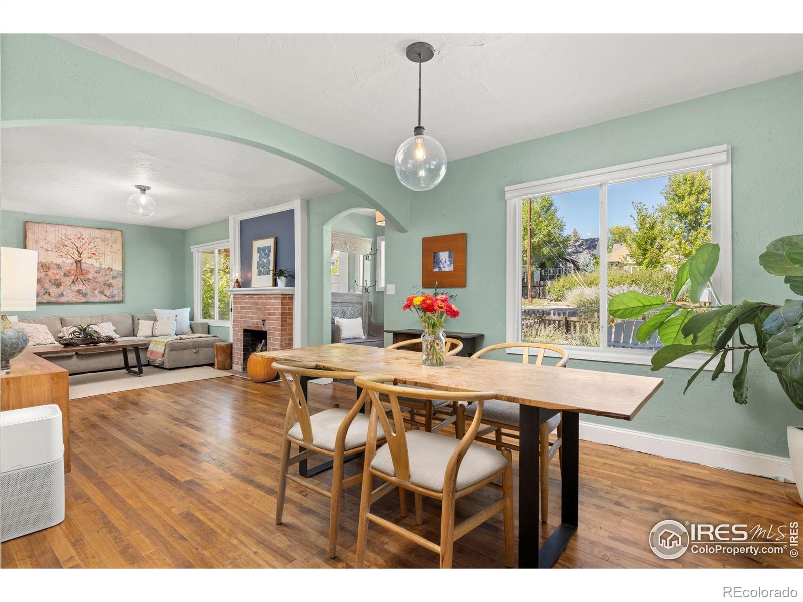 This home captures the essence of Old Town Longmont-where farmhouse character, thoughtful updates, and a peaceful setting come together in perfect balance. Built in 1935, this California-style bungalow radiates warmth and natural light. Inside, you'll find archways, original wood floors, and thick plaster walls that absorb sound and keep the home comfortable year-round. The living room's brick fireplace anchors the space, while large windows frame leafy views. The dining room flows openly to the living area and kitchen, with corner windows that fill it with daylight-perfect for cozy dinners or lively gatherings. The remodeled kitchen reflects what makes this home special: a blend of style and practicality. Crisp white cabinetry with brass accents, quartz counters, butcher block warmth, open shelving, cheerful backsplash details, a farmhouse sink, and a gourmet gas range with stainless appliances create a space that's equally functional and inspiring. From the adjoining office nook, you can even catch a view of the mountains while you work. The yard is large and peaceful, a true gardener's delight with perennial beds, apple trees, grape arbor, and four raised beds. Quiet corners invite relaxation, while private parking in both front and back and a detached office/work studio add convenience and flexibility. The location is one of Old Town's finest: just steps to Thompson Park and Main Street, close to fishing ponds, and an easy bike ride to the Farmer's Market, Sunset Pool, and Sunset Golf Course. Surrounded by great neighbors and tree-lined streets, it's a home that feels connected to both nature and community. EV Car Charger too!