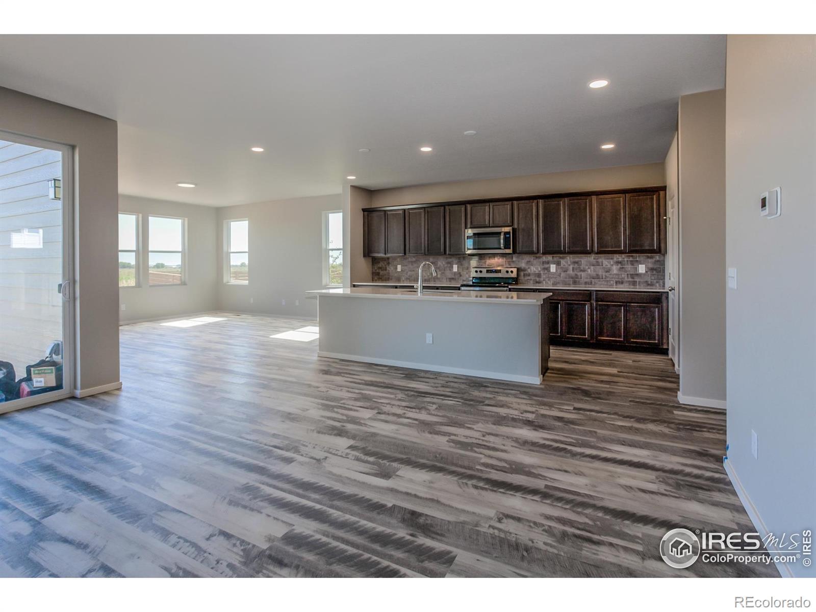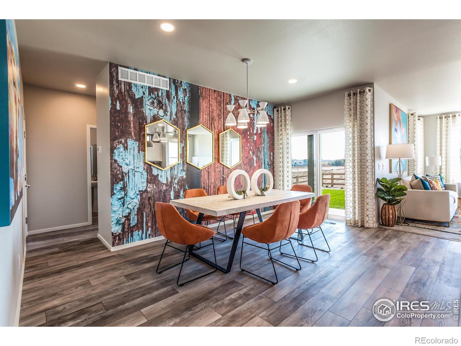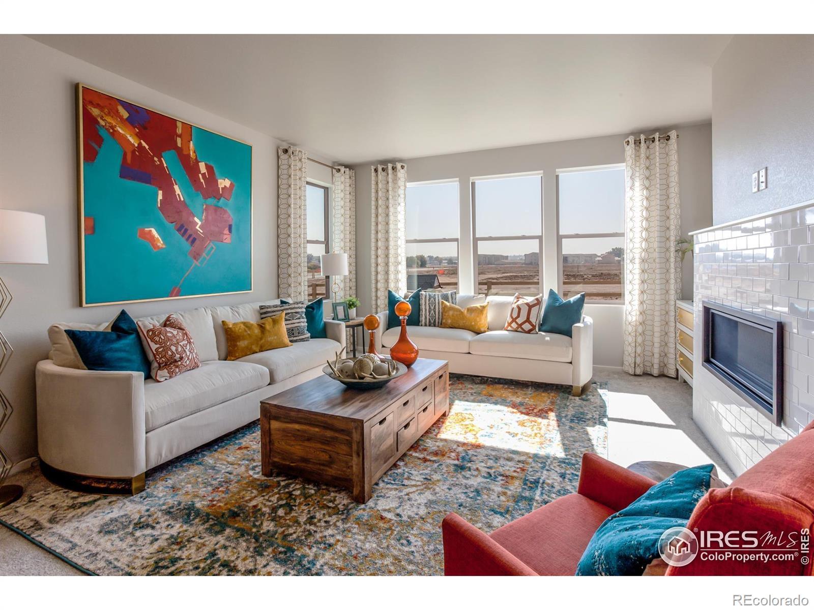 The Rowling plan by Hartford Homes. New construction in Prairie Song. The first floor welcomes you with a spacious foyer that opens into an inviting kitchen, dining, and living area. The kitchen features a pantry and a large island. S.s. induction electric cooktop, hood, double wall oven and microwave. Biscotti maple cabinetry throughout. Quartz countertops. A main-floor bedroom and bath. Sliding door opens to a covered patio. Electric fireplace in living room. Vinyl plank flooring in entry, kitchen, dining, living, laundry and baths. Upstairs, the private primary suite has a vaulted ceiling and includes a generous walk-in closet. Two additional bedrooms each include walk-in closets and share a full bath. A spacious loft and laundry room are also on second level. Unfinished basement. 3 car garage w/ garage service door. Front yard landscaping included. Central a/c. Passive radon system. $125 monthly metro district o & m fee. $415 annual non potable fee to be paid to metro district. Future community plans for a pool, parks and trails. PHOTOS FROM A PREVIOUSLY BUILT HOME AND THEREFORE MAY DEPICT DIFFERENT FINISHES. ASK ABOUT CURRENT LENDER OR CASH INCENTIVES. Estimated April/May completion