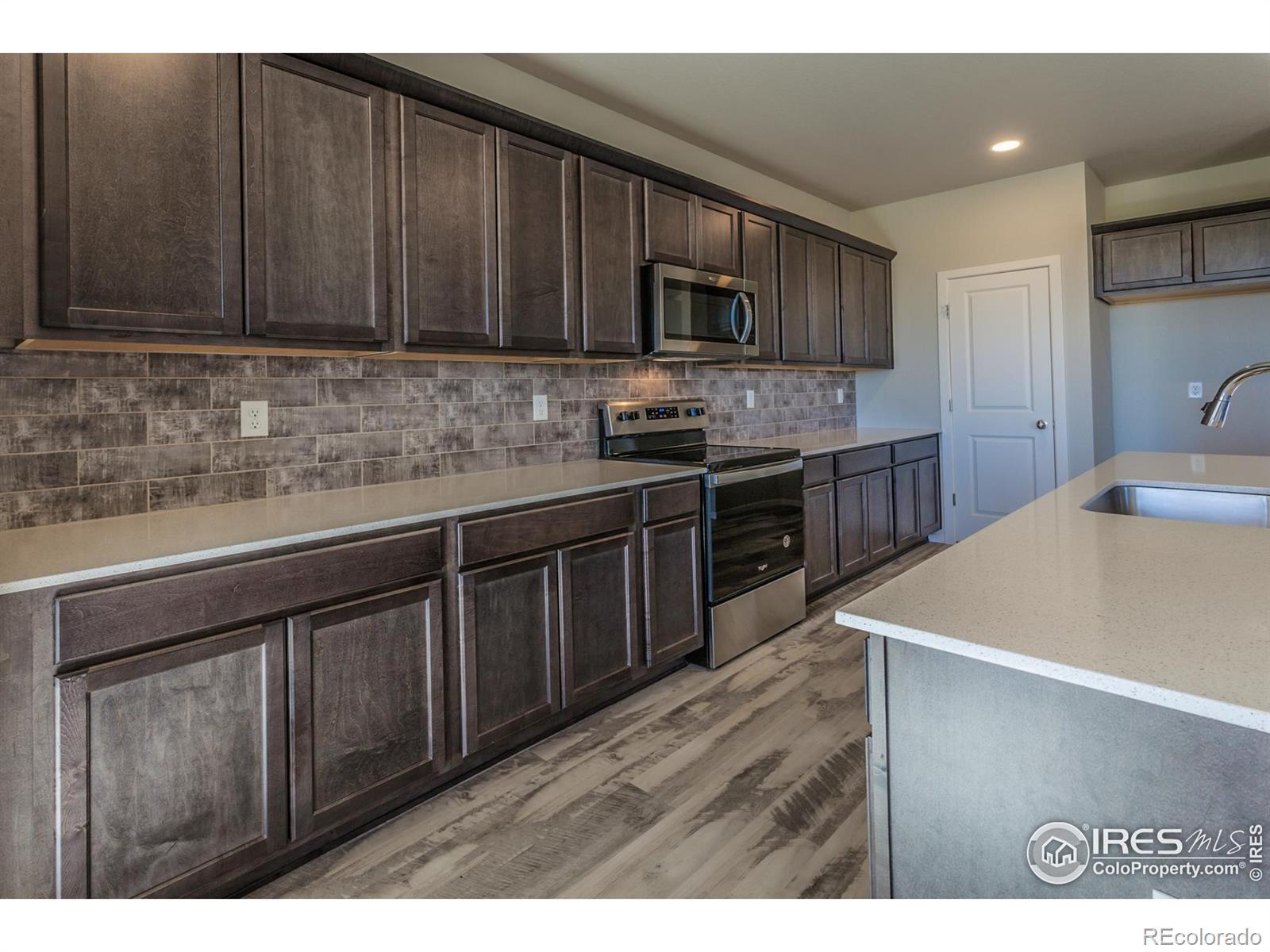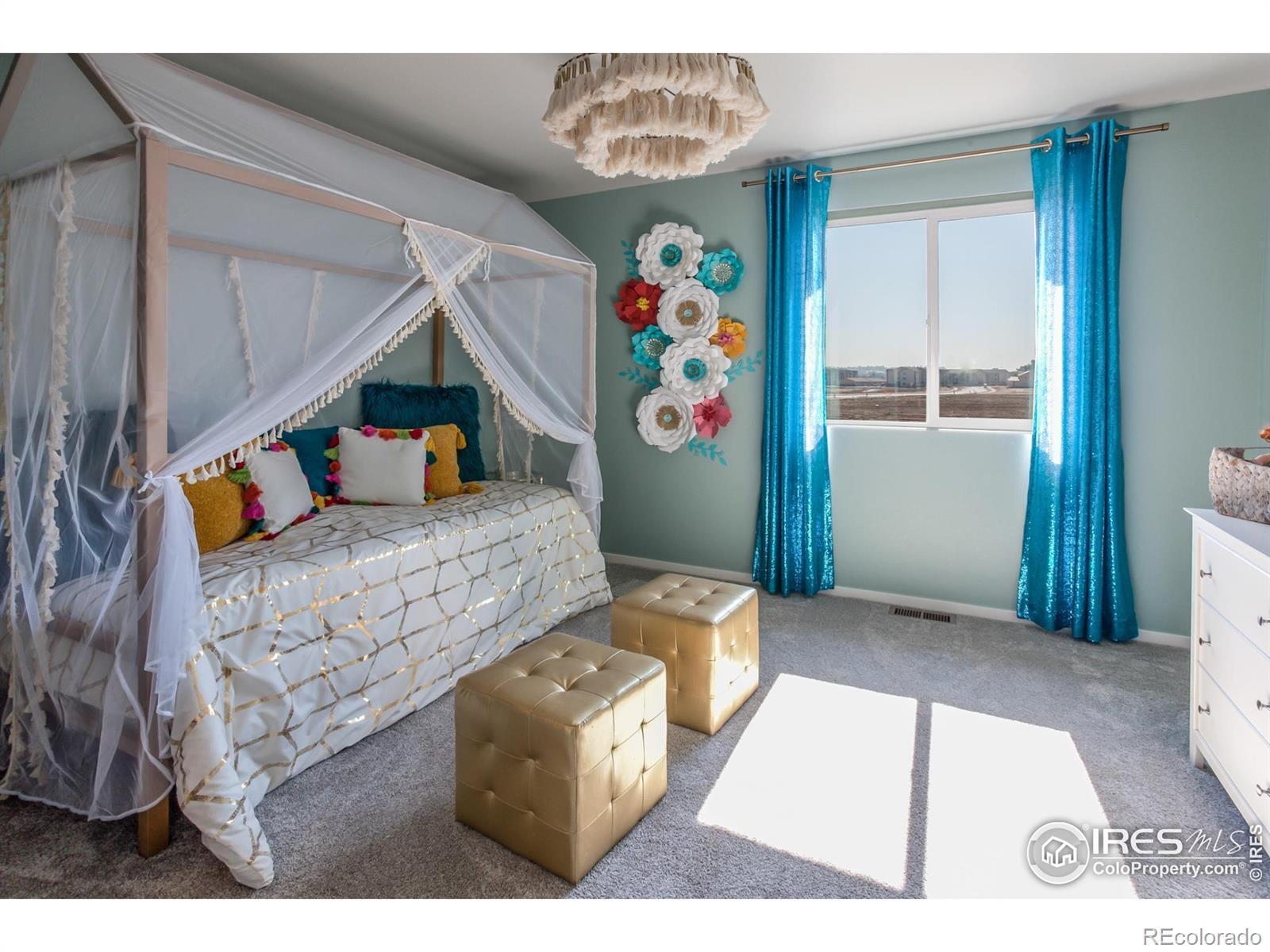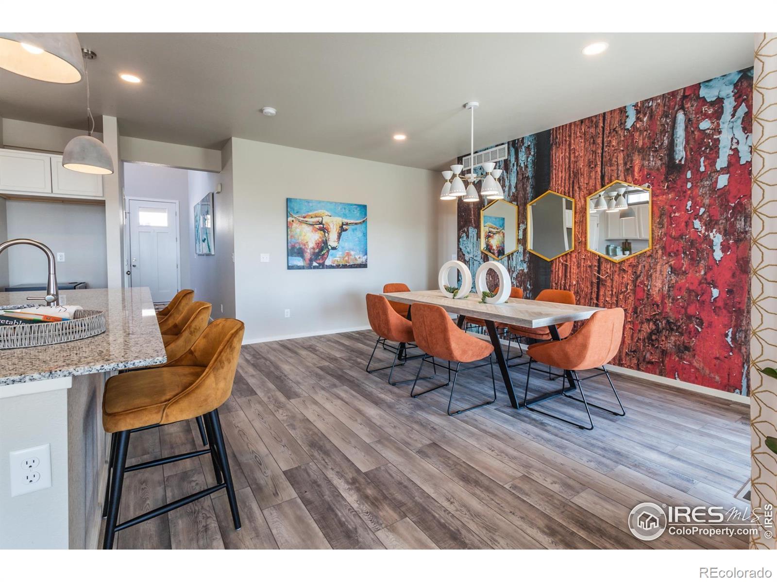The Rowling plan by Hartford Homes. New construction in Prairie Song. The first floor welcomes you with a spacious foyer that opens into an inviting kitchen, dining, and living area. The kitchen features a pantry and a large island. S.s. induction electric cooktop, hood, double wall oven and microwave. Biscotti maple cabinetry throughout. Quartz countertops. A main-floor bedroom and bath. Sliding door opens to a covered patio. Electric fireplace in living room. Vinyl plank flooring in entry, kitchen, dining, living, laundry and baths. Upstairs, the private primary suite has a vaulted ceiling and includes a generous walk-in closet. Two additional bedrooms each include walk-in closets and share a full bath. A spacious loft and laundry room are also on second level. Unfinished basement. 3 car garage w/ garage service door. Front yard landscaping included. Central a/c. Passive radon system. $125 monthly metro district o & m fee. $415 annual non potable fee to be paid to metro district. Future community plans for a pool, parks and trails. PHOTOS FROM A PREVIOUSLY BUILT HOME AND THEREFORE MAY DEPICT DIFFERENT FINISHES. ASK ABOUT CURRENT LENDER OR CASH INCENTIVES. Estimated April/May completion