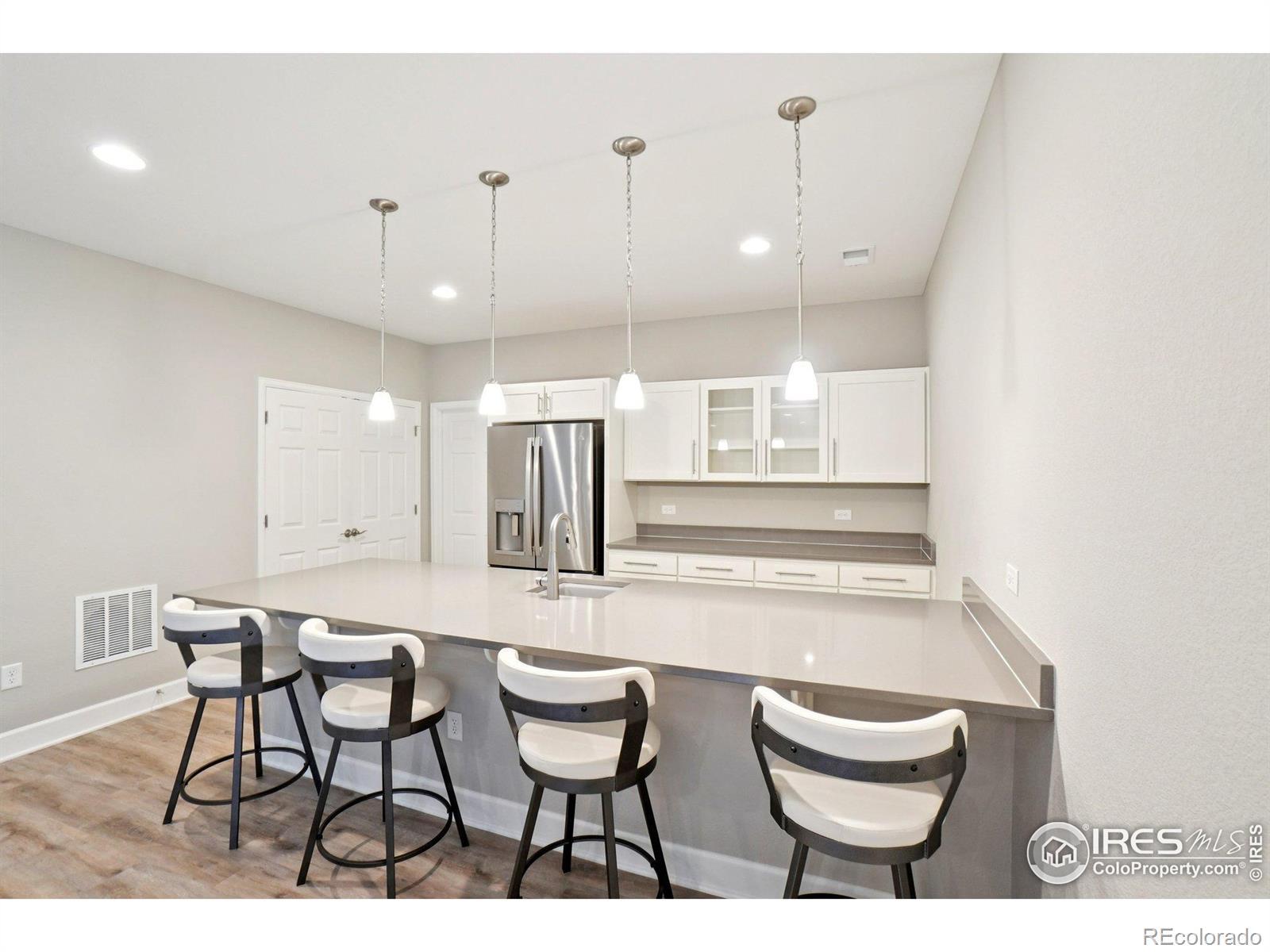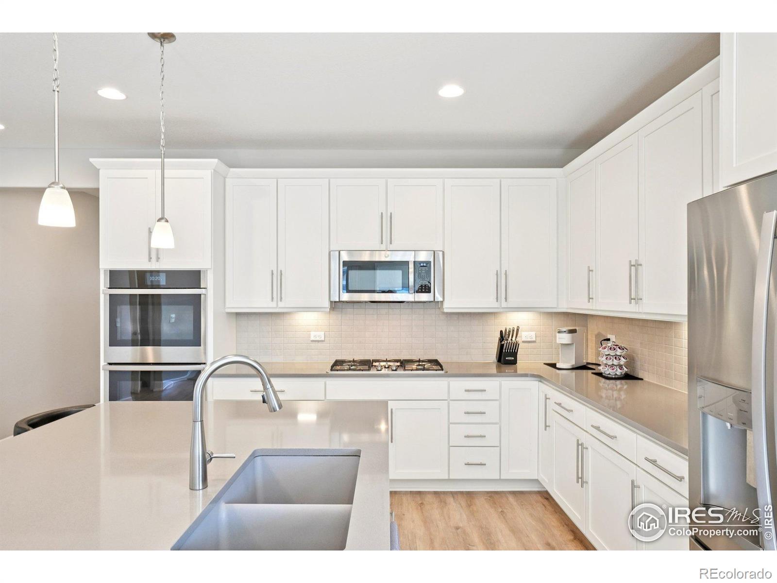 Welcome to 784 Sundown Way, nestled in the sought-after Colliers Hill community in Erie. This 5 bedroom ranch stylehome is move in ready and ideally situated on a corner lot with a 3 car garage, an extended covered patio and built-inoutdoor kitchen. Welcome inside to find a light-filled, open-concept floorplan featuring high ceilings, timeless finishes, andthoughtful design throughout. The gourmet kitchen is the heart of the home, showcasing an expansive center islandperfect for meal prep or casual gatherings. Beautifully appointed with quartz countertops, stainless steel appliances-including double ovens and a gas cooktop-and abundant cabinetry, the kitchen is both functional and elegant. Theadjacent dining area and great room create a seamless flow for everyday living and special gatherings alike. Thesouthwest facing covered patio can be enjoyed year around, with views up the street to the open space and neighborhoodtrails. The outdoor kitchen boasts a 4 burner grill and ice bin for convenience. The spacious primary suite offers a peacefulretreat with a spa-inspired five piece bath and generous walk-in closet. Two additional main floor bedrooms provideflexibility for family, guests or working from home. The finished basement adds incredible versatility, hosting a wet barwith seating, a full sized refrigerator and second pantry. Imagine the possibilities for a home theater, fitness area, rec orgame room and still have plenty of room for storage. Other details include 9' doors, trimmed out windows, upgradedshelving and pass through access to the main level laundry room. Gutters and roof are 2 years old with impact resistantshingles! Living in Colliers Hill means access to outstanding amenities including a community clubhouse, pool, parks, andscenic walking trails-all just minutes from downtown Erie's shops, dining, and top-rated schools.