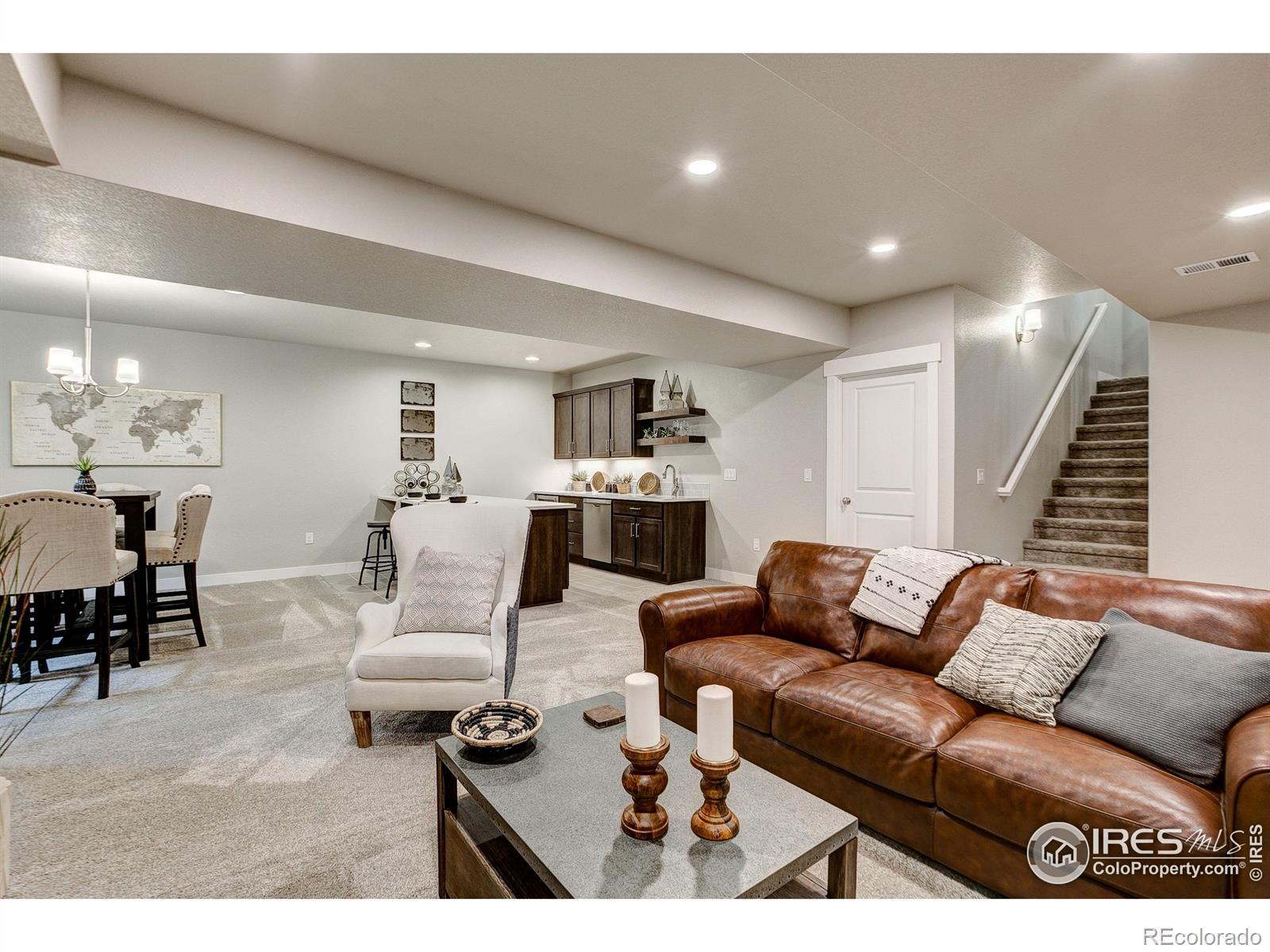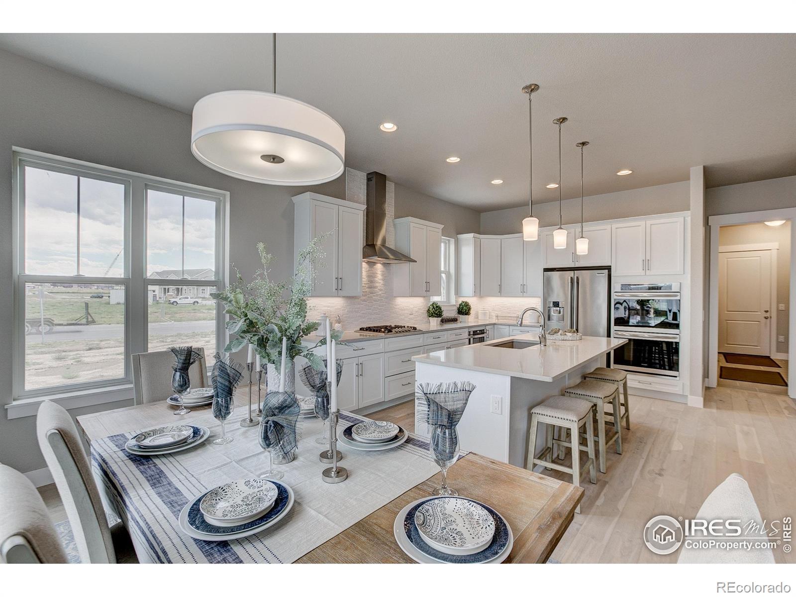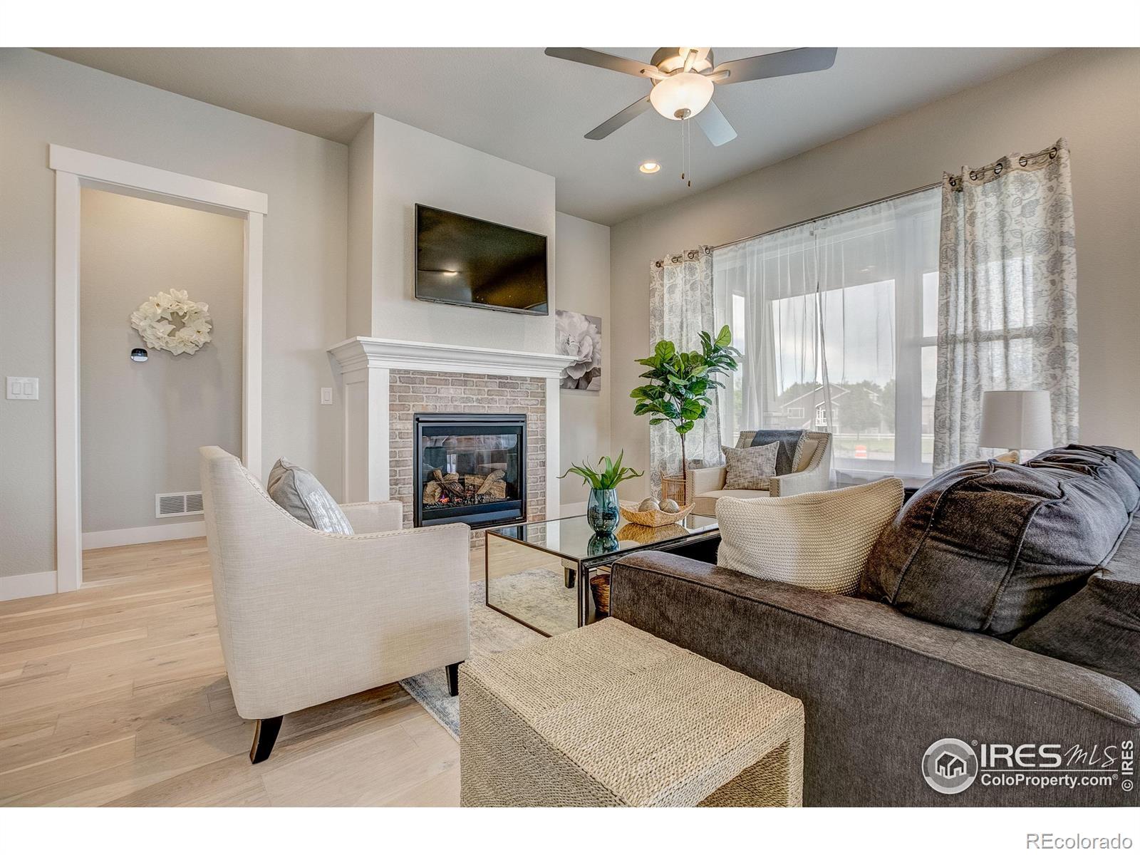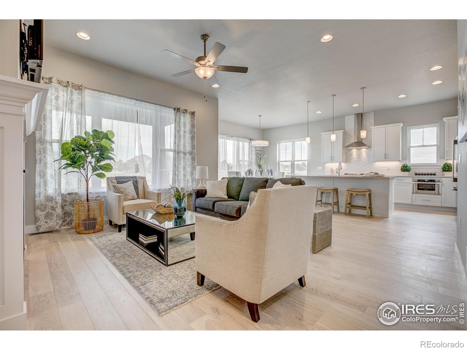 Welocme home to the former Landmark Homes model! This move-in ready stunning ranch style home has a fully finished basement w/ wet bar, & centrally located in Windsor. This home is adjacent to a pocket park & will have a future pocket park beside for ultimate privacy. Be the first homeowner to enjoy this gorgeous new home featuring Smart Home Technology, energy efficient tankless water heater & furnace, A/C, 10' ceilings, upgraded gourmet kitchen w/ stainless appliances including refrigerator, quartz counters, extended engineered hardwood throughout living space & primary bedroom, study w/ glass French doors, 8' solid doors, full landscaping, trails, mature tree lined exterior, & close to shopping, dining, medical & I-25. Schedule your private tour today! Model located at 8412 Cromwell Circle, Windsor, CO 80528.