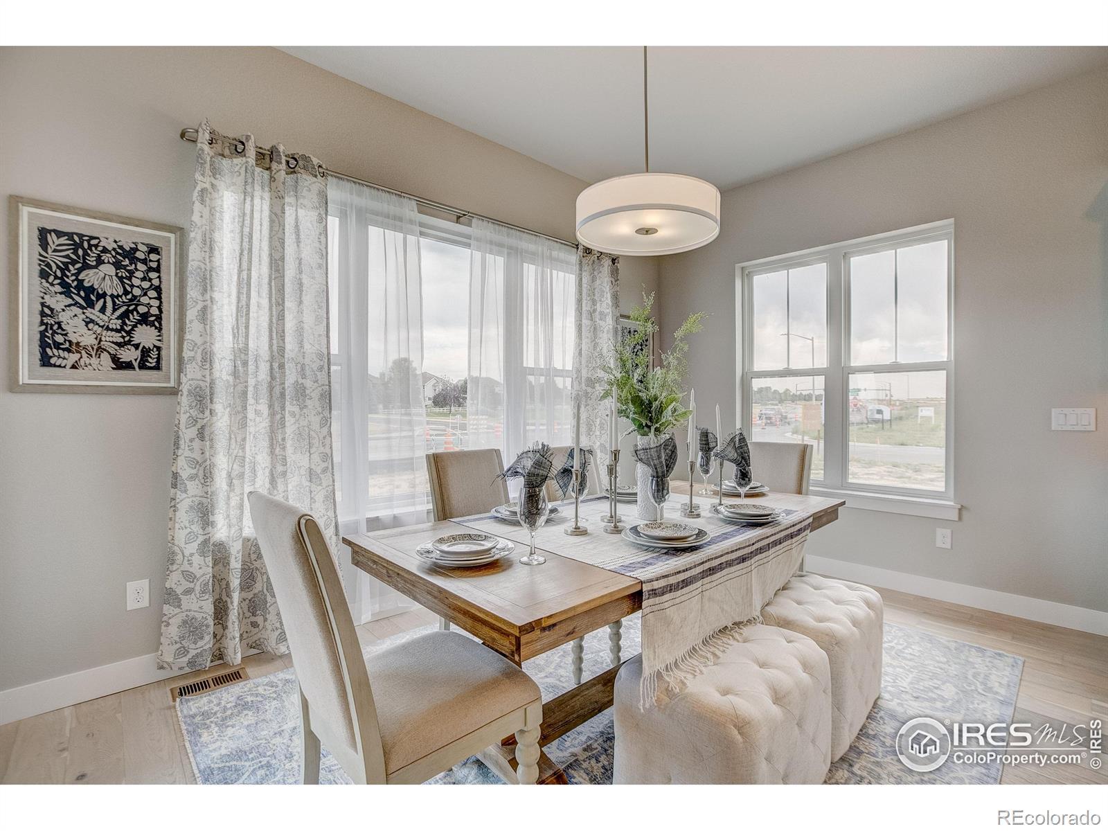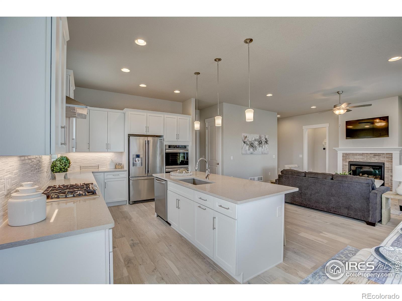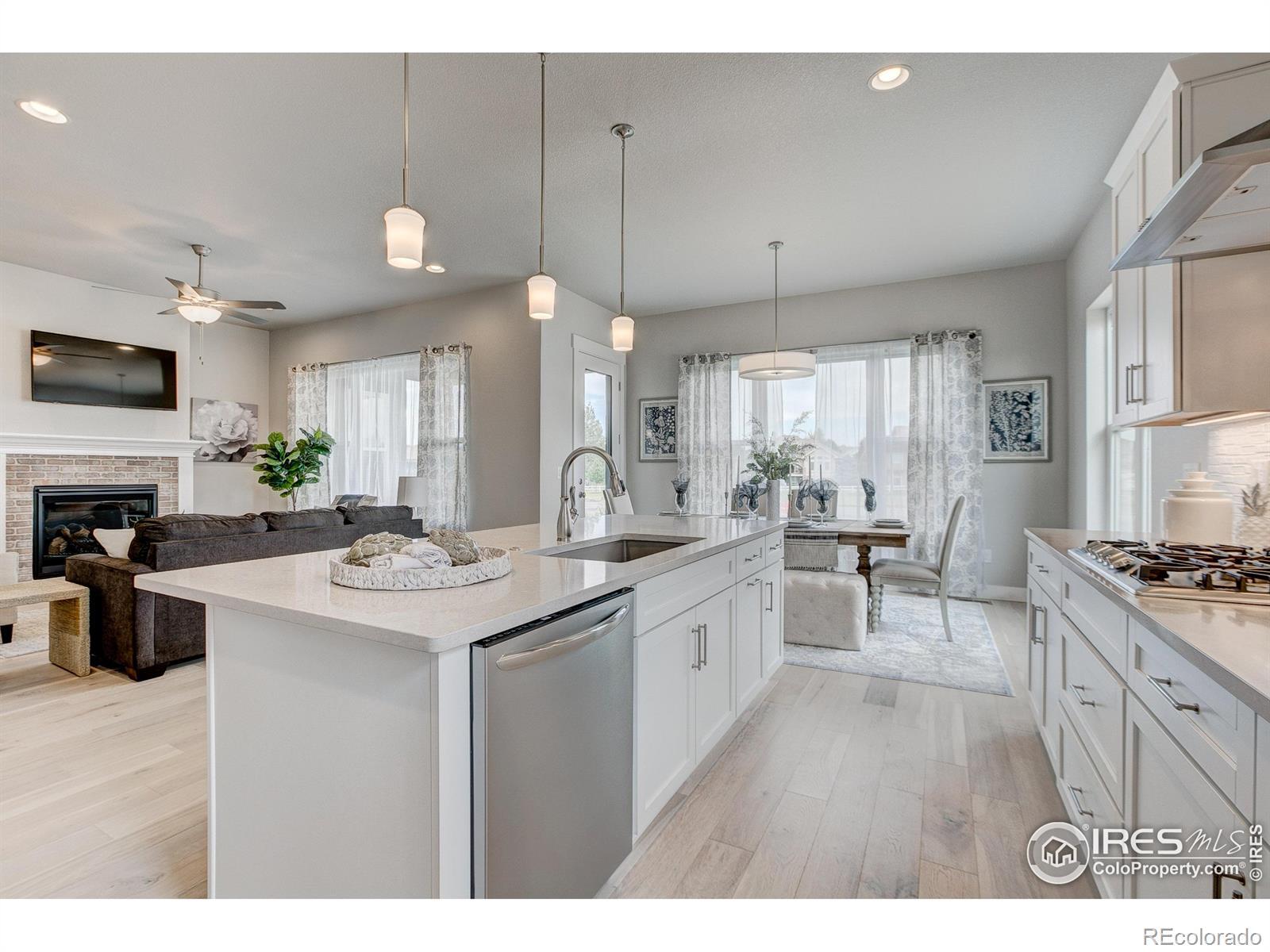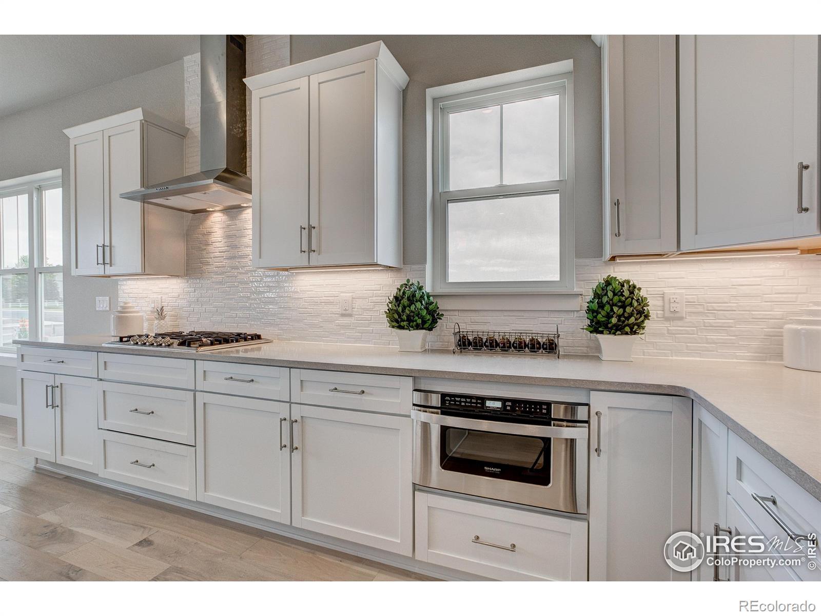 Welocme home to the former Landmark Homes model! This move-in ready stunning ranch style home has a fully finished basement w/ wet bar, & centrally located in Windsor. This home is adjacent to a pocket park & will have a future pocket park beside for ultimate privacy. Be the first homeowner to enjoy this gorgeous new home featuring Smart Home Technology, energy efficient tankless water heater & furnace, A/C, 10' ceilings, upgraded gourmet kitchen w/ stainless appliances including refrigerator, quartz counters, extended engineered hardwood throughout living space & primary bedroom, study w/ glass French doors, 8' solid doors, full landscaping, trails, mature tree lined exterior, & close to shopping, dining, medical & I-25. Schedule your private tour today! Model located at 8412 Cromwell Circle, Windsor, CO 80528.