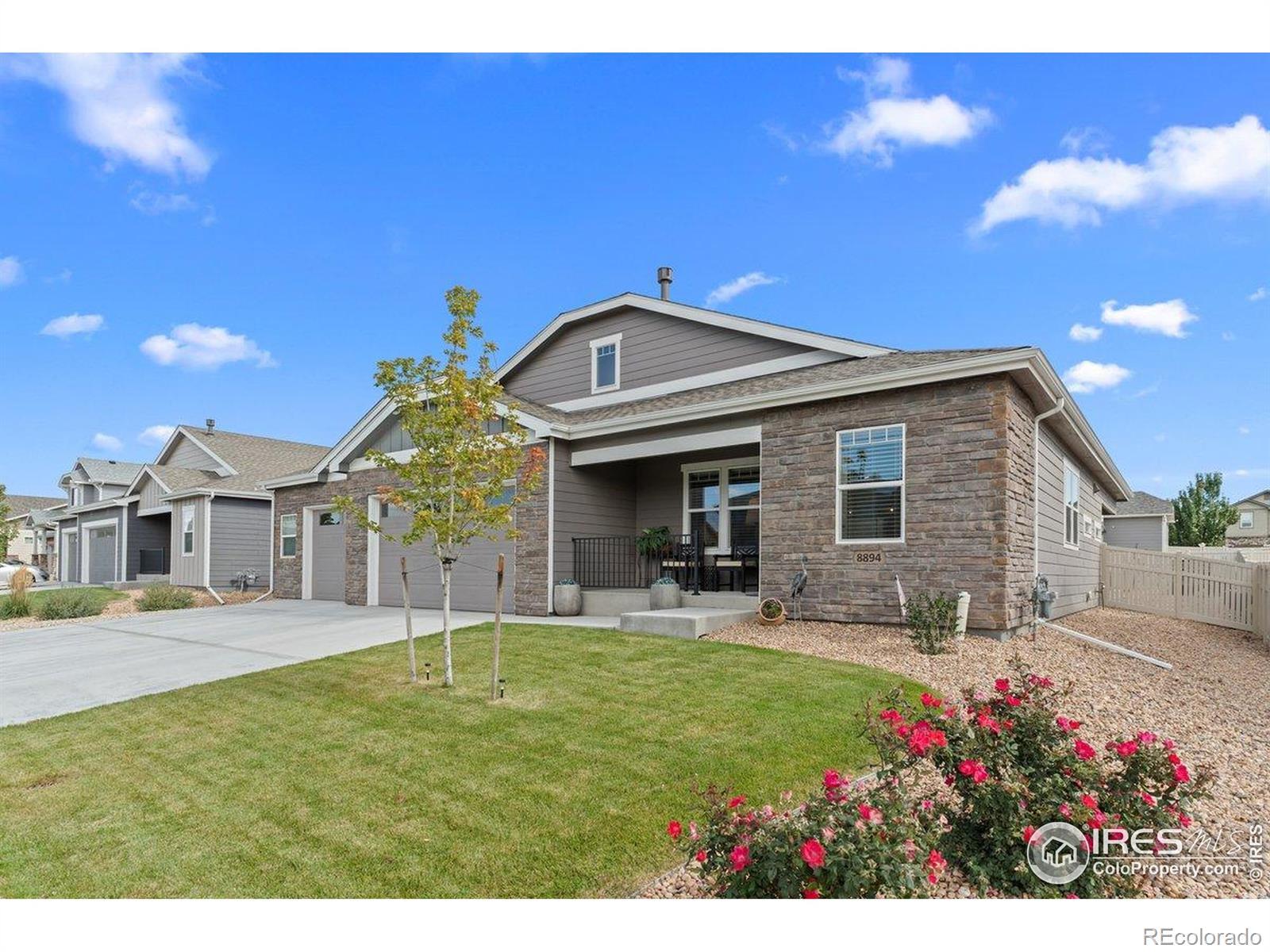 Enjoy all the wonderful perks of the Saddleback Golf Course community with a huge bonus- NO HOA. This is one of three homes built in the community by a higher end builder, and they are not a part of the HOA that the rest of the community is subject to! The perks don't stop there either, with impressive craftsmanship, including a class 4 roof with major impact resistance. This home was built to be enjoyed and shows beautifully. You'll be blown away by the massive, oversized kitchen island, with a farmhouse style sink and fabulous appliances. Between the incredible number of cabinets and the huge pantry, you'll have plenty of kitchen storage! The Primary Suite is an oasis of its own with vaulted ceilings and an oversized luxurious shower. With its close proximity to Saddleback Golf Course and the Saddleback clubhouse, you'll be living the high life- and the location also offers closeness to the Bella Rosa Golf Course, parks, restaurants, schools, and easy access to I-25 and 119! This is a unique gem that is as rare as it is gorgeous, and you won't want to miss it!