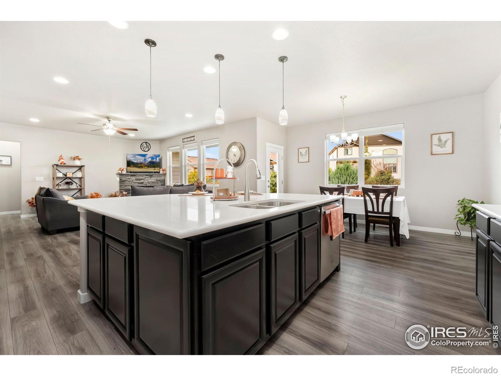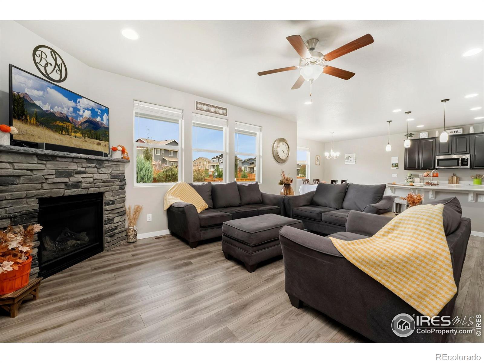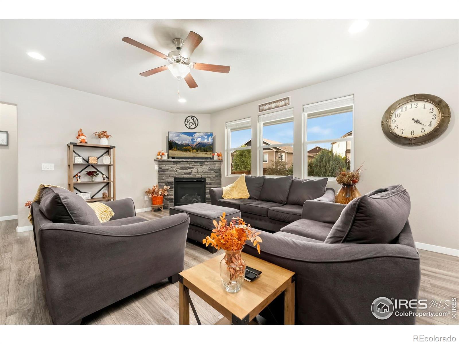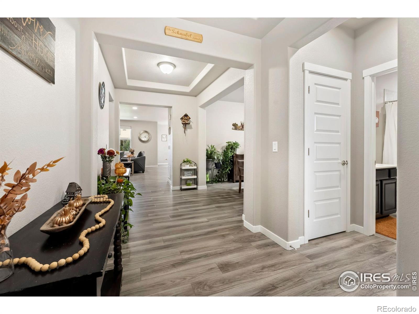Fall in love with this gorgeous & immaculate ranch retreat with fully finished basement & private yard in a wonderful location. Not only does the home feel brand new, but it also exudes modern luxury & thoughtful design throughout with its numerous upgrades. Soaring ceilings & rich luxury vinyl floors set a welcoming tone to the open concept main level containing a formal dining room, spacious eat-in kitchen, & living room with cozy fireplace. The gourmet kitchen adorns beautiful cabinets, large quartz island, stainless appliances, double ovens, & generous pantry. The lavish primary suite features a spa-inspired 5-piece bath, walk-in closet, & seamless access to the laundry room for added convenience. The basement boasts 9-foot ceilings that create a light, expansive ambiance with a secondary primary bedroom with en-suite bath & walk-in closet, plus two additional bedrooms with shared bath. Its expansive rec room & stylish wet bar with dual refrigerators is ideal for entertaining or multi-generational living. Enjoy the Colorado outdoors on your extra-large covered concrete pad overlooking the mature, manicured yard with privacy trees & fencing. The coveted South facing driveway & 3-car garage with newly insulated doors make this home the "whole package!" Moments from the neighborhood park, top-rated schools, & the charm of Downtown Windsor, this is truly a must-see!