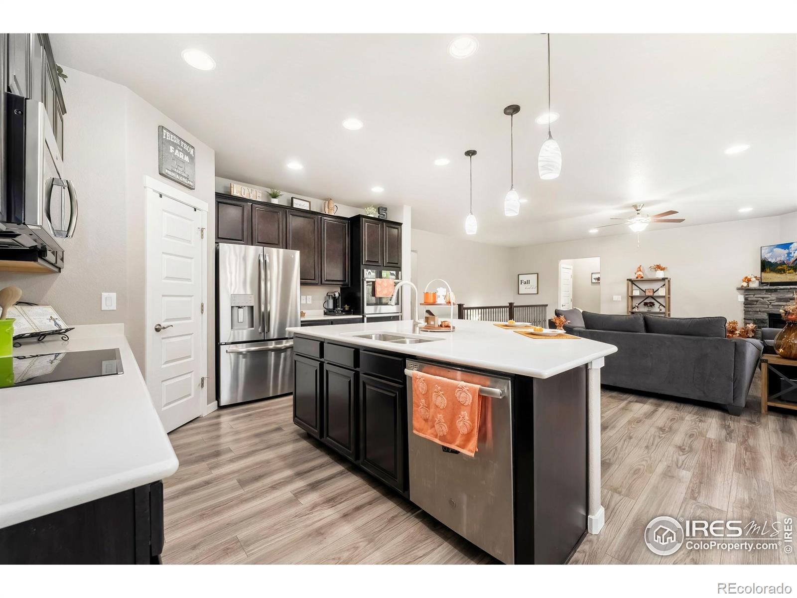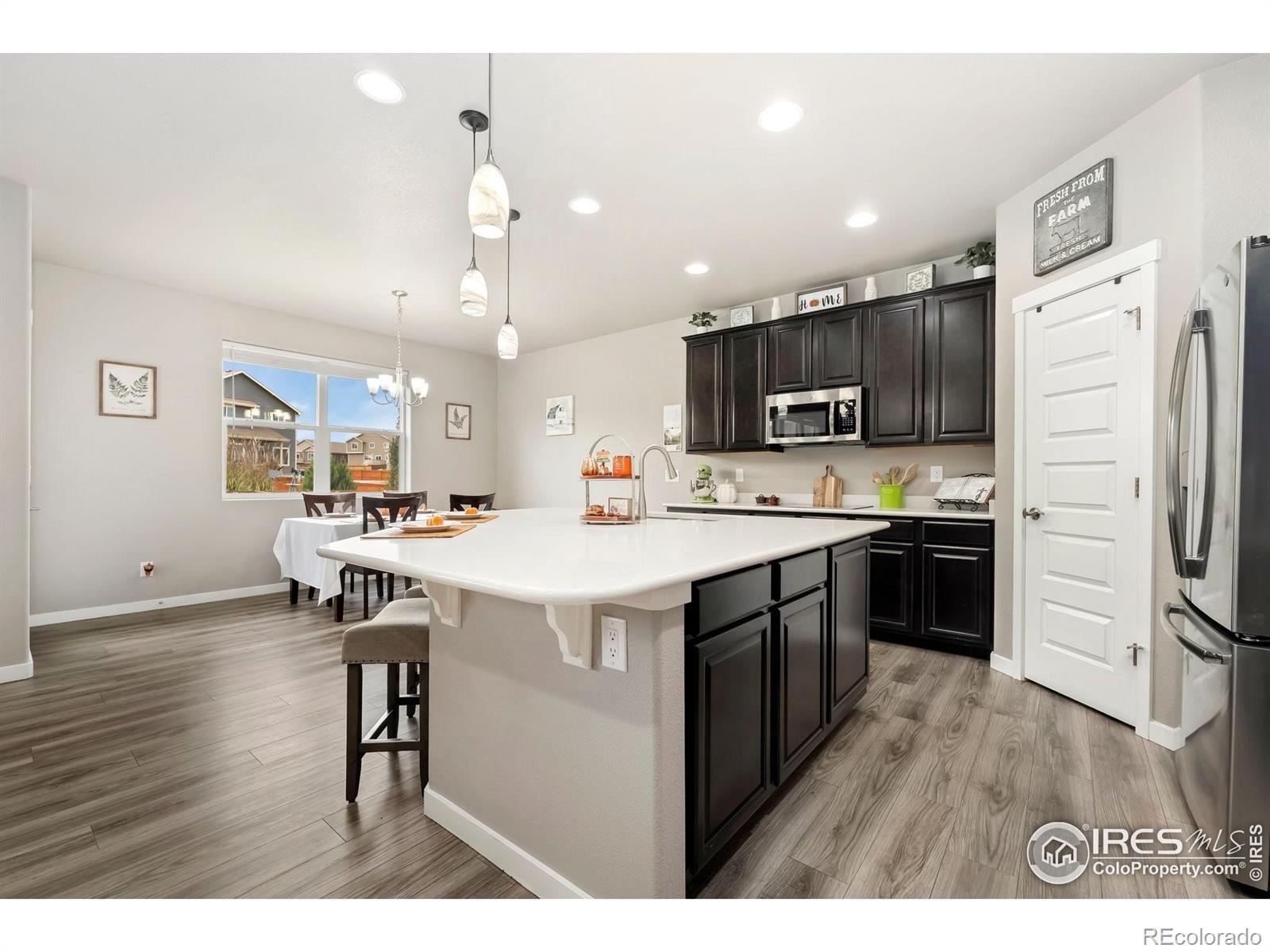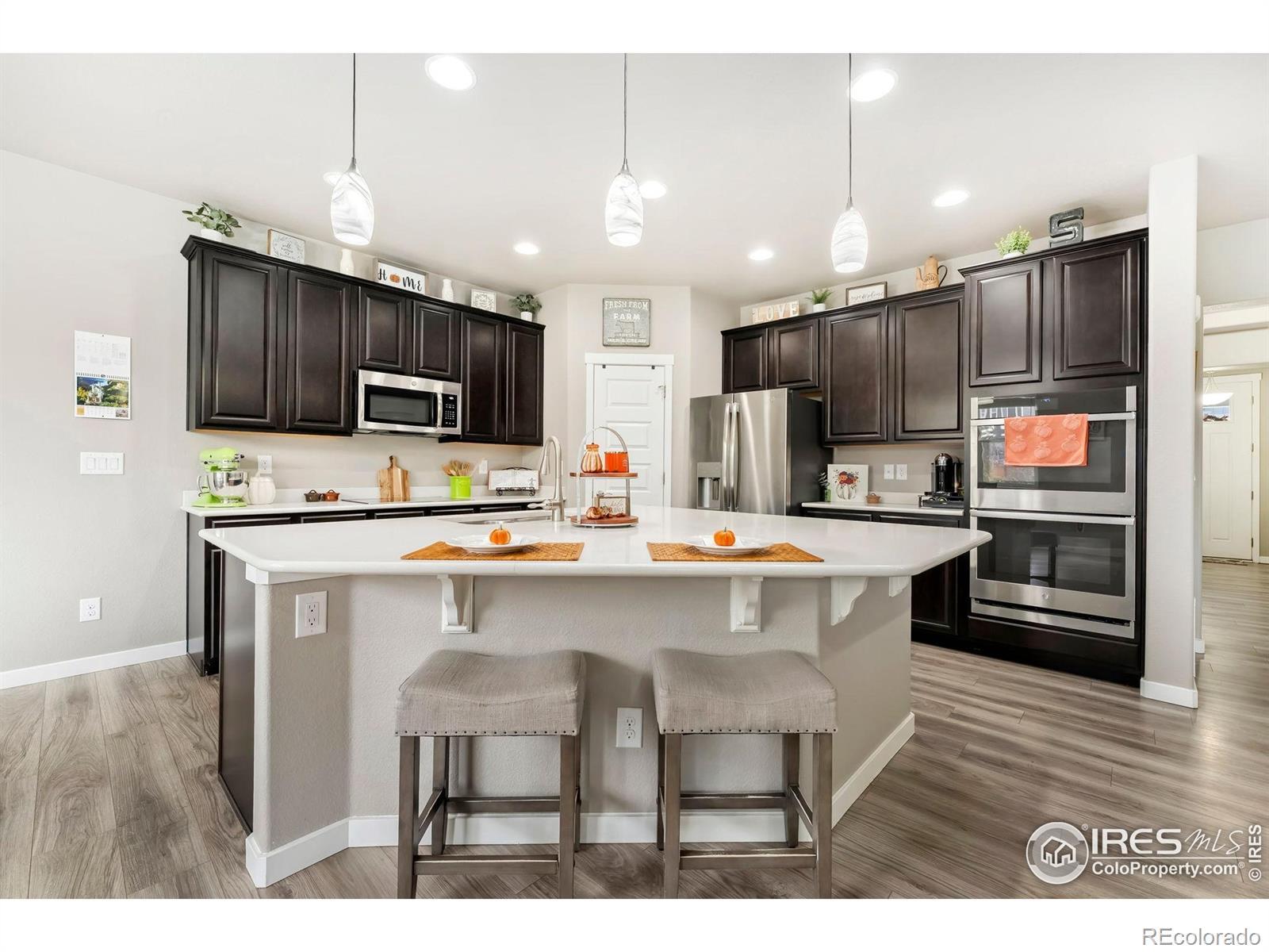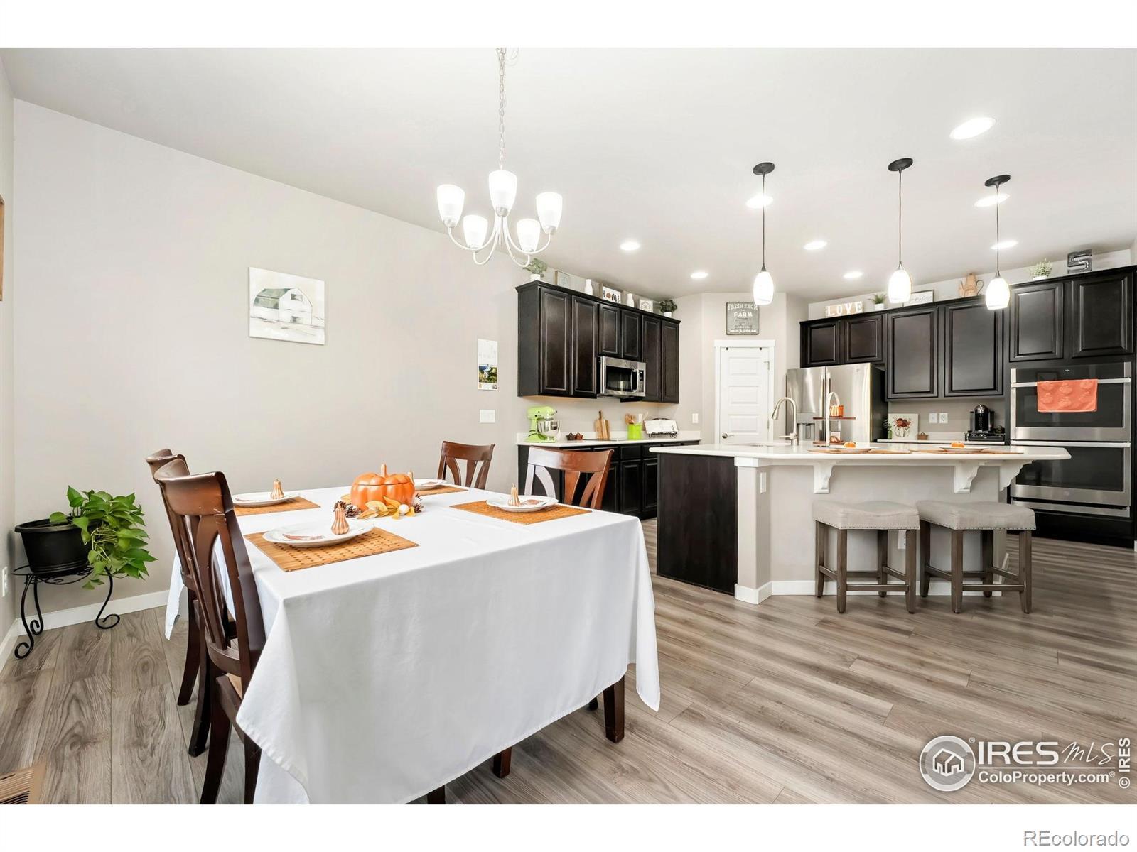 Fall in love with this gorgeous & immaculate ranch retreat with fully finished basement & private yard in a wonderful location. Not only does the home feel brand new, but it also exudes modern luxury & thoughtful design throughout with its numerous upgrades. Soaring ceilings & rich luxury vinyl floors set a welcoming tone to the open concept main level containing a formal dining room, spacious eat-in kitchen, & living room with cozy fireplace. The gourmet kitchen adorns beautiful cabinets, large quartz island, stainless appliances, double ovens, & generous pantry. The lavish primary suite features a spa-inspired 5-piece bath, walk-in closet, & seamless access to the laundry room for added convenience. The basement boasts 9-foot ceilings that create a light, expansive ambiance with a secondary primary bedroom with en-suite bath & walk-in closet, plus two additional bedrooms with shared bath. Its expansive rec room & stylish wet bar with dual refrigerators is ideal for entertaining or multi-generational living. Enjoy the Colorado outdoors on your extra-large covered concrete pad overlooking the mature, manicured yard with privacy trees & fencing. The coveted South facing driveway & 3-car garage with newly insulated doors make this home the "whole package!" Moments from the neighborhood park, top-rated schools, & the charm of Downtown Windsor, this is truly a must-see!