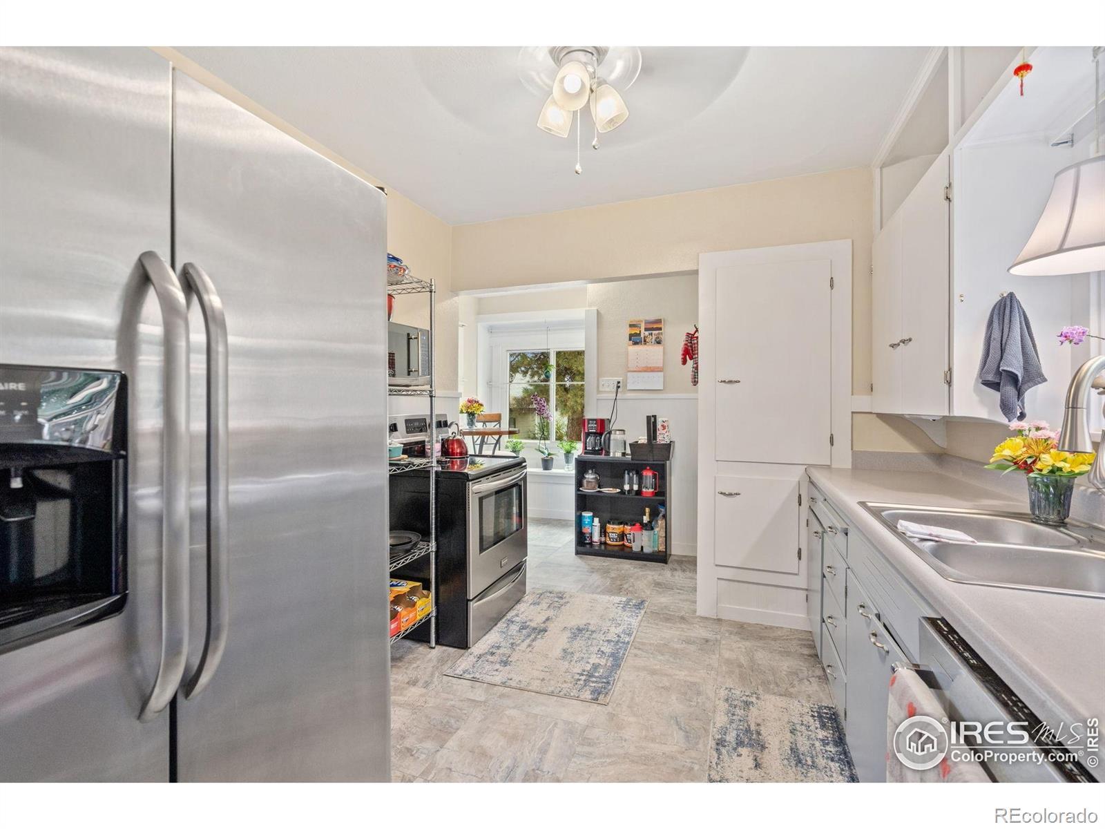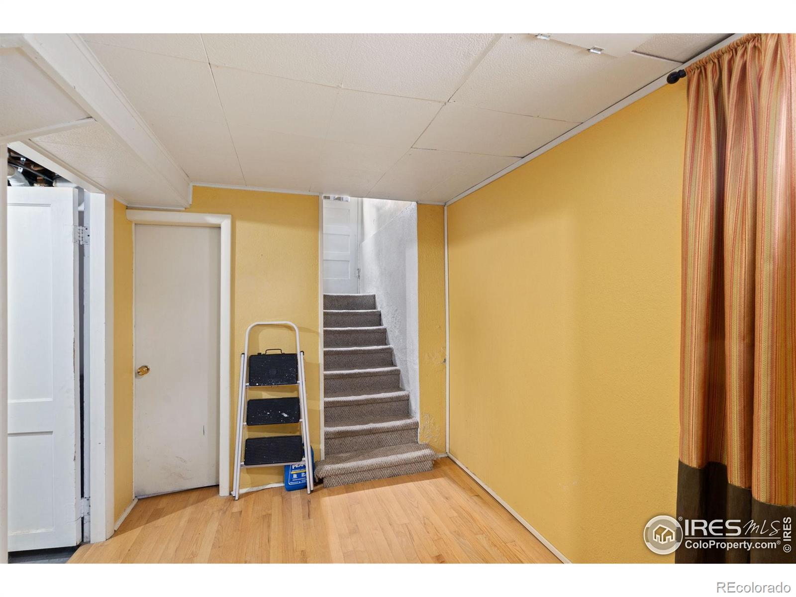Price adjustment AND brand-new roof make this sweet home even sweeter! This charming 1928 bungalow with modern comforts has newer windows, new interior paint and all of the charm and character of a past era located in a friendly, quiet, neighborhood near schools, parks, Churches and shopping, with picturesque, walkable streets to meander through on a still evening as you take in the ambience of small-town living. Old fashioned enclosed front porch greets you like a hug as you enter a large living room. Morning light spills across the wood floors, whispering through rooms that have known laughter, lullabies, and the soft rhythm of everyday life. Two roomy bedrooms and full bath on the Main Floor with a non conforming third bedroom in the basement. The sun warmed Kitchen -completed with every modern comfort has been updated and yet obtains it's original charm with Stainless Appliances and a sunshine filled breakfast nook that overlooks the fenced backyard. Downstairs, the family room offers a cozy nook for movie nights, rainy-day reading, or the comfort of quiet company. Step outside, and the charm continues. A large, open yard invites gardens, gatherings, and starlit evenings. There's room for your RV, a detached garage, and even space for one more - proof that this home was built with both practicality and promise. Flagstone Porch in the backyard is a perfect place to rest on a lazy afternoon and there are great garden spaces throughout the tree shaded lot. No HOA or Metro district here in your new neighborhood!