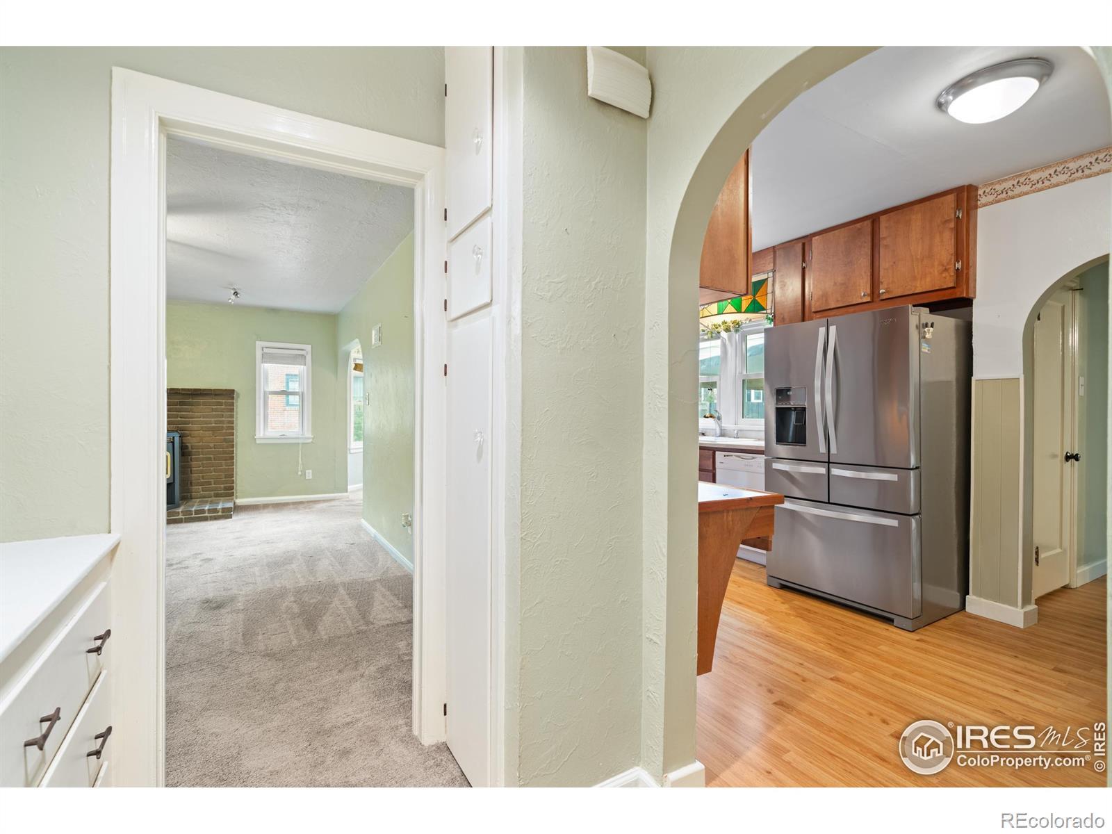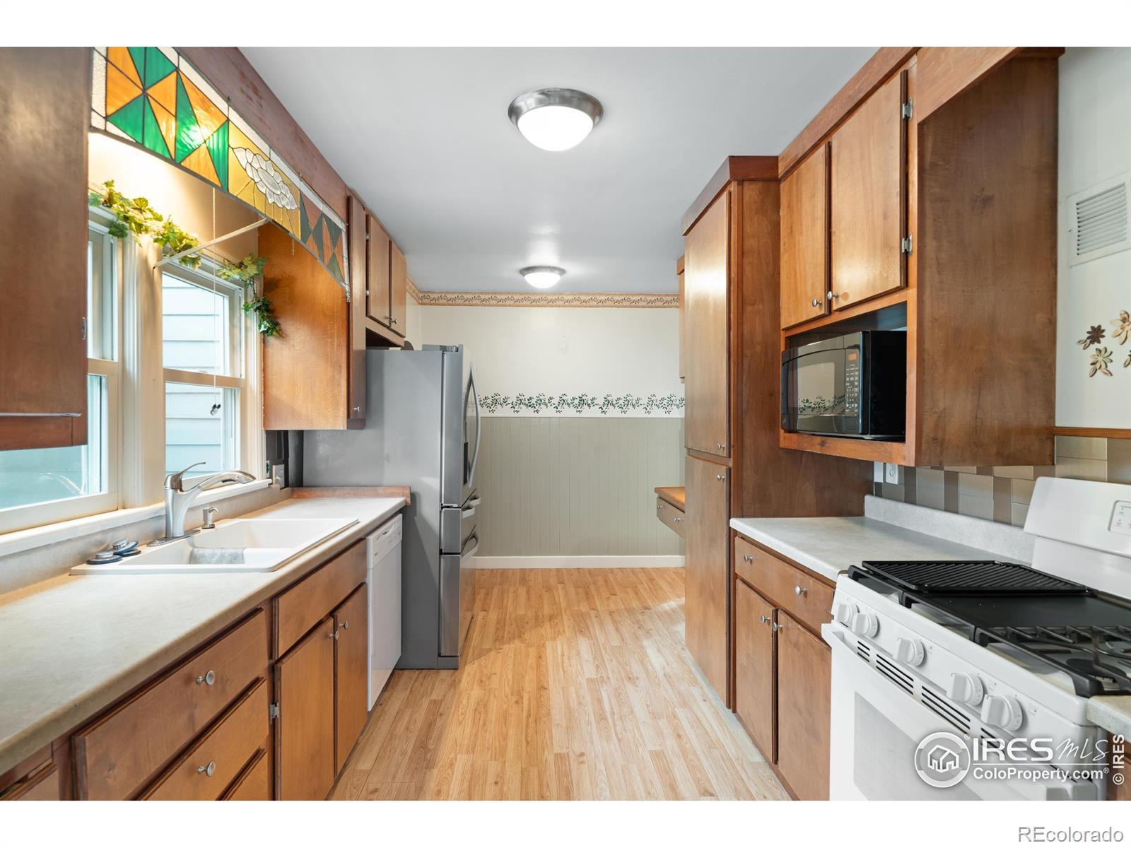 Views of Glenmere park from this charming beauty with 3 bedrooms, 2.5-bathrooms ranch style home in Greeley's desirable Fairacres neighborhood offers convenience, & functionality, just a half-block from scenic Glenmere Park and a short walk to the UNC campus. The large backyard has rear access via a paved side street, ideal for RV parking, & includes an oversized detached garage with a shop area plus a 2 car metal carport, and additional storage shed with no HOA! The main level features a primary suite, additional bedroom, 2 bathrooms, built ins & laundry for easy one-level living. The kitchen features an upgraded fridge, hardwood floors, built in desk space, and convenient access to the separate dining room. Below the partially finished basement includes a half bath, workshop space or bedroom, & ample storage-perfect for crafts or hobbies. Schedule a showing today as this beauty won't last long.