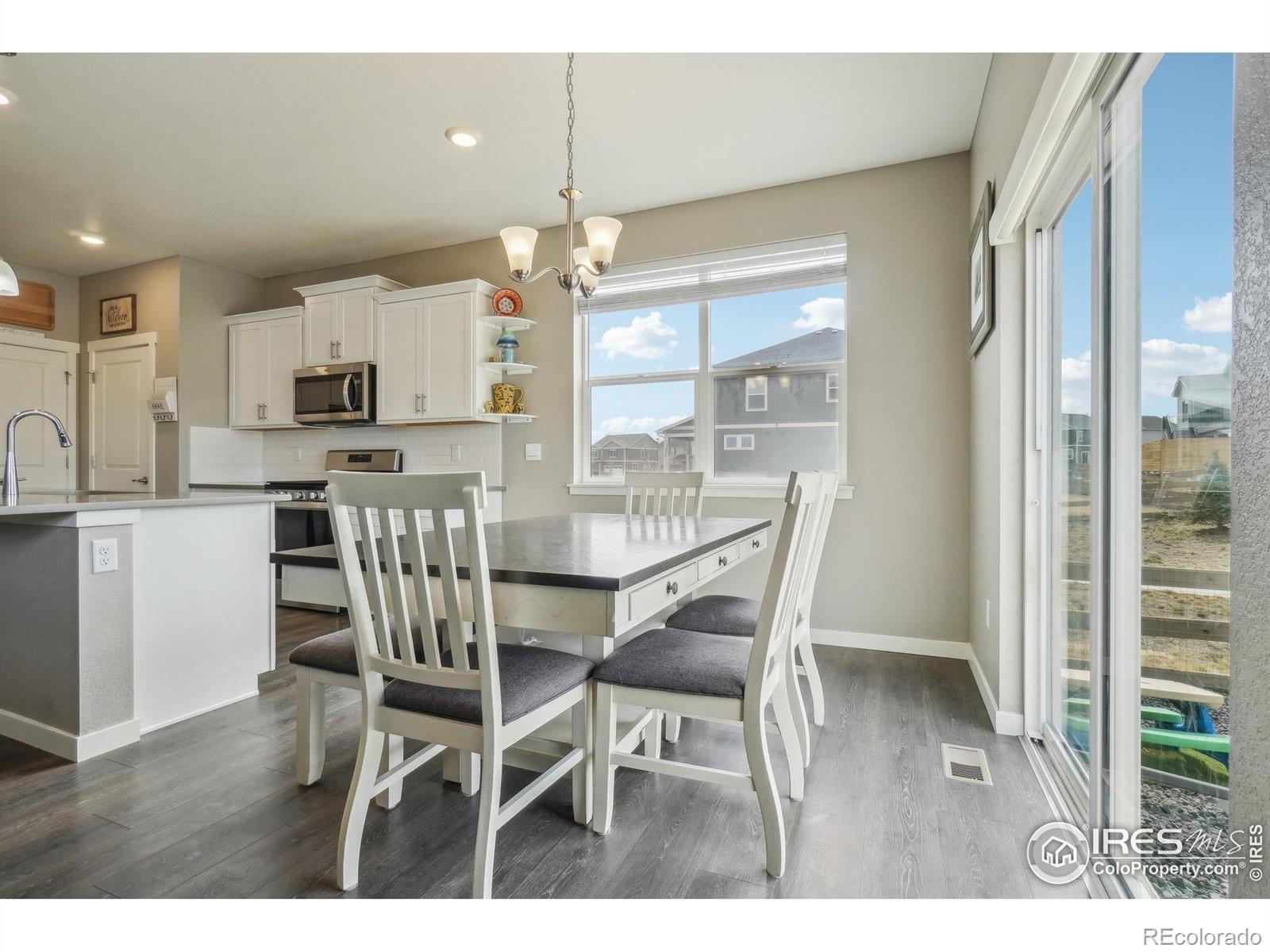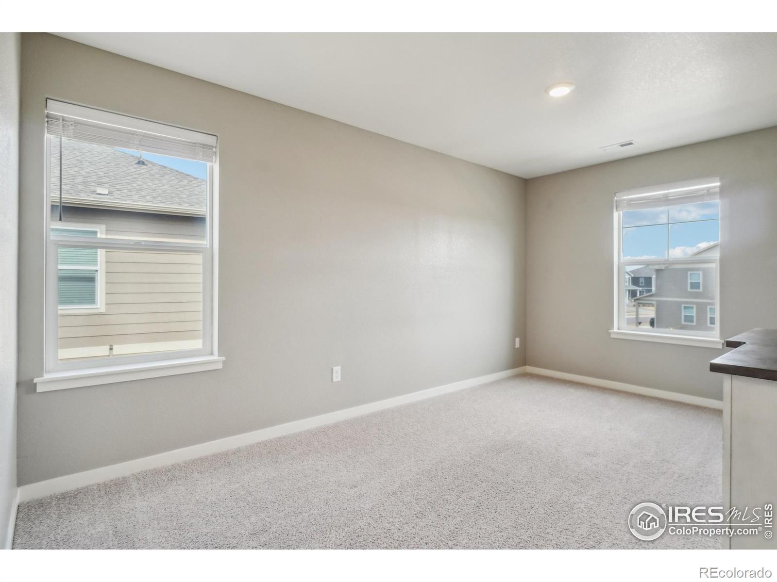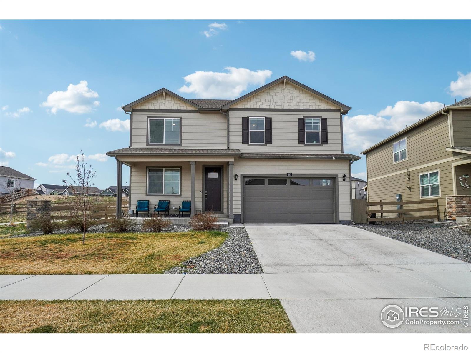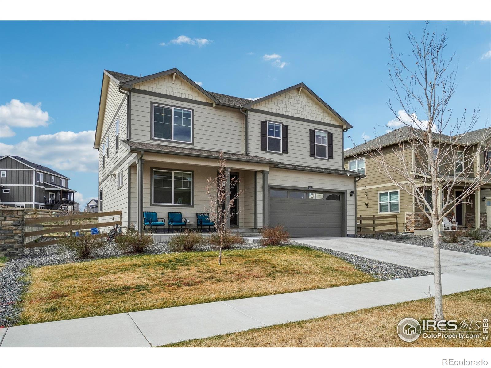 Welcome to this beautiful home in the desirable North Ridge Estates community of Greeley, perfectly situated on a prime lot bordered by HOA greenbelt to the south and behind the property, giving you easy access to walking trails! Enjoy your morning coffee on the charming covered front porch, soaking in the peaceful surroundings. Inside, natural light fills the front formal dining room or office space, offering a versatile area to suit your needs. The open-concept main living area seamlessly connects the kitchen, dining area, and living room, creating the perfect space for entertaining. The kitchen features quartz countertops, stainless steel appliances, a pantry, and an island with sink and seating, while the eat-in area opens to the backyard through sliding glass doors. The main floor also includes a bedroom and full bath, plus access to the attached two-car garage. Upstairs, a bonus loft space provides endless possibilities-use it as a playroom, office, or second living area. The spacious primary suite includes a private en-suite bath, while three additional bedrooms share a full bath with dual sinks, ensuring plenty of space for all. A convenient upstairs laundry room adds to the home's thoughtful layout. Custom top-down, bottom-up blackout shades in all bedrooms offer privacy and comfort. Step outside to the fenced backyard, featuring a storage shed, lawn space, and direct access to the greenbelt. With another common green space just across the street, this home feels extra private and open, providing a true sense of tranquility. Don't miss this incredible opportunity to enjoy peaceful living with easy access to outdoor recreation, schools, and everyday conveniences!