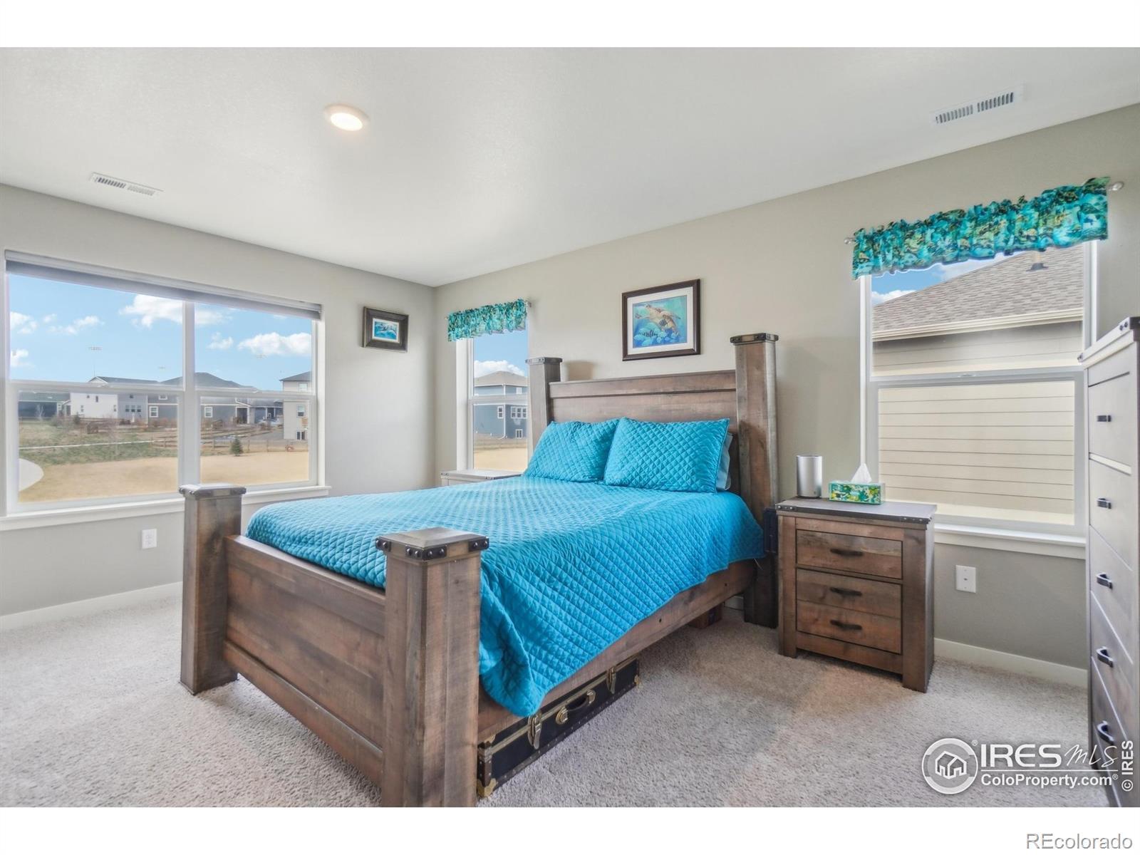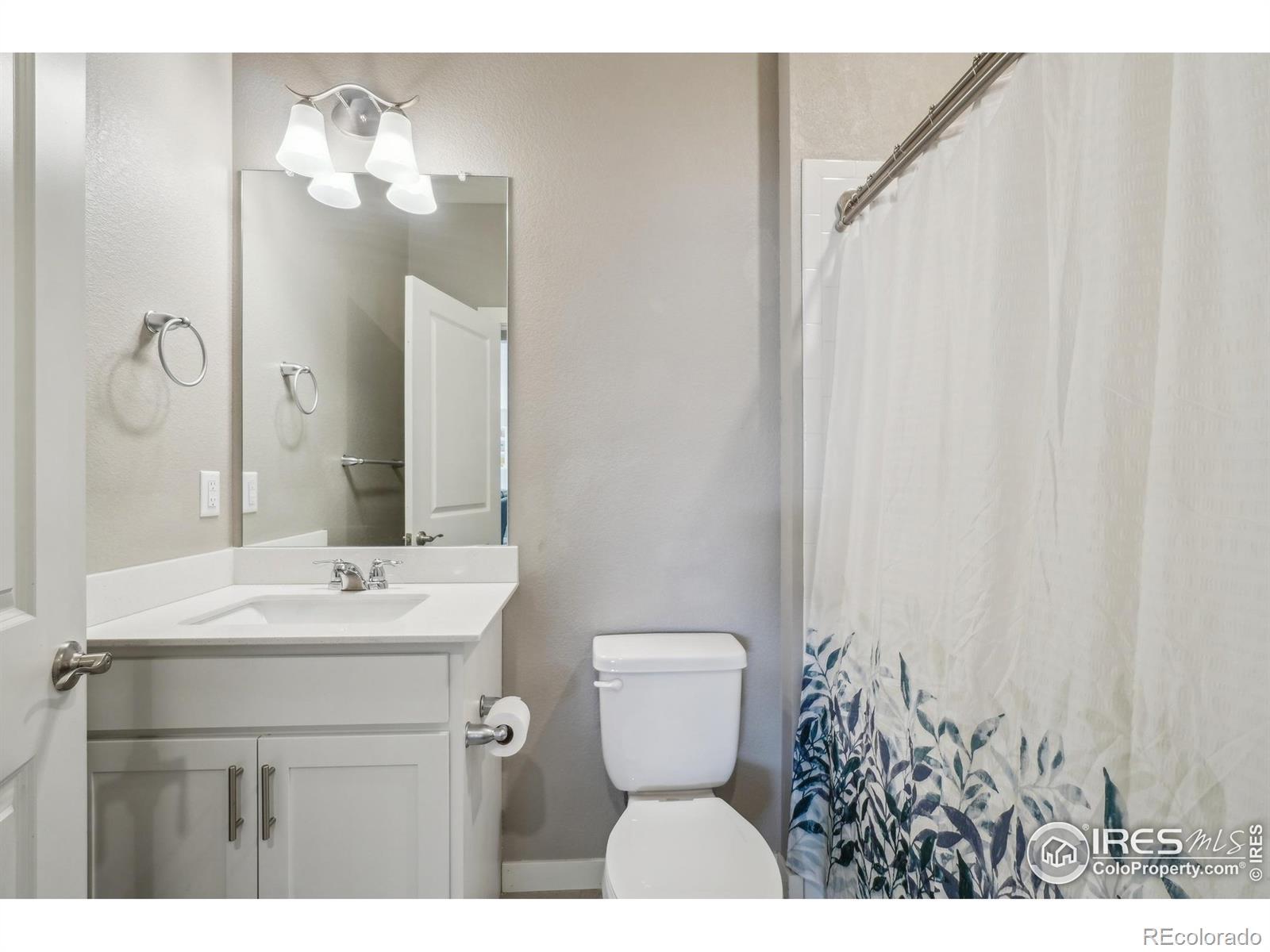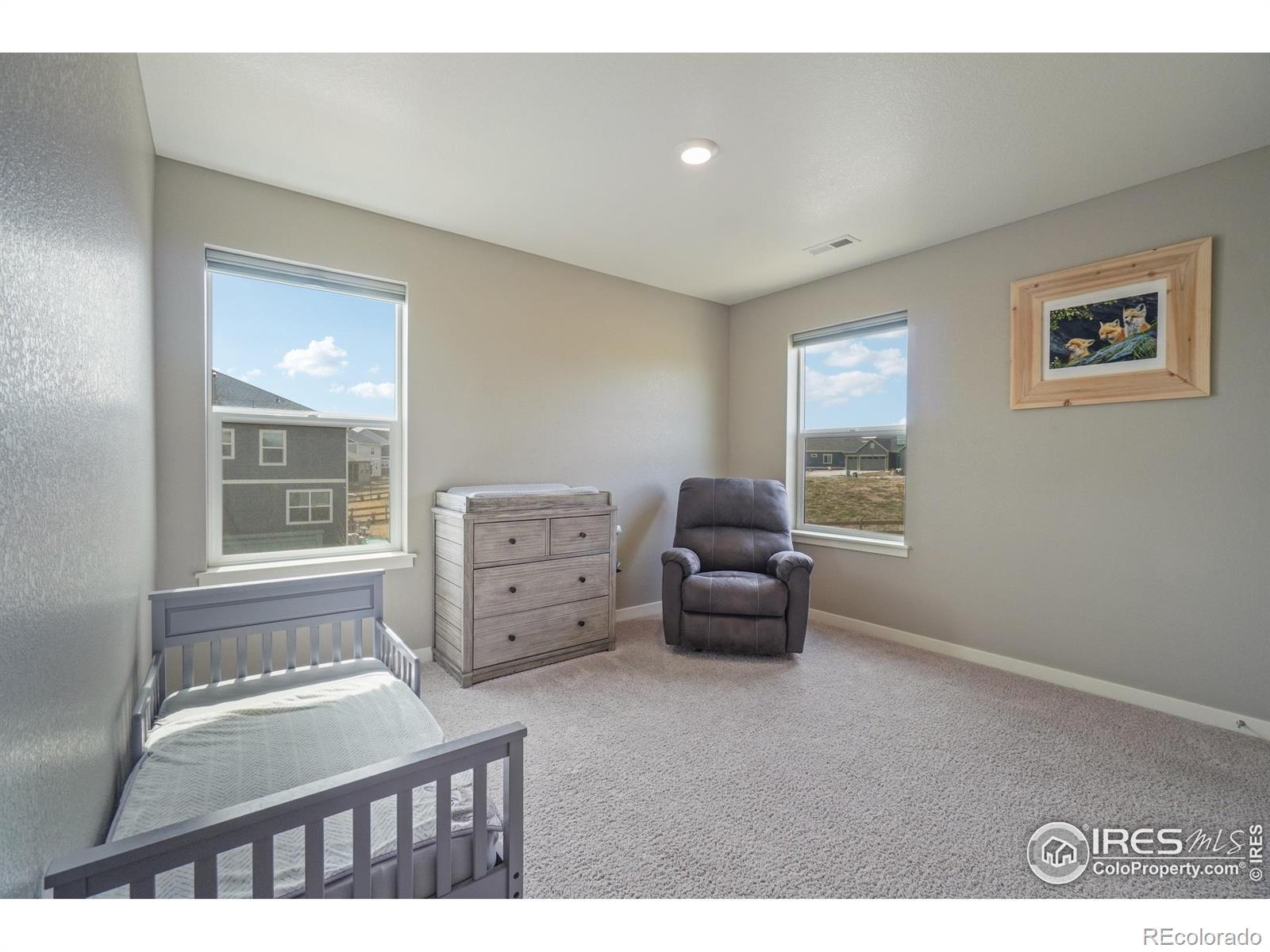 Welcome to this beautiful home in the desirable North Ridge Estates community of Greeley, perfectly situated on a prime lot bordered by HOA greenbelt to the south and behind the property, giving you easy access to walking trails! Enjoy your morning coffee on the charming covered front porch, soaking in the peaceful surroundings. Inside, natural light fills the front formal dining room or office space, offering a versatile area to suit your needs. The open-concept main living area seamlessly connects the kitchen, dining area, and living room, creating the perfect space for entertaining. The kitchen features quartz countertops, stainless steel appliances, a pantry, and an island with sink and seating, while the eat-in area opens to the backyard through sliding glass doors. The main floor also includes a bedroom and full bath, plus access to the attached two-car garage. Upstairs, a bonus loft space provides endless possibilities-use it as a playroom, office, or second living area. The spacious primary suite includes a private en-suite bath, while three additional bedrooms share a full bath with dual sinks, ensuring plenty of space for all. A convenient upstairs laundry room adds to the home's thoughtful layout. Custom top-down, bottom-up blackout shades in all bedrooms offer privacy and comfort. Step outside to the fenced backyard, featuring a storage shed, lawn space, and direct access to the greenbelt. With another common green space just across the street, this home feels extra private and open, providing a true sense of tranquility. Don't miss this incredible opportunity to enjoy peaceful living with easy access to outdoor recreation, schools, and everyday conveniences!
