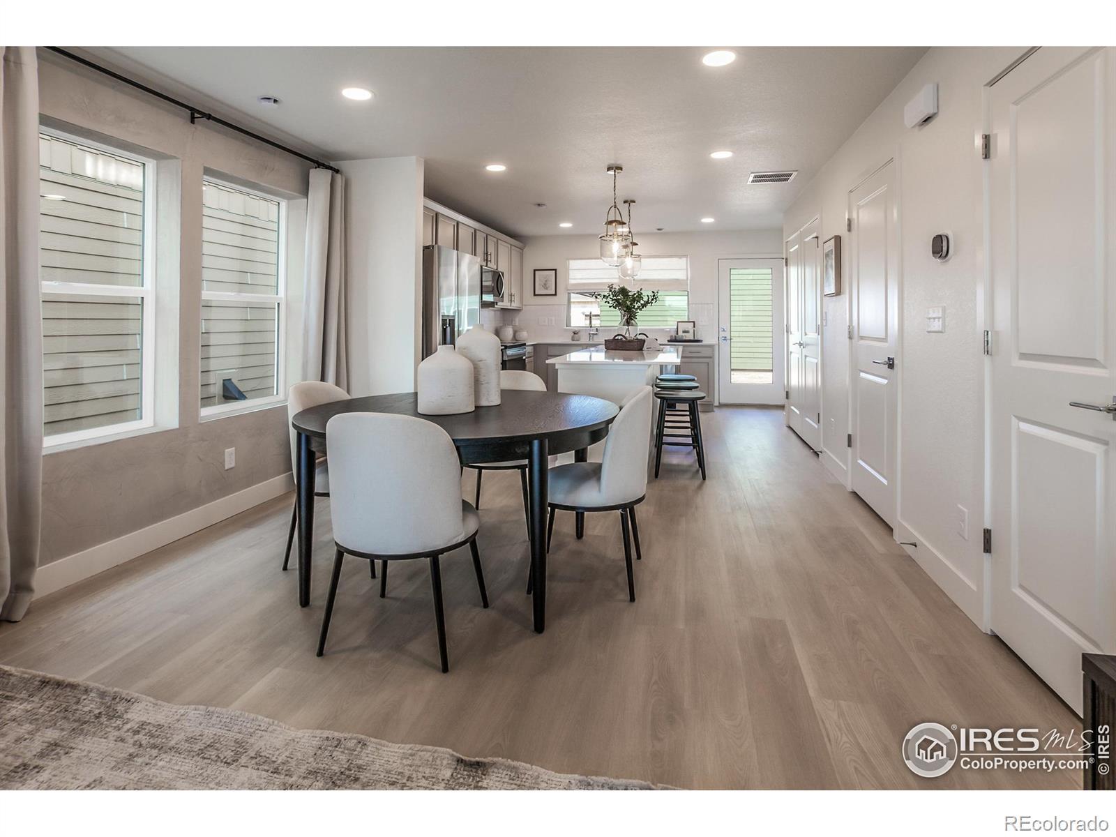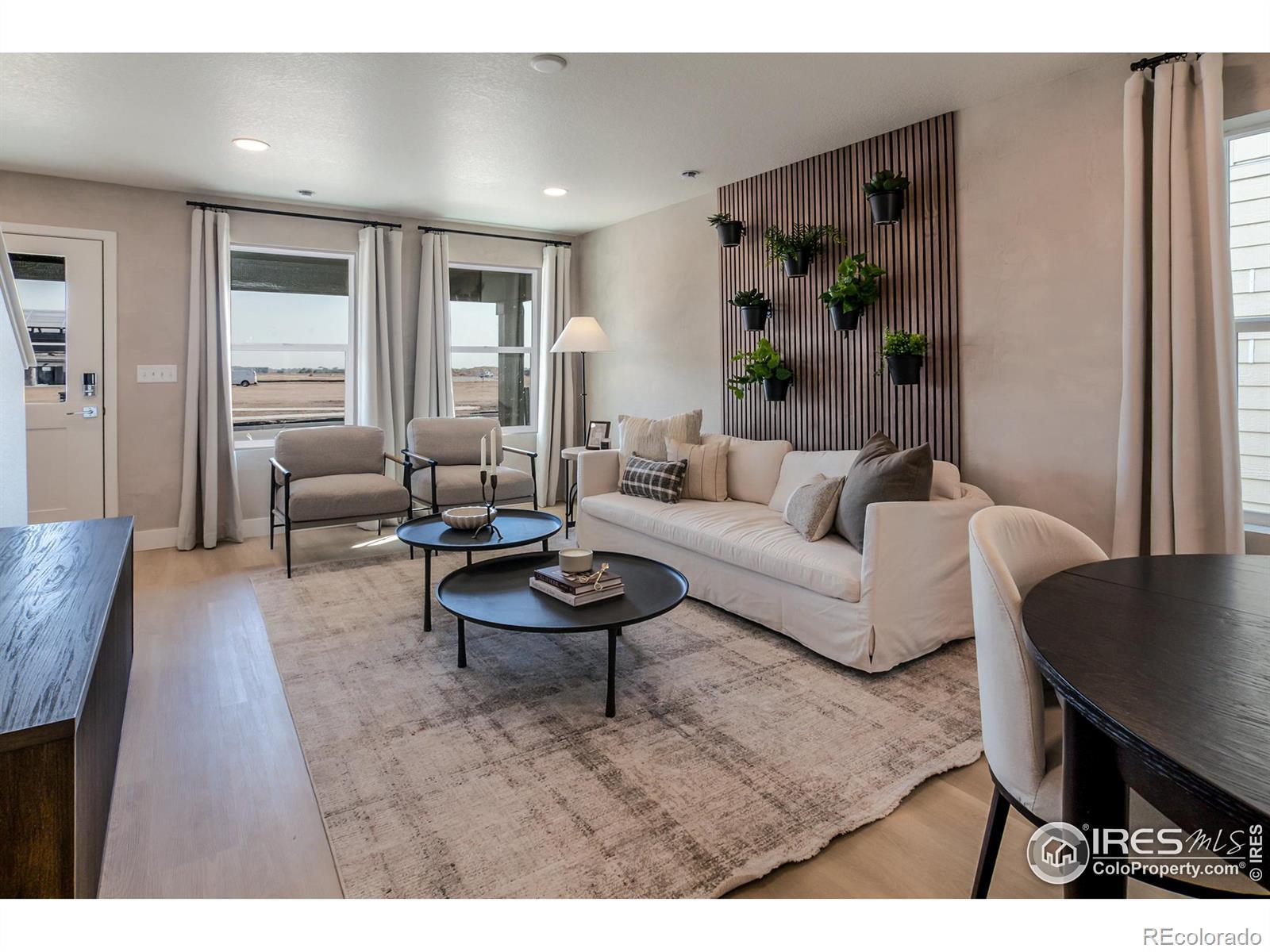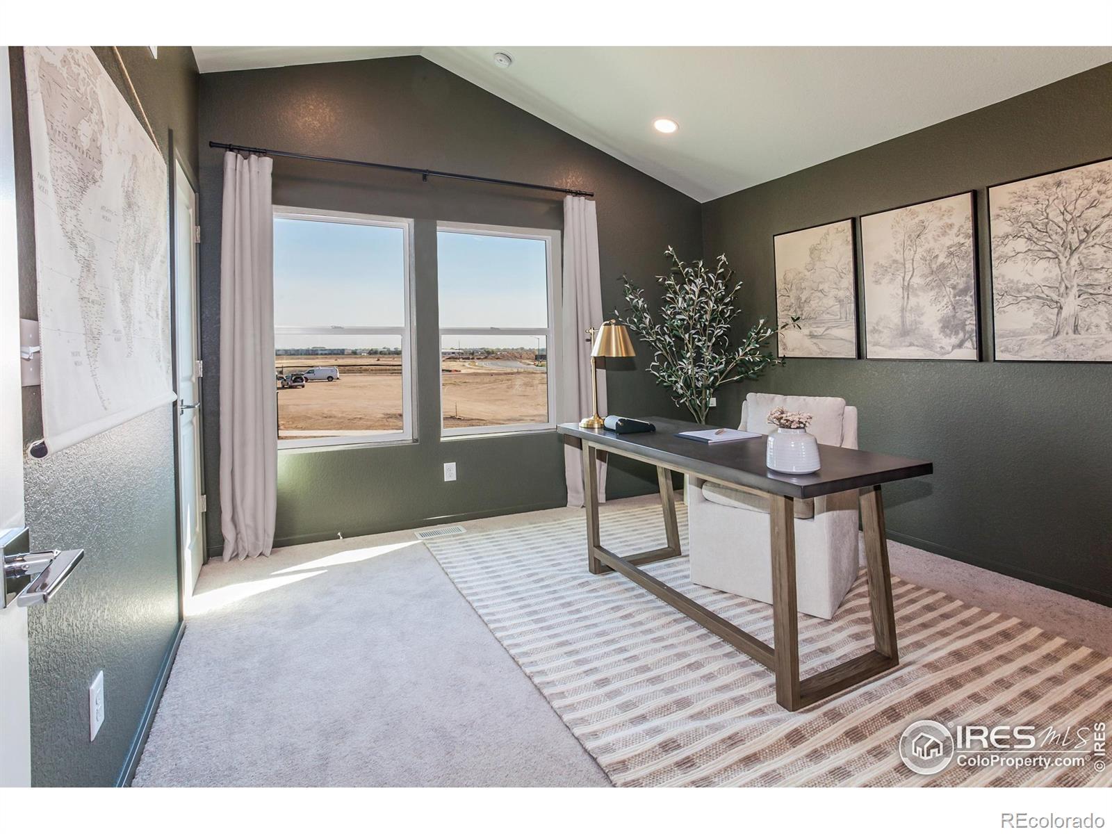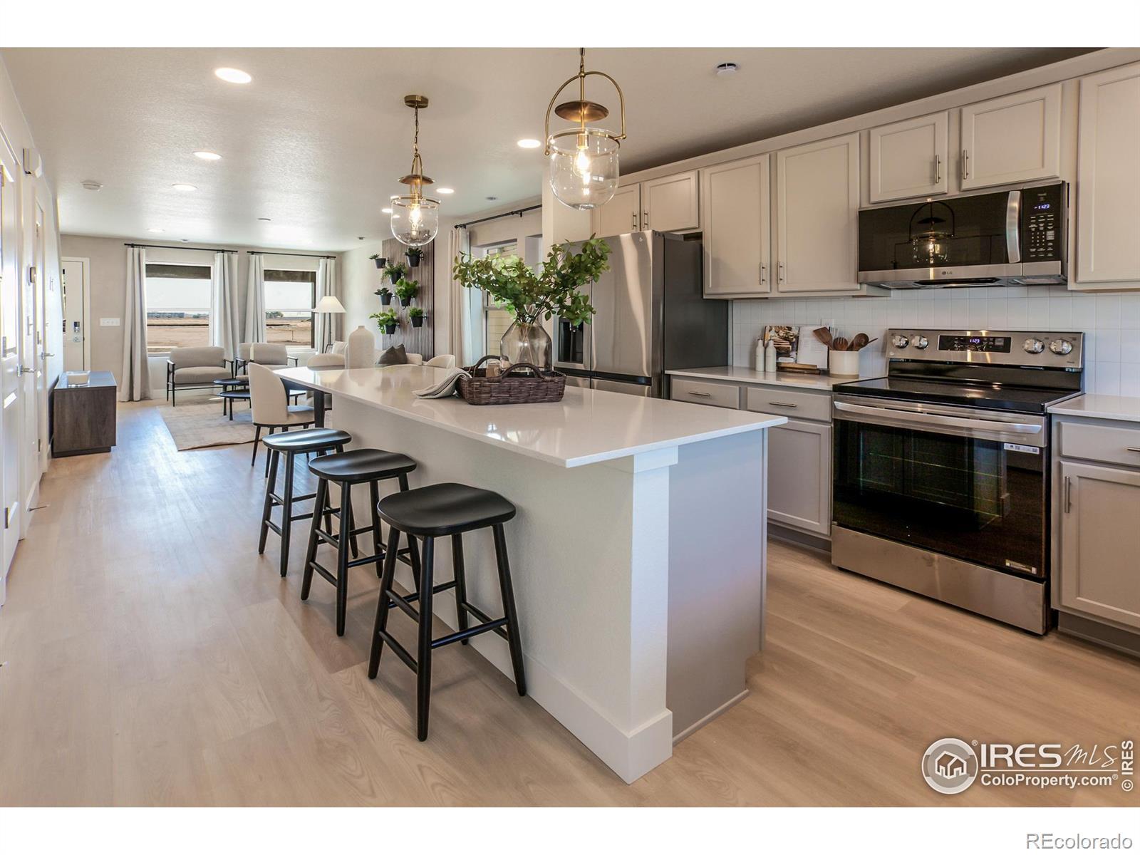 Craftsman elevation Magnolia plan by Hartford Homes in Prairie Song in Windsor. New construction cottage home. Open floor plan, two story. Kitchen w/ island. Powder bath on main level. Eucalyptus painted maple cabinetry. Dekton countertops. Vinyl plank flooring throughout main level and carpet in bedrooms. S.s. dishwasher, fridge, microwave, range. Second level has 2 bedrooms and laundry w/ Washer & dryer included. Central a/c. 2 car garage. Garage door opener and keypad. Passive radon system. Fenced yard w/ landscaping included (artificial turf in backyard). Future community plans for a pool, parks and trails. There is a $415 annual non-potable water fee to be paid to metro district. $125 monthly o & m fee for metro district. PHOTOS FROM PREVIOULSY BUILT HOME AND THEREFORE MAY DEPICT DIFFERENT FINISHES. ASK ABOUT CURRENT LENDER OR CASH BUYER INCENTIVES. Estimated Feb/March