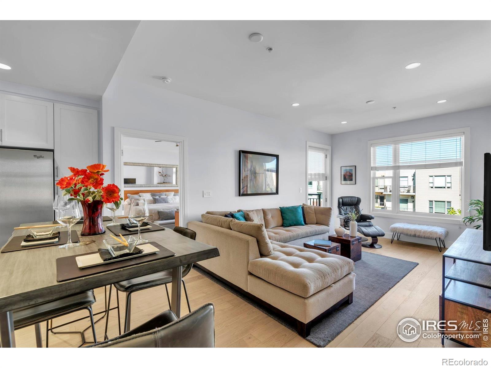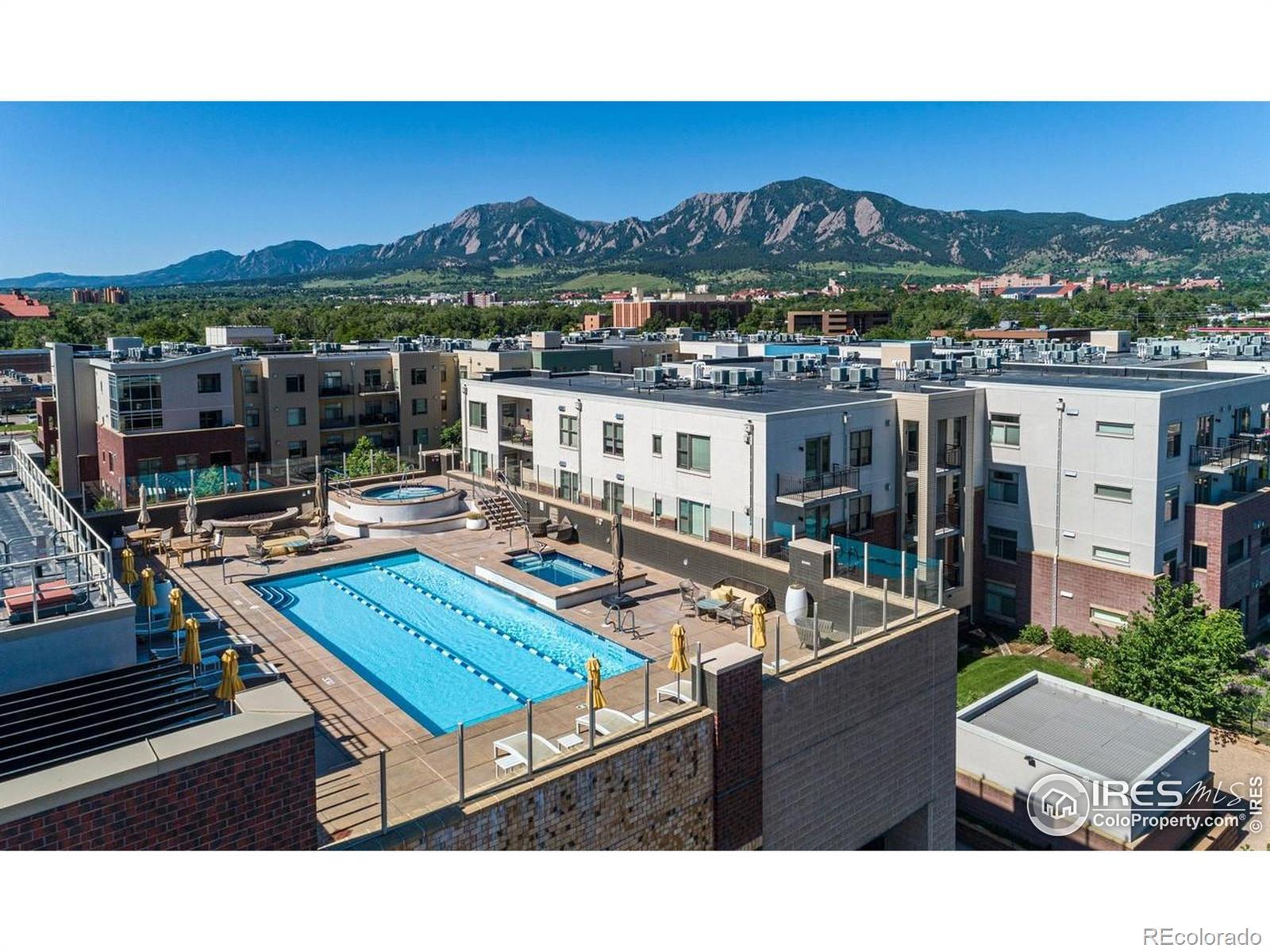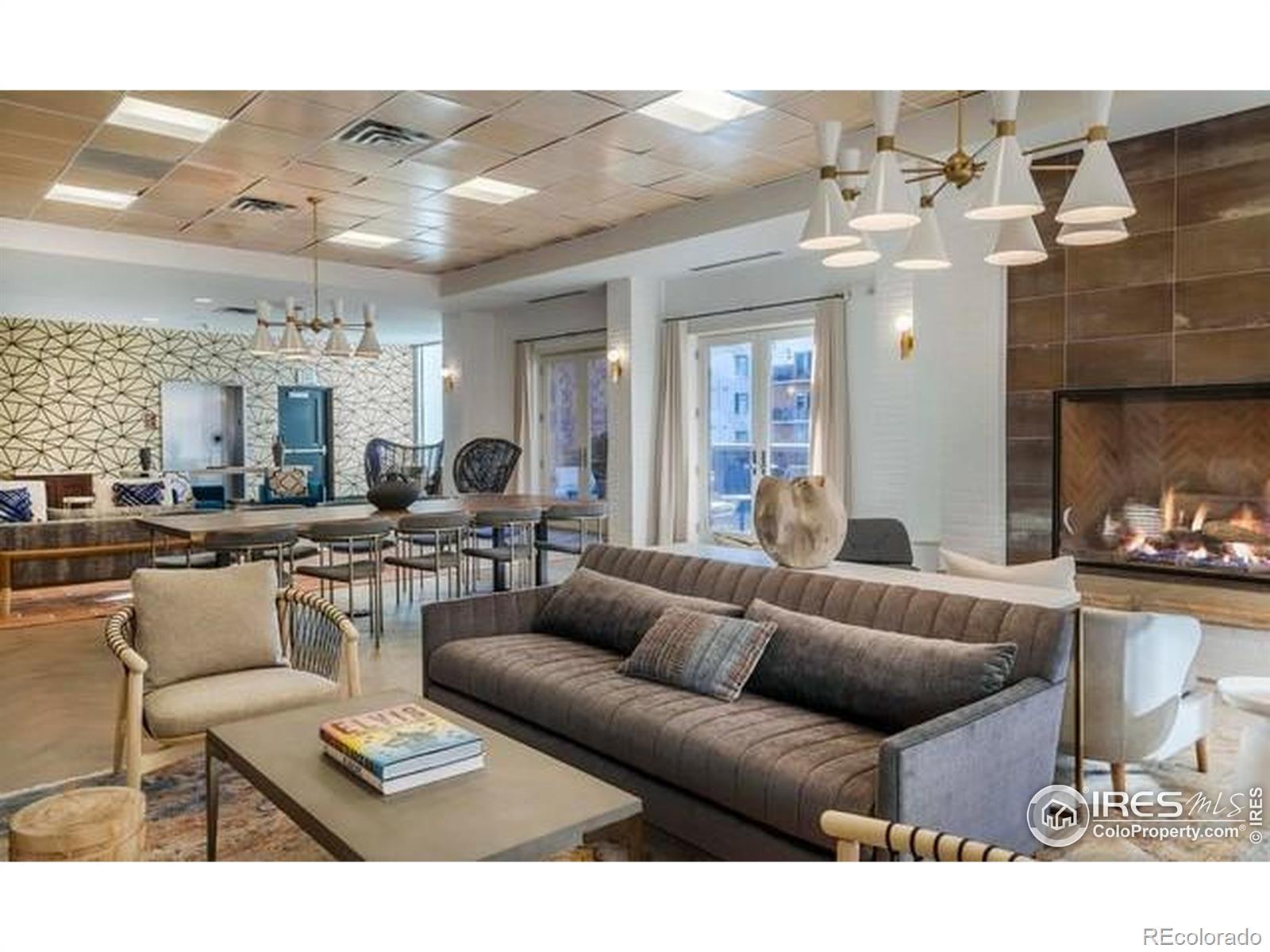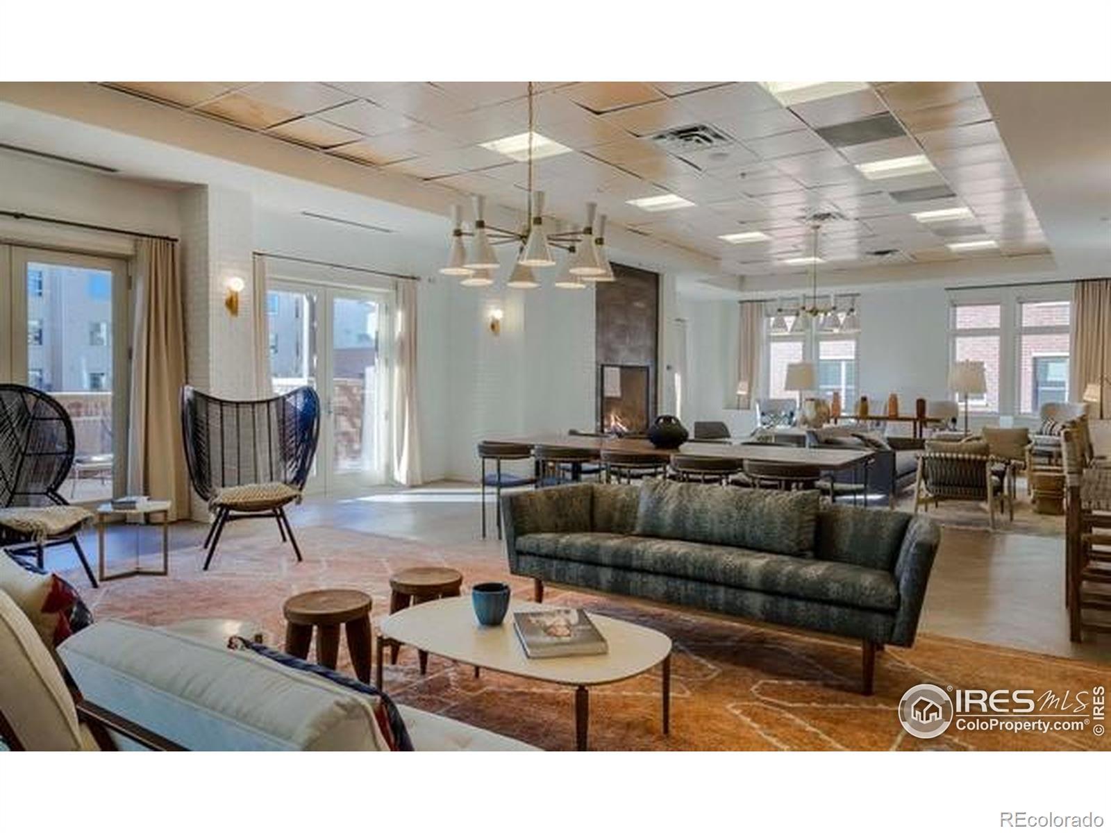 Situated above a Quiet Courtyard in the desirable Peloton Community, this 4th-Floor Condo offers 2 Bedrooms, 2 Bathrooms, and a Bright, Open Layout built for Modern Living. Large Windows bring in plenty of Natural Light, while Wood Floors and Quality Finishes add Comfort and Style.The Kitchen is equipped with Quartz Countertops, Stainless Steel Appliances, White Cabinetry, and a Custom Tile Backsplash-great for Everyday Use or Entertaining. The Living Room features a Gas Fireplace and access to a Private Balcony, perfect for Morning Coffee or Evening Sunsets. The Primary Suite includes an Ensuite Bathroom and generous Closet Space. The Second Bedroom works well for Guests, a Home Office, or a Fitness Area. The Oversized Walk-In Laundry Room provides extra Storage for Bikes, Luggage, or Seasonal Items. Two Reserved Garage Parking Spaces (574 & 575) add Convenience. The Peloton's Amenities are a highlight, with a Rooftop Deck, Year-Round Heated Pool and Hot Tubs, Mountain Views, a Private Movie Theater, and a full Fitness Center. Located in Central Boulder, you'll be close to 29th Street Mall, Google, Foothills Hospital, CU Boulder, and Local Favorites like Whole Foods, Trader Joe's, Basta, Dry Storage, and Naked Lunch. Storage Unit 127 (Largest Available Size) is available separately for $25,000. All Furniture is available for $12,000. HOA dues cover: Water, Sewer, Trash, Ext Maintenance, Ext Hazard Insurance, Covered Parking, Management, Common Utilities, High End Amenities.