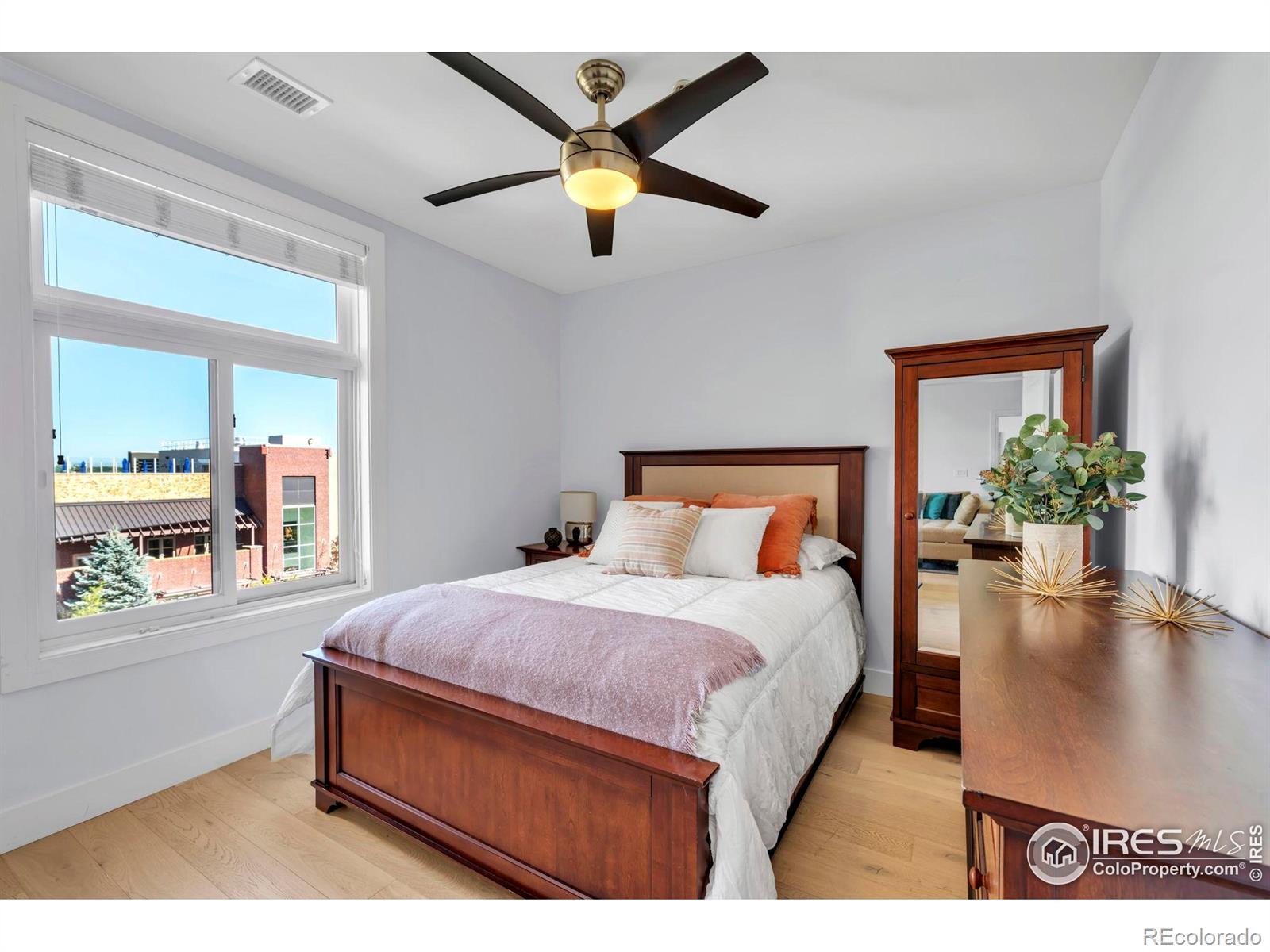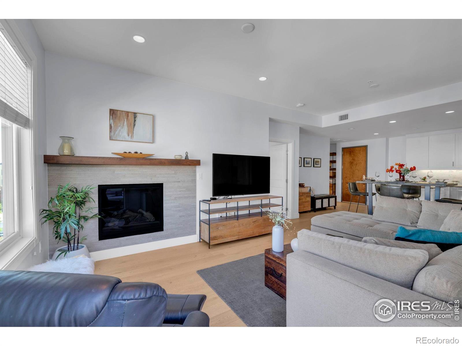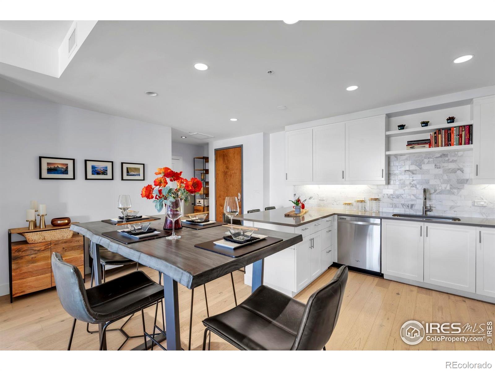 Situated above a Quiet Courtyard in the desirable Peloton Community, this 4th-Floor Condo offers 2 Bedrooms, 2 Bathrooms, and a Bright, Open Layout built for Modern Living. Large Windows bring in plenty of Natural Light, while Wood Floors and Quality Finishes add Comfort and Style.The Kitchen is equipped with Quartz Countertops, Stainless Steel Appliances, White Cabinetry, and a Custom Tile Backsplash-great for Everyday Use or Entertaining. The Living Room features a Gas Fireplace and access to a Private Balcony, perfect for Morning Coffee or Evening Sunsets. The Primary Suite includes an Ensuite Bathroom and generous Closet Space. The Second Bedroom works well for Guests, a Home Office, or a Fitness Area. The Oversized Walk-In Laundry Room provides extra Storage for Bikes, Luggage, or Seasonal Items. Two Reserved Garage Parking Spaces (574 & 575) add Convenience. The Peloton's Amenities are a highlight, with a Rooftop Deck, Year-Round Heated Pool and Hot Tubs, Mountain Views, a Private Movie Theater, and a full Fitness Center. Located in Central Boulder, you'll be close to 29th Street Mall, Google, Foothills Hospital, CU Boulder, and Local Favorites like Whole Foods, Trader Joe's, Basta, Dry Storage, and Naked Lunch. Storage Unit 127 (Largest Available Size) is available separately for $25,000. All Furniture is available for $12,000. HOA dues cover: Water, Sewer, Trash, Ext Maintenance, Ext Hazard Insurance, Covered Parking, Management, Common Utilities, High End Amenities.