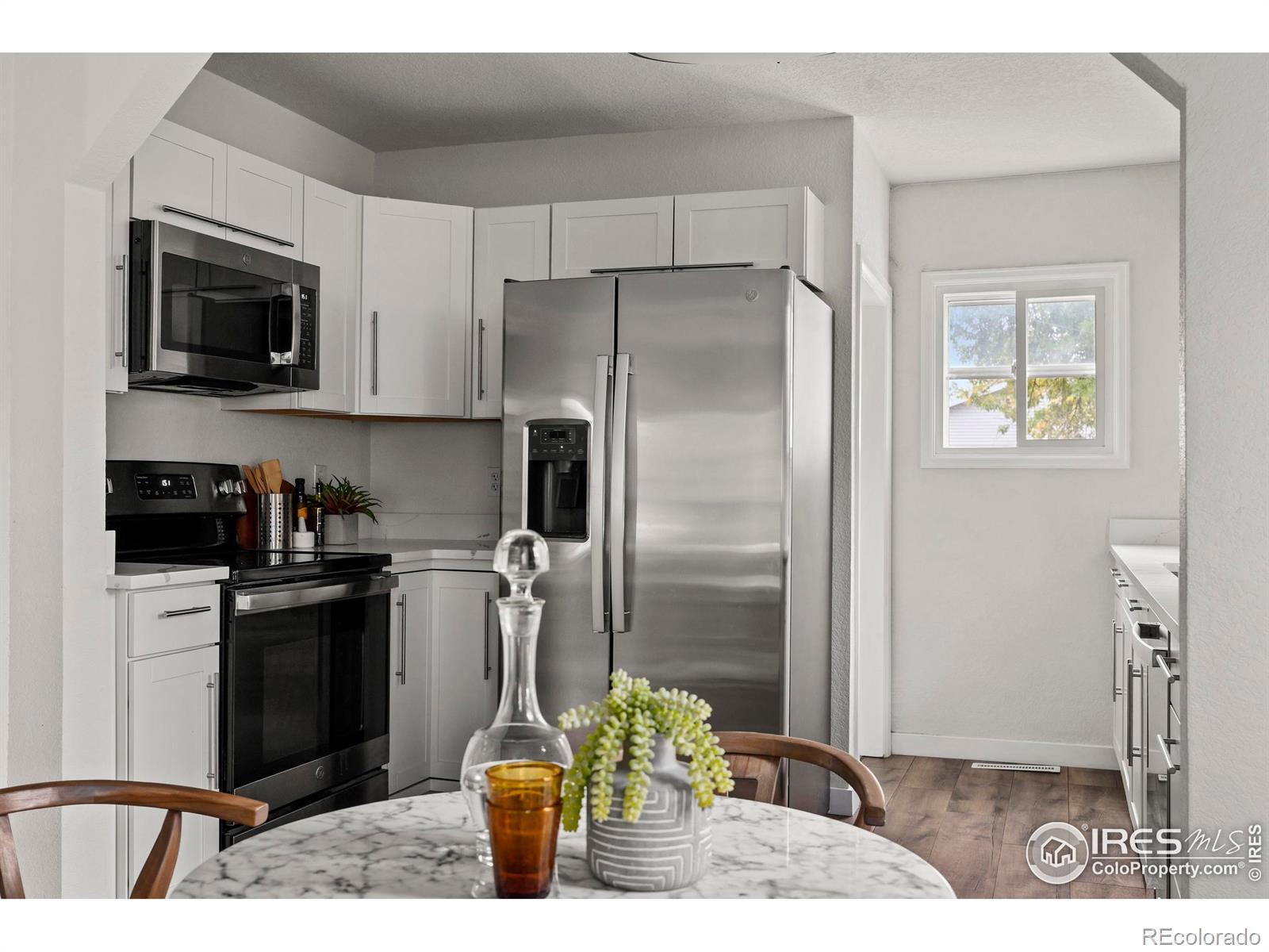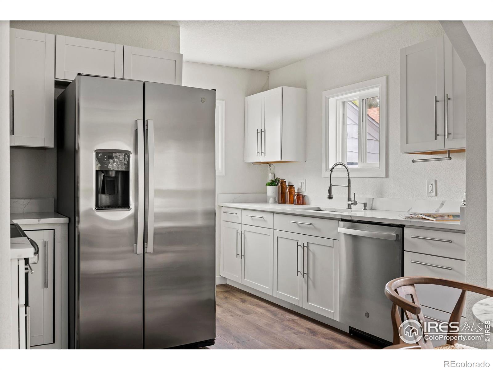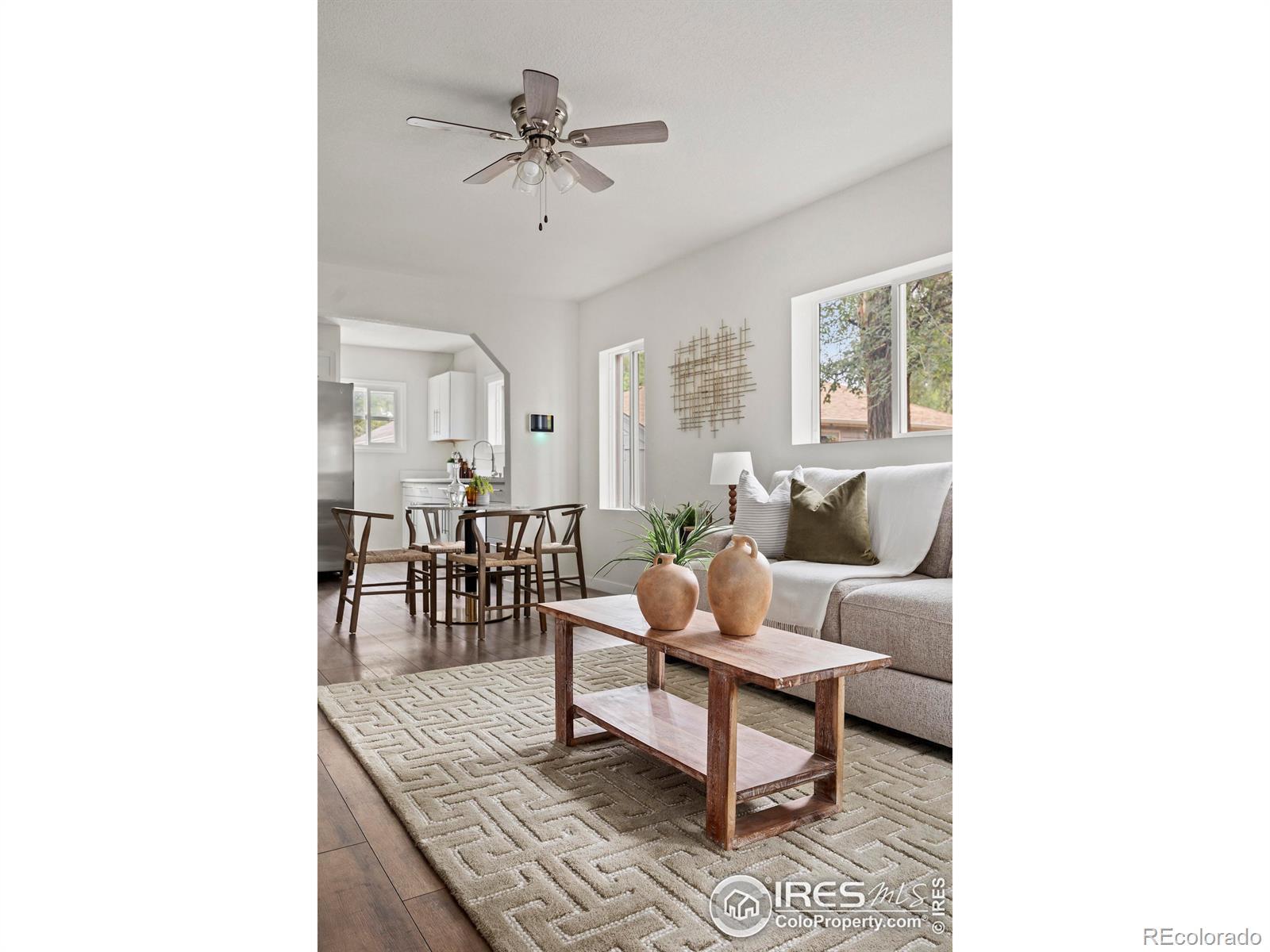Step into modern elegance with this fully renovated bungalow ranch home at 1550 North Jefferson Avenue, Loveland, CO. With 1,256 square feet of thoughtfully designed space, this residence seamlessly combines classic charm with contemporary amenities. Inside, you'll find three spacious bedrooms and two pristine bathrooms, all enhanced by luxury vinyl plank flooring that flows throughout the home. The brand-new kitchen is a chef's dream, featuring stunning quartz countertops, sleek stainless steel appliances, and stylish new cabinetry. The living areas are illuminated by new light fixtures, offering a warm, inviting ambiance.Comfort is paramount, with a new water heater and furnace ensuring year-round coziness via forced air heating. The dedicated laundry room, equipped with a new washer and dryer, adds to the home's convenience.The outdoor space does not disappoint. A fully fenced backyard, with a recently stained 6-foot wood privacy fence, provides a perfect retreat for relaxation or entertaining. The property includes a 1-car detached garage and two additional off-street parking spaces, offering ample room for vehicles. Located on a generous 7,322 square foot lot, this home presents a unique opportunity to enjoy modern living within a beautifully updated historic structure. Enjoy the common outdoor space and a lifestyle defined by both comfort and sophistication.