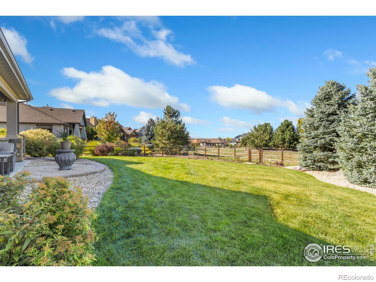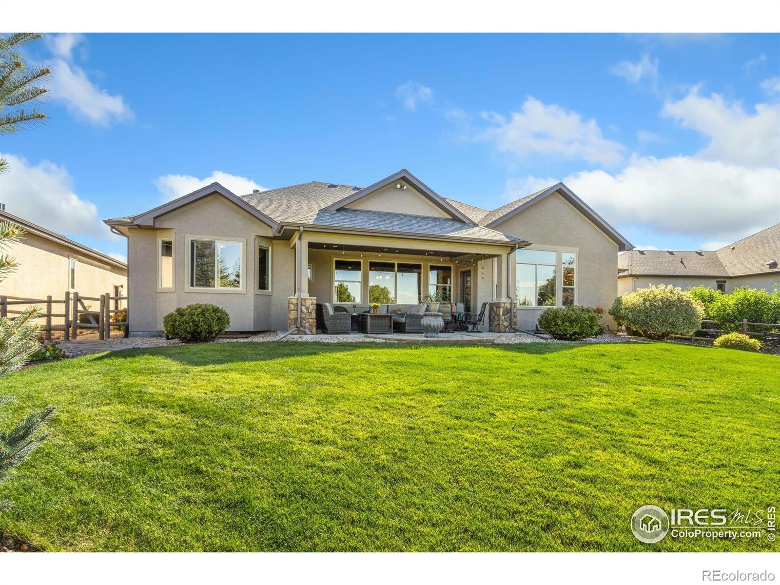 This impressive home in Highpointe is a showstopper packed with thoughtful upgrades, high-end features, and modern comforts for a truly move-in-ready experience. Sitting on more than a quarter-acre, this property welcomes you with a professionally landscaped yard that backs to open space and wonderful mountain views. Inside, you'll find a beautifully designed open floorplan with brand new LVP flooring and large windows that bathe every corner in natural light. The living area features vaulted ceilings and a stunning stacked stone electric fireplace, perfectly complemented by a mounted 65-inch TV and Sonos soundbar that stay with the home for a complete entertainment setup. The spacious kitchen showcases new and upgraded cabinets enhanced by under-cabinet lighting, stainless steel appliances including a new LG refrigerator, a kitchen island, and extensive prep space and storage. The split-bedroom layout on the main level offers ideal privacy, with the primary suite featuring tray ceilings, a cozy double-sided fireplace that connects to the luxurious 5-piece ensuite bath, a walk-in closet, and private access to the covered patio. A dedicated office by the entrance provides the ideal space for remote work or study. The finished basement is the ULTIMATE entertainment hub, complete with a spacious recreation area that includes a wet bar with a kegerator and a dry bar, plus two large guest suites currently used as hobby rooms. Premium-grade furnaces recently installed and a Owned solar system ensures energy efficiency and comfort year-round. The oversized 3-car garage is well-equipped with tool pegboards and a workbench, making it a perfect space for projects and storage as well. Just a few blocks away, you'll find the community amenities, including an outdoor pool and clubhouse. Excellent biking and trekking trails near by. Minutes from downtown, major highways, shopping, and dining, this home offers both comfort and luxury in one of Windsor's premier neighborhoods.