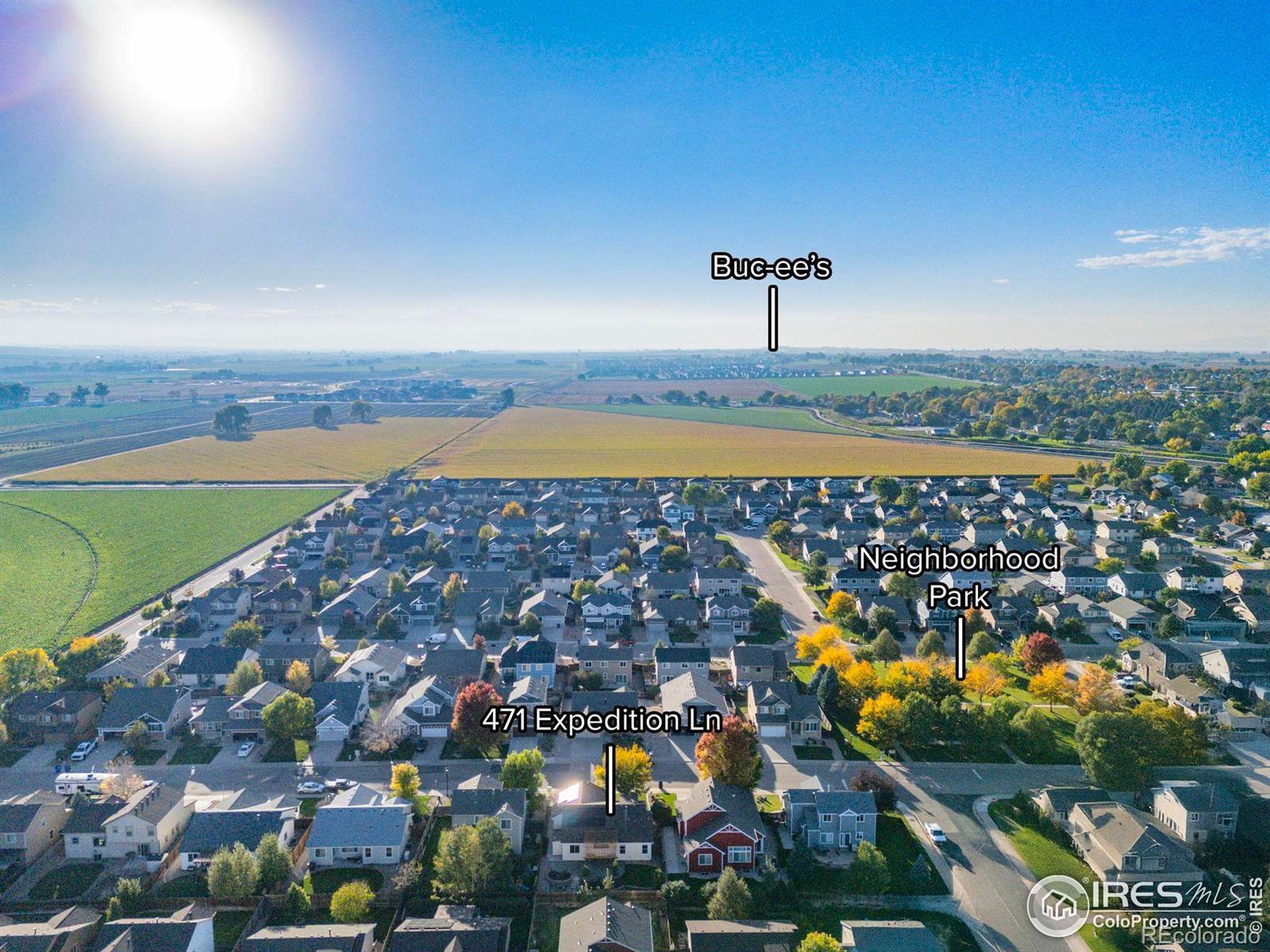 Welcome to 471 Expedition Lane, a beautifully maintained ranch-style home in the heart of Johnstown. Offering an inviting open floor plan, this home features a spacious living room, dining area, and updated kitchen with granite countertops, abundant cabinetry, and brand-new appliances including a refrigerator, dishwasher, microwave, and double range. The main level includes a comfortable primary suite with a walk-in closet and five-piece bath, a secondary bedroom and full bath, and the convenience of main-floor laundry. The nearly finished basement expands the living space with an additional bedroom and walk-in closet, a large great room, and a fantastic versatile coffee or bar nook perfect for entertaining or relaxing! A storage area also provides flexibility and could easily be finished into a fourth bedroom if desired. This property has seen extensive upgrades between 2024 and 2025, including new interior and exterior paint, new carpet and window coverings throughout, updated kitchen lighting, dining room chandelier, and new counters and cupboards with slide-outs. Additional updates include a new dishwasher and added cabinetry, insta-hot water heater, whole-house humidifier, and new shower doors in the hall bath. Outdoor living is just as impressive, featuring a freshly painted pergola-covered patio, BBQ pad, new backyard landscaping with a retaining wall, irrigation system, concrete edging, sun shade, and a 5'x7' shed on concrete. The oversized two-car garage offers a builder-added bump-out, along with a new garage heater for comfort year-round. Permanent trim lighting, a new paid off solar system, and a welcoming front porch with new railing add modern efficiency and charm. With a low HOA, no metro district, and a prime location near historic downtown Johnstown and local shopping, this home combines thoughtful updates, modern comfort, and community appeal. Plus, it's listed below the recent $540,000 appraisal-making it an exceptional opportunity.