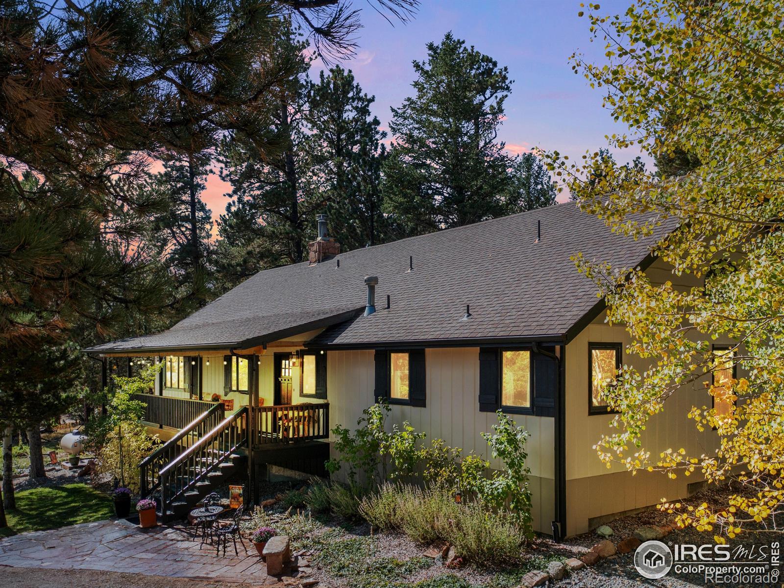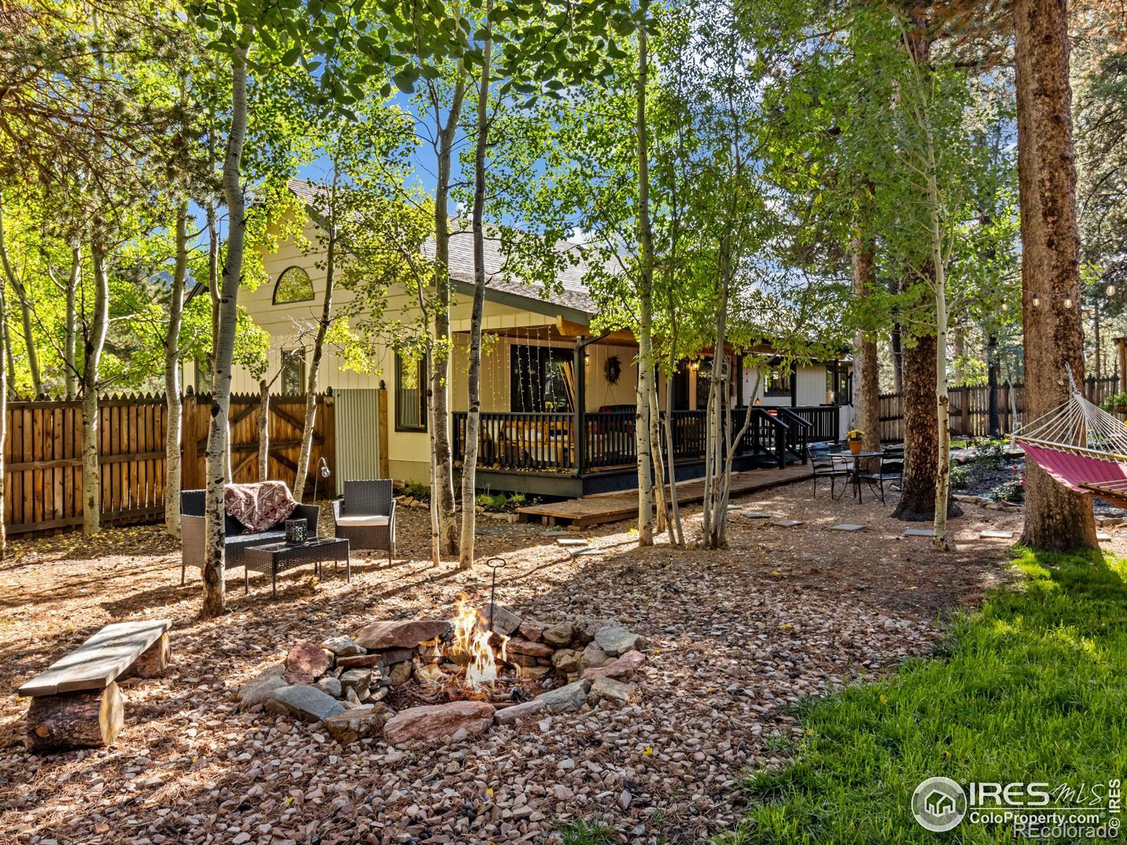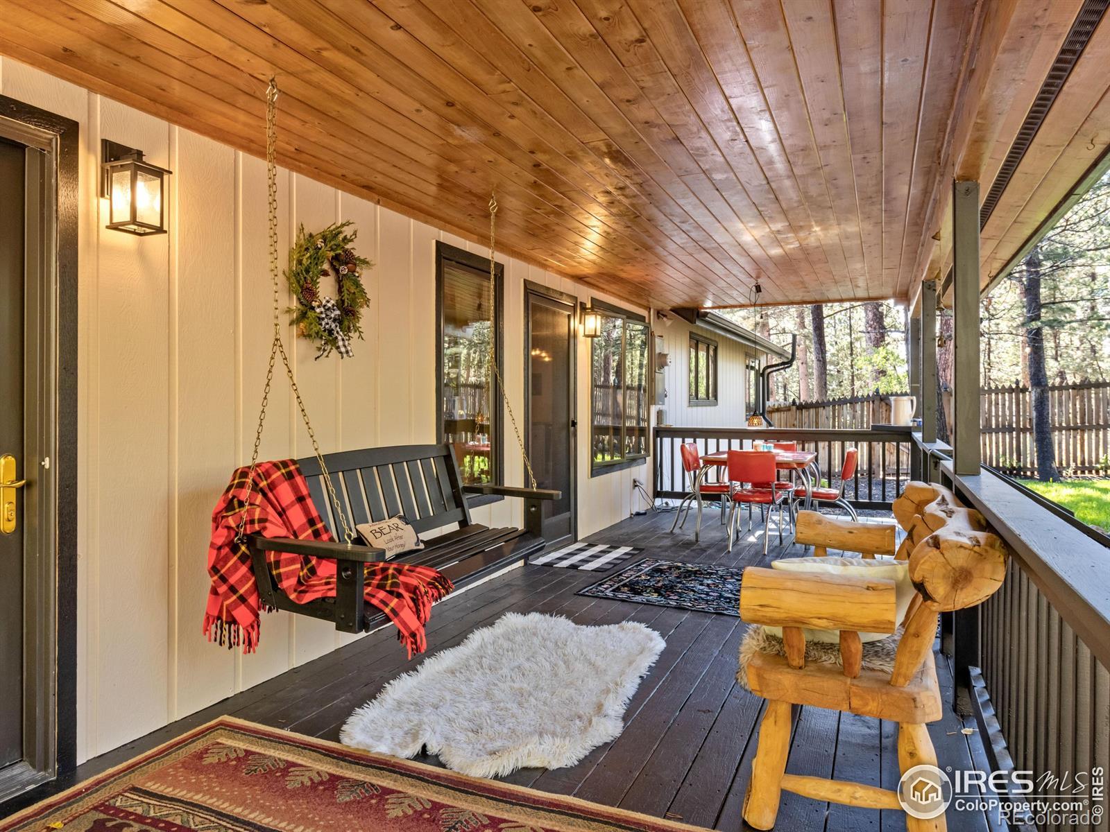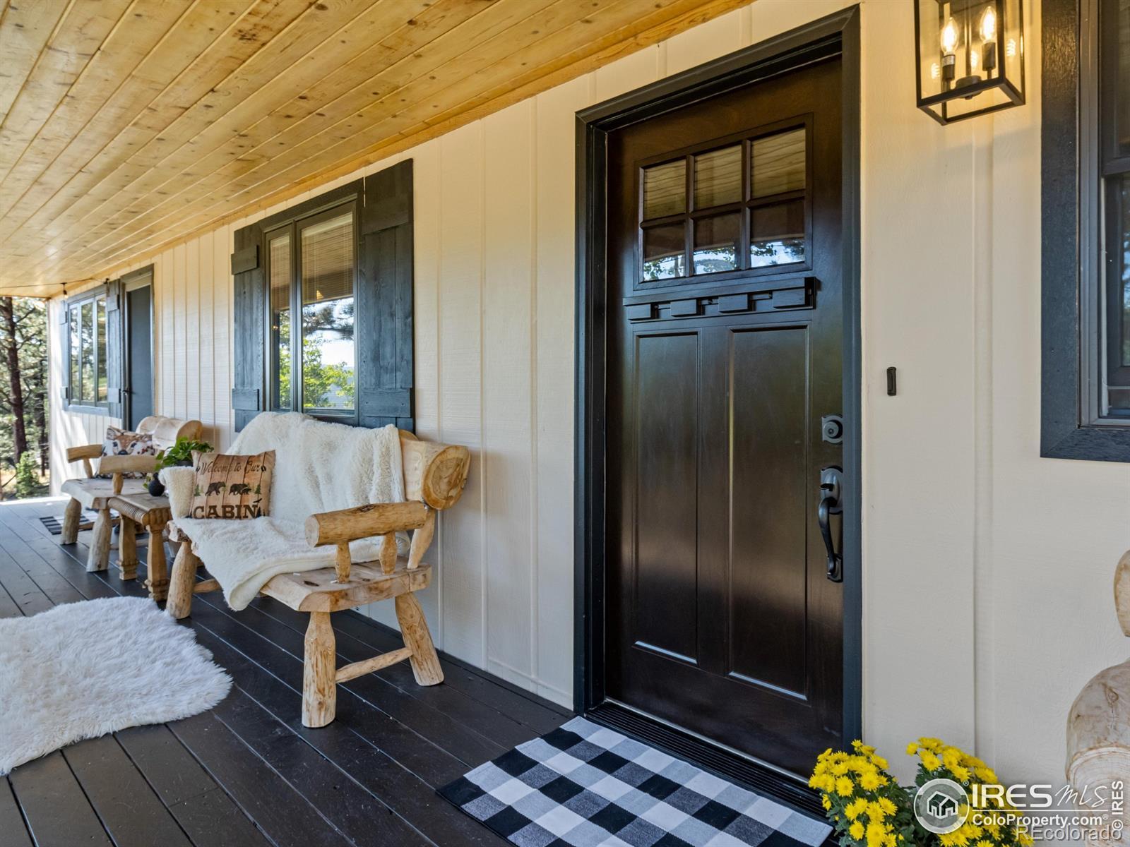 Once in a great while a magical sanctuary comes on the market...this is one of those special places. Located just south of Estes Park in the Tahosa Valley, you'll find this level 3.25/acre property that borders ROCKY MOUNTAIN NATIONAL PARK and allows for that ideal mountain lifestyle you seek. A stunning home welcomes you with a classic front porch and 2334sf of high-end finish inside, with generous rooms that make for comfortable everyday living or a houseful of friends & family. Newly upgraded kitchen of granite, quartz, stainless & maple, huge island plus coffee/wine bar and a double pantry invites wonderful gatherings in the dining area with seating for 10, then after-dinner lounging on one of the covered decks will end the day beautifully. Main level primary suite with luxurious bath, plus 2 additional bedrooms & baths for guests. Versatile loft/home office with balcony that overlooks the forest. Out back, you'll find a 6' fenced yard with green grass, dozens of roses/lilacs/berries and aspen that create the perfect places to rest and play; fantastic covered BBQ, rock firepit plus a BONUS bunkhouse. Detached 2-bay garage plus newly built 30x40 barn for RV & toy storage, animals (20x12 loafing shed adjacent too) or just a great creative/shop space. Dual-gated circular driveway and easy access year-round for ideal full-time living or perhaps an investment rental with proper permitting. Pending verification, there is also an Assumable VA loan at 2.85% available to any buyer! Offered fully furnished and ready to enjoy on day 1, let's explore this special place in The Rockies...