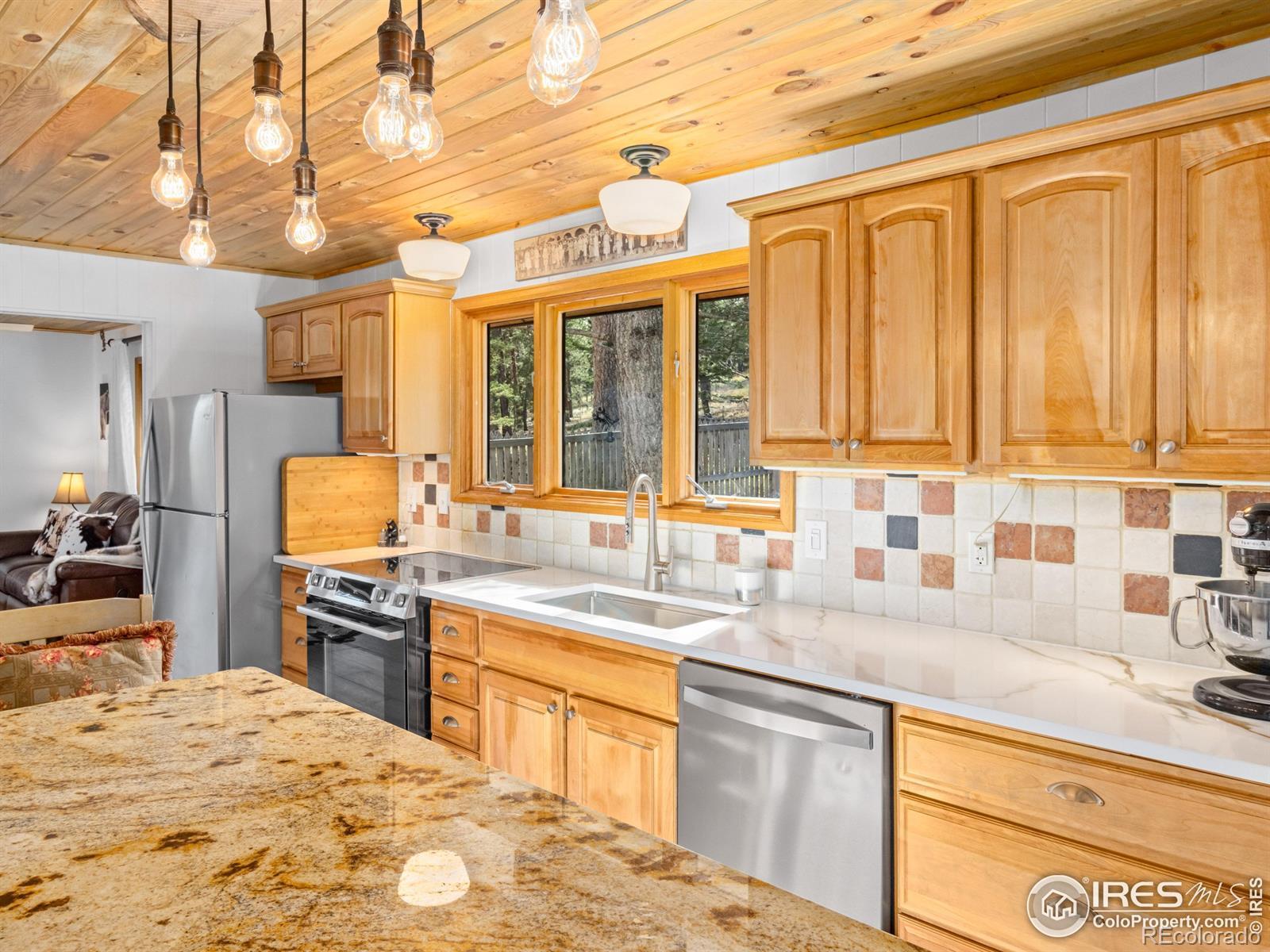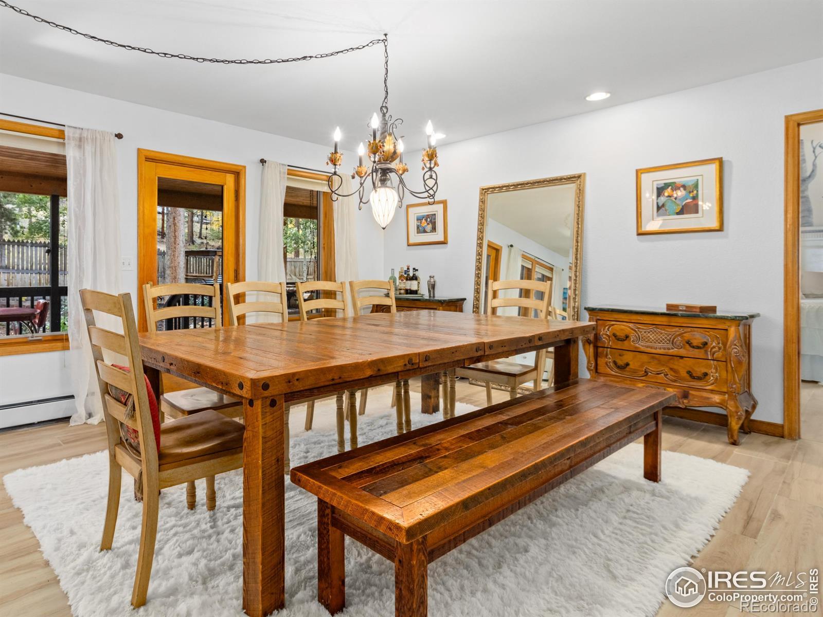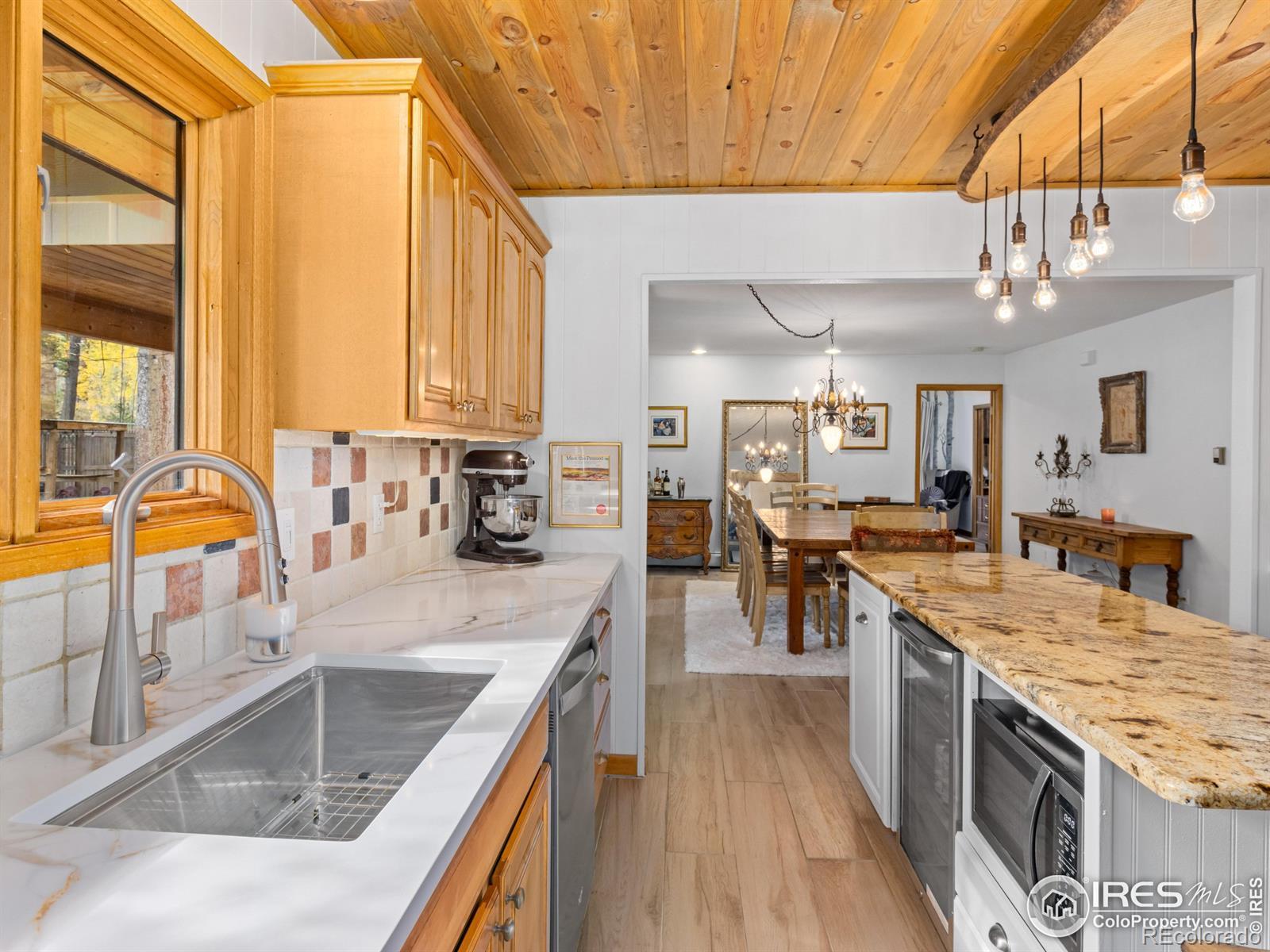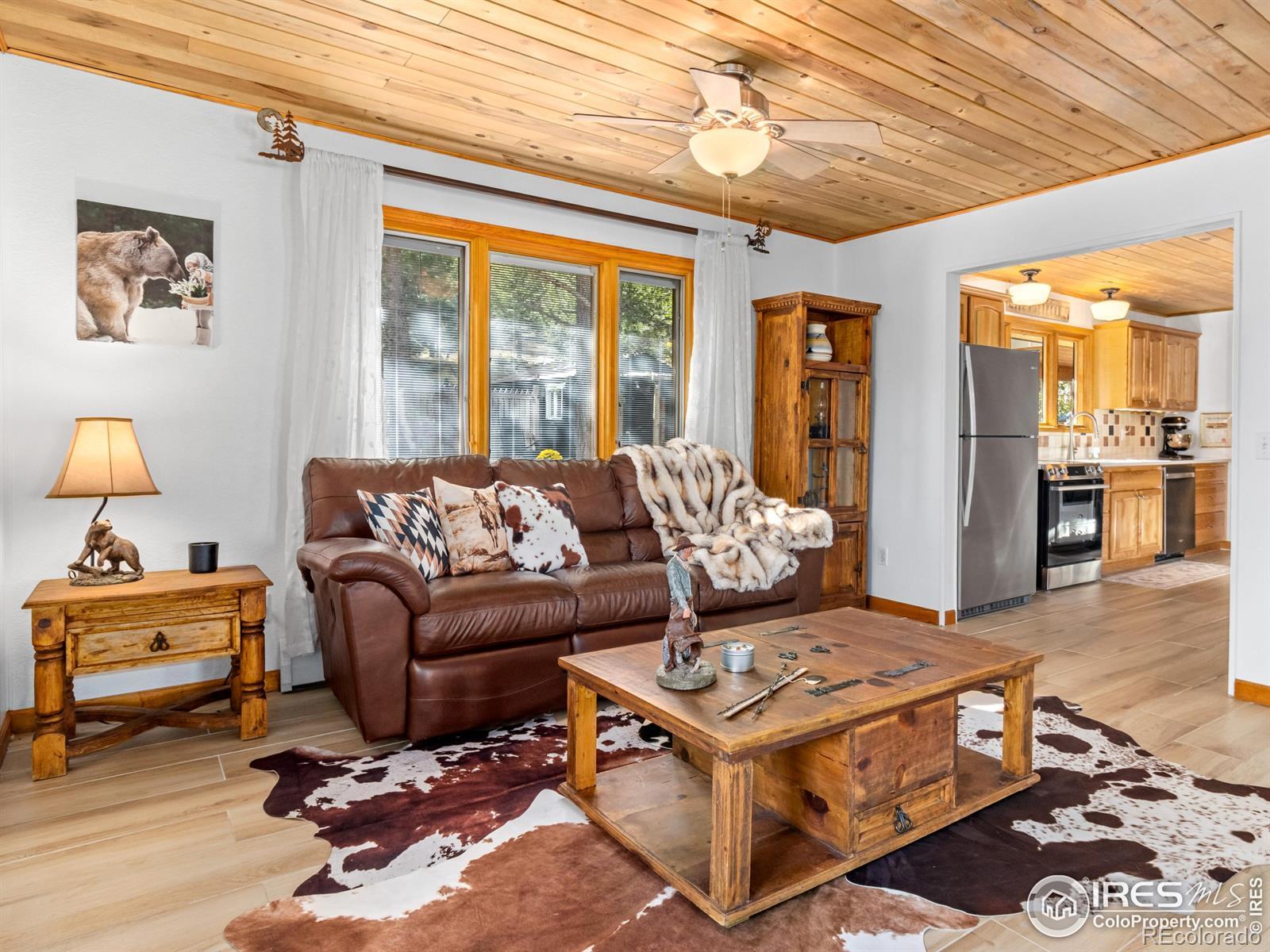 Once in a great while a magical sanctuary comes on the market...this is one of those special places. Located just south of Estes Park in the Tahosa Valley, you'll find this level 3.25/acre property that borders ROCKY MOUNTAIN NATIONAL PARK and allows for that ideal mountain lifestyle you seek. A stunning home welcomes you with a classic front porch and 2334sf of high-end finish inside, with generous rooms that make for comfortable everyday living or a houseful of friends & family. Newly upgraded kitchen of granite, quartz, stainless & maple, huge island plus coffee/wine bar and a double pantry invites wonderful gatherings in the dining area with seating for 10, then after-dinner lounging on one of the covered decks will end the day beautifully. Main level primary suite with luxurious bath, plus 2 additional bedrooms & baths for guests. Versatile loft/home office with balcony that overlooks the forest. Out back, you'll find a 6' fenced yard with green grass, dozens of roses/lilacs/berries and aspen that create the perfect places to rest and play; fantastic covered BBQ, rock firepit plus a BONUS bunkhouse. Detached 2-bay garage plus newly built 30x40 barn for RV & toy storage, animals (20x12 loafing shed adjacent too) or just a great creative/shop space. Dual-gated circular driveway and easy access year-round for ideal full-time living or perhaps an investment rental with proper permitting. Pending verification, there is also an Assumable VA loan at 2.85% available to any buyer! Offered fully furnished and ready to enjoy on day 1, let's explore this special place in The Rockies...