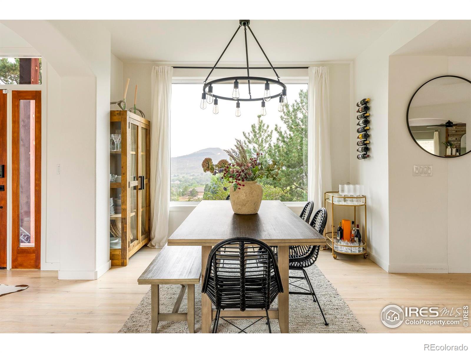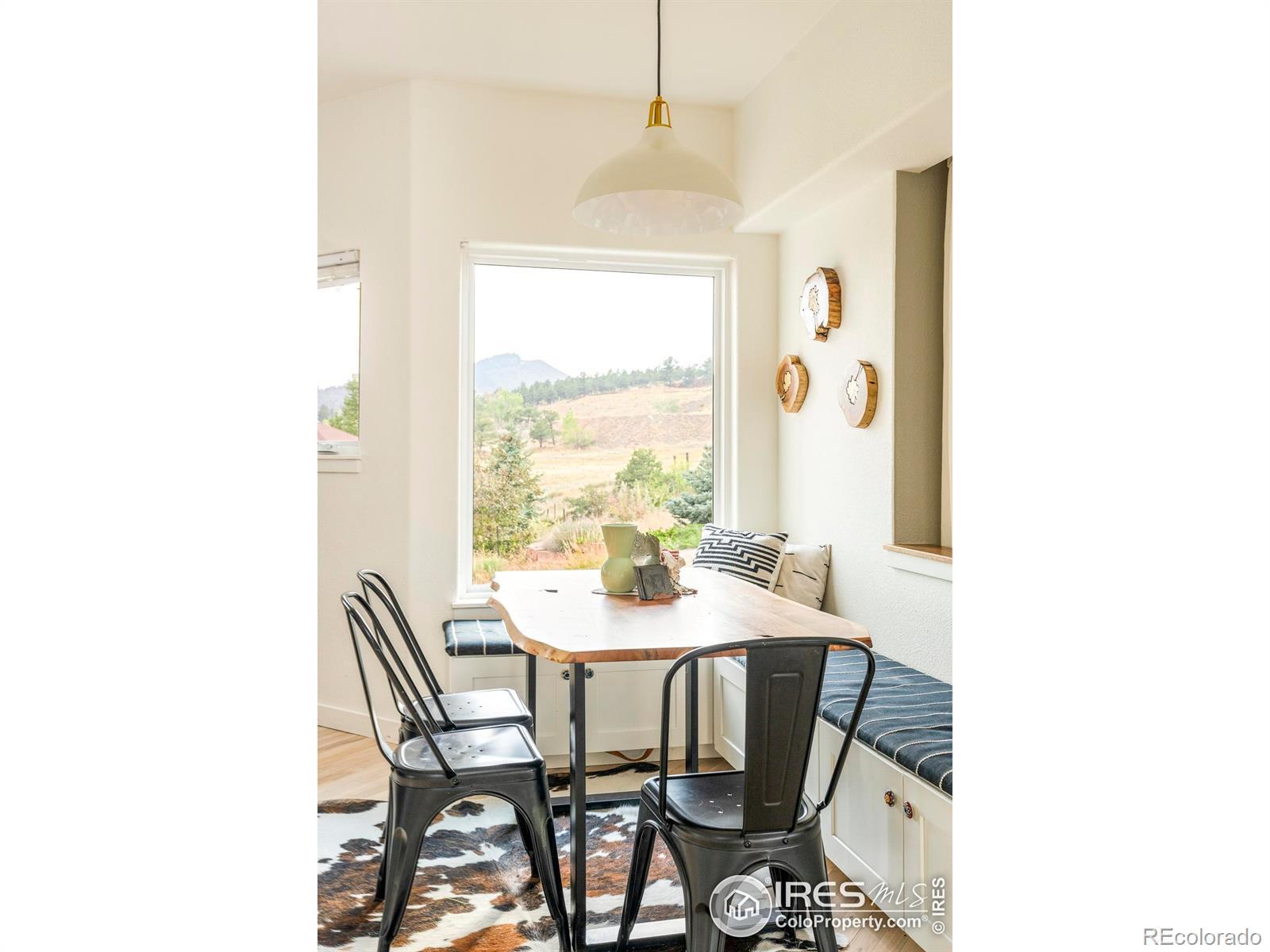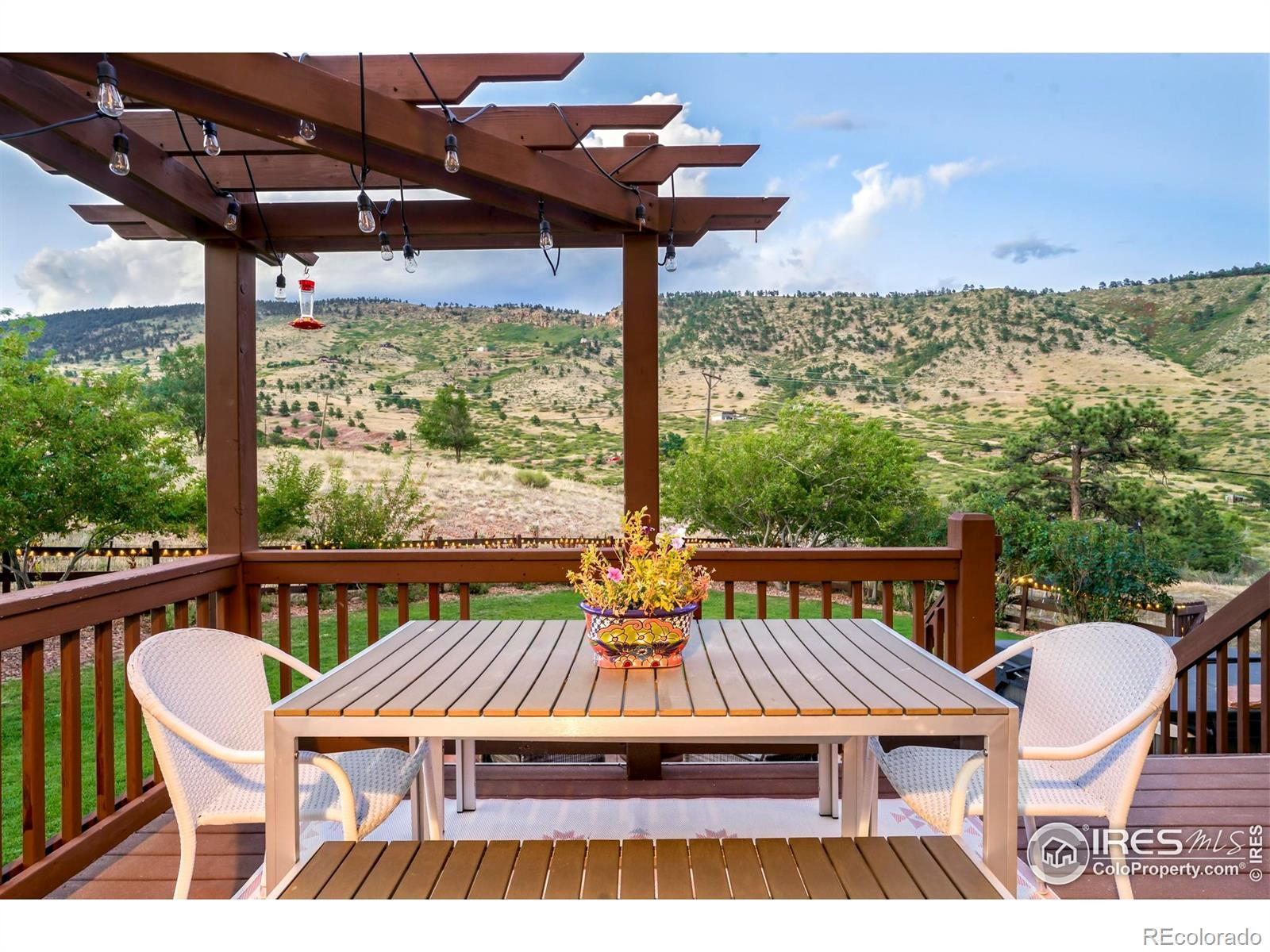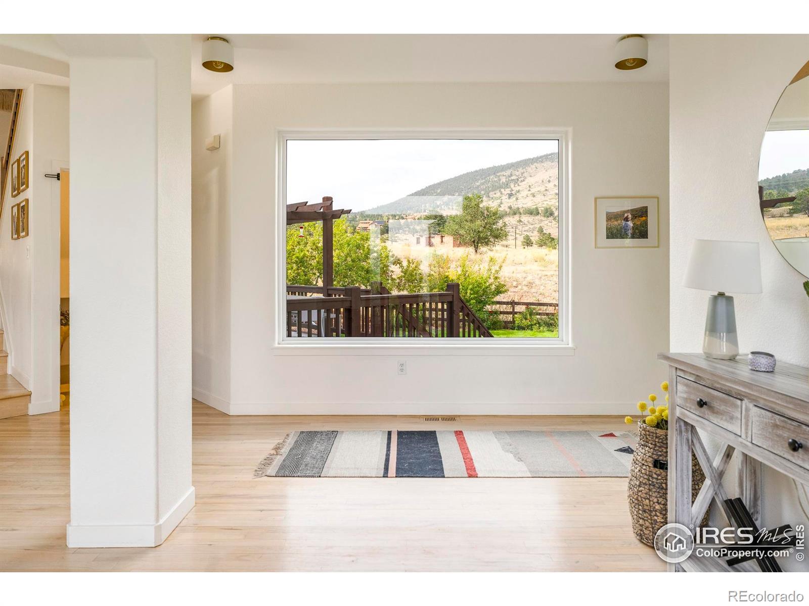 A Crown Jewel of Steamboat Valley, this carefully crafted estate is coming to market after extensive designer driven renovations, making it a truly unique + rare offering for the Lyons market. Unparalleled views, luxe amenities and unmistakable character come together to reset the standard for Colorado living, all situated on nearly a 1/2 acre lot. A bright, open-concept flow characterizes an entertainer's layout where endless panoramas are captured through wide expanses of strategically placed windows. Host with ease in a kitchen built for home chefs with a double oven, island with seating and a built-in corner dining nook. Surrounded by windows on three sides and anchored by a fireplace, the living room provides a cozy retreat with easy access to the deck. The fenced-in backyard is a private oasis, bordered by pasture land where the only neighbor in sight may be the occasional visiting horse, or wildlife passing through. Among the home's well-appointed bedrooms is a primary suite tucked beneath vaulted ceilings and equipped with a private deck. The en-suite bathroom showcases spa-like rejuvenation with a soaking tub and spacious walk-in closet. Additionally, two upper-level bedrooms offer the convenience of en-suite bathrooms, and welcomed separation from the primary suite. Accessible via staircase or a custom slide, the lower level affords additional space to entertain with a mini bar, a guest bedroom, office, and designer bathroom. The versatile walk-out basement is also a turn-key opportunity for multigenerational living, or AirBnB/rentable space (buyer to do their own diligence) with it's own private entrance. This home offers all of the conveniences of close proximity to Lyons (even via golf cart) while excelling in the wonder of Rocky Mountain living through expansive mountain + valley views, indoor/outdoor living, and a carefully curated interior.