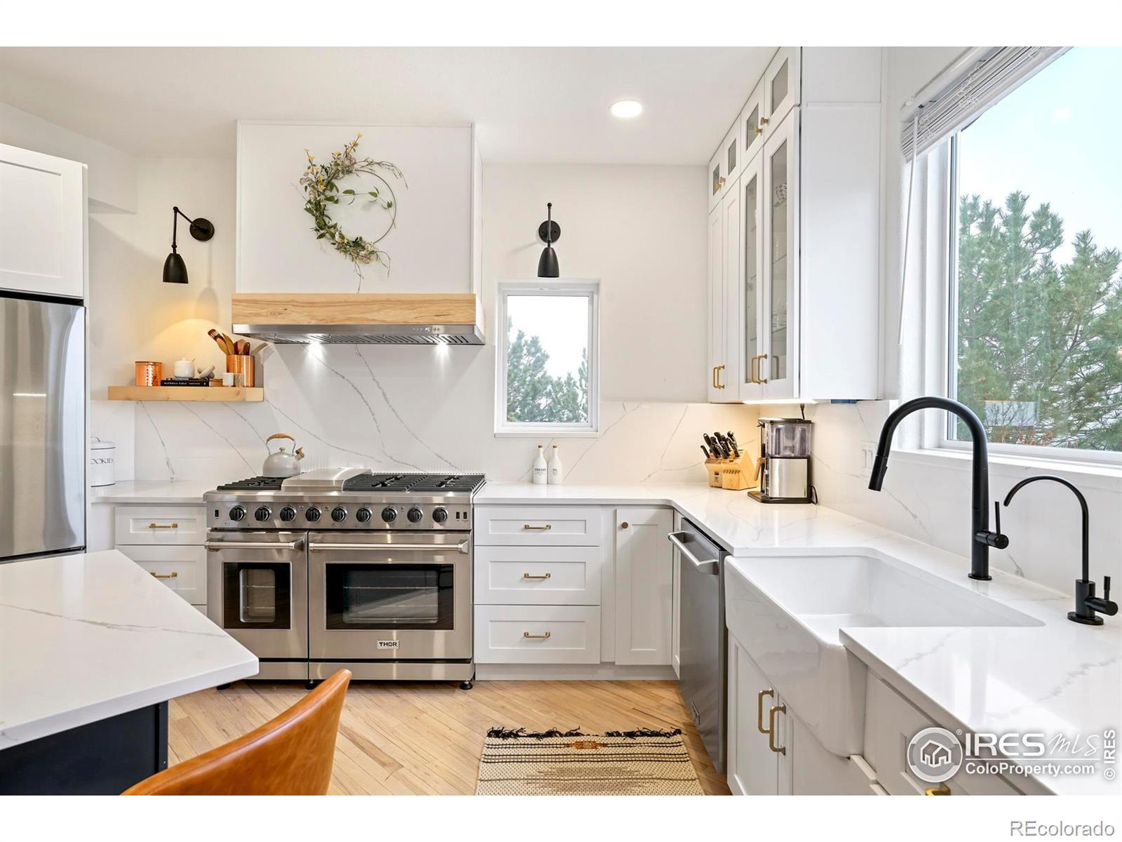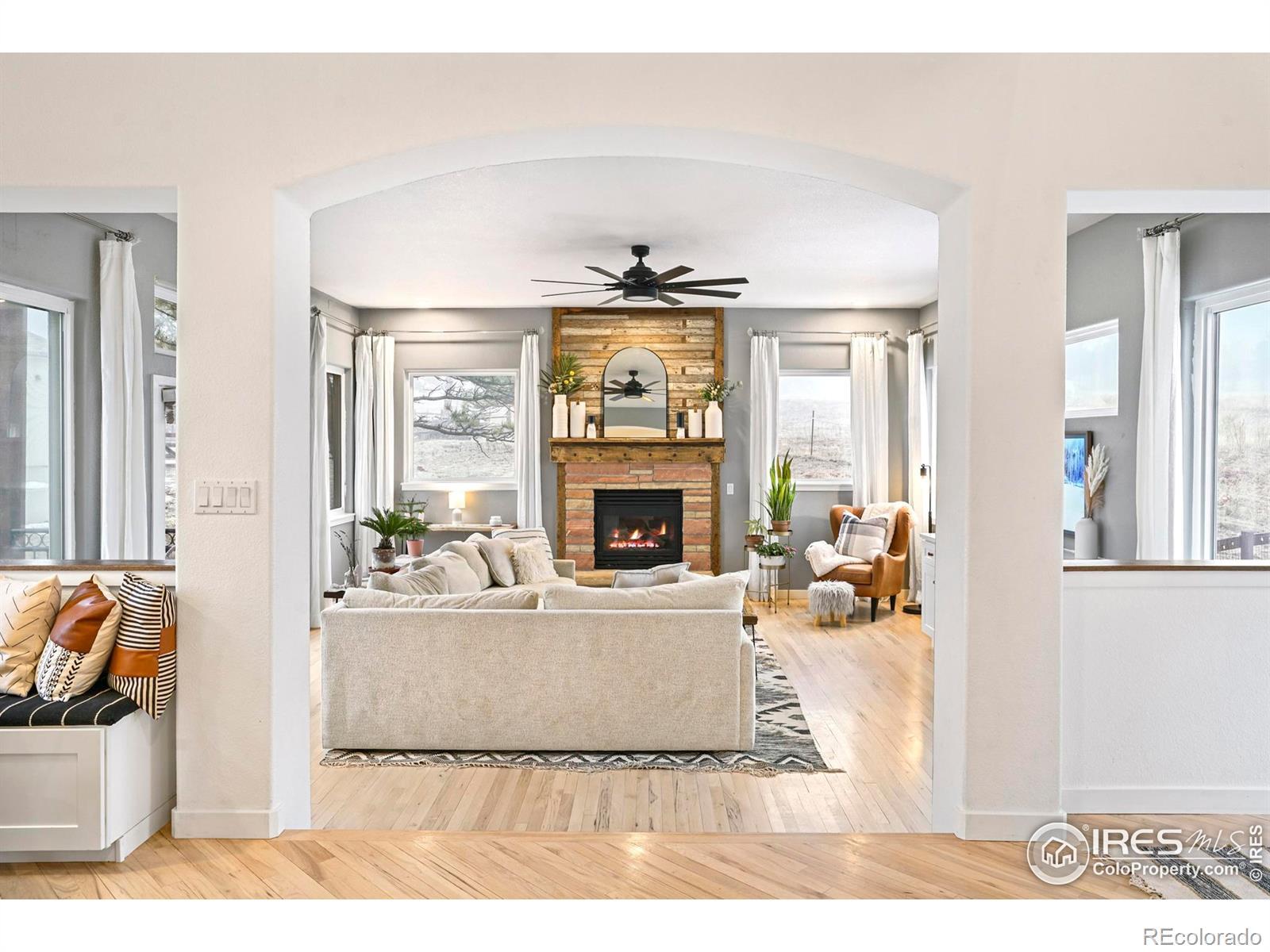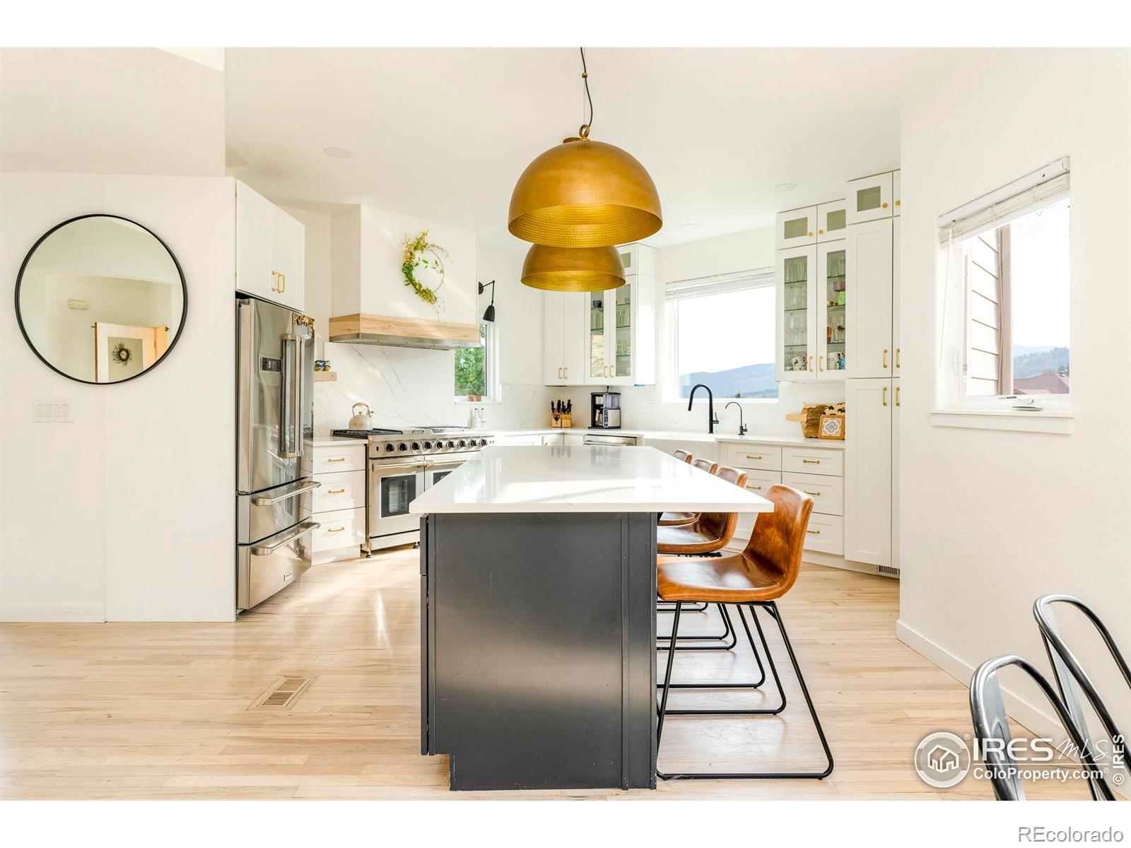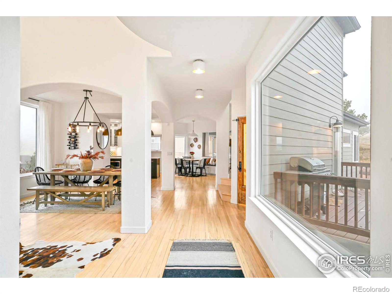 A Crown Jewel of Steamboat Valley, this carefully crafted estate is coming to market after extensive designer driven renovations, making it a truly unique + rare offering for the Lyons market. Unparalleled views, luxe amenities and unmistakable character come together to reset the standard for Colorado living, all situated on nearly a 1/2 acre lot. A bright, open-concept flow characterizes an entertainer's layout where endless panoramas are captured through wide expanses of strategically placed windows. Host with ease in a kitchen built for home chefs with a double oven, island with seating and a built-in corner dining nook. Surrounded by windows on three sides and anchored by a fireplace, the living room provides a cozy retreat with easy access to the deck. The fenced-in backyard is a private oasis, bordered by pasture land where the only neighbor in sight may be the occasional visiting horse, or wildlife passing through. Among the home's well-appointed bedrooms is a primary suite tucked beneath vaulted ceilings and equipped with a private deck. The en-suite bathroom showcases spa-like rejuvenation with a soaking tub and spacious walk-in closet. Additionally, two upper-level bedrooms offer the convenience of en-suite bathrooms, and welcomed separation from the primary suite. Accessible via staircase or a custom slide, the lower level affords additional space to entertain with a mini bar, a guest bedroom, office, and designer bathroom. The versatile walk-out basement is also a turn-key opportunity for multigenerational living, or AirBnB/rentable space (buyer to do their own diligence) with it's own private entrance. This home offers all of the conveniences of close proximity to Lyons (even via golf cart) while excelling in the wonder of Rocky Mountain living through expansive mountain + valley views, indoor/outdoor living, and a carefully curated interior.