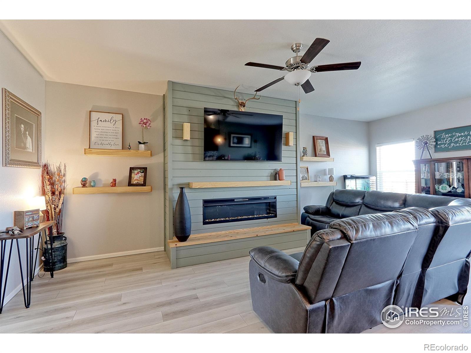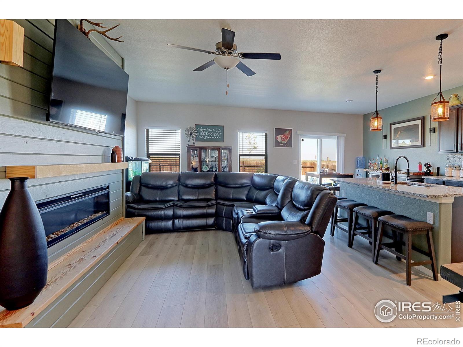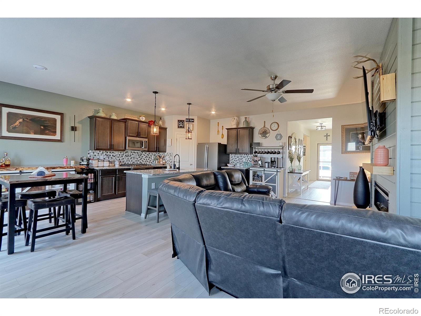 Final price reduction, well under market! Just 16 miles northeast of Brighton, discover this stunning ranch style home in the peaceful town of Keenesburg. Built in 2020 and thoughtfully upgraded throughout, this home blends modern comfort with custom touches you'll love. Step inside to find wood look laminate flooring flowing through most of the main living areas, with plush new carpet in the two secondary bedrooms. The kitchen shines with updated stainless steel appliances, granite countertops, a full tile backsplash, and plenty of space to cook and entertain. The highlight of the family room is a custom-designed fireplace and entertainment wall, soaring from floor to the 9-foot ceilings, both functional and beautiful. The spacious primary suite features a dream bathroom and large walk-in closet, creating the perfect retreat. Outside, enjoy a 19'x16' patio wired for a hot tub, a fully fenced backyard with raised garden beds, and an extra concrete pad with a walkway that connects to the front of the home. The two car garage is fully finished with hot and cold water hookups-ideal for a dog wash or easy car care. This move-in ready home offers smalltown charm, thoughtful upgrades, and modern convenience all just a short drive from Brighton or the Denver Metro area and is priced to sell quickly.