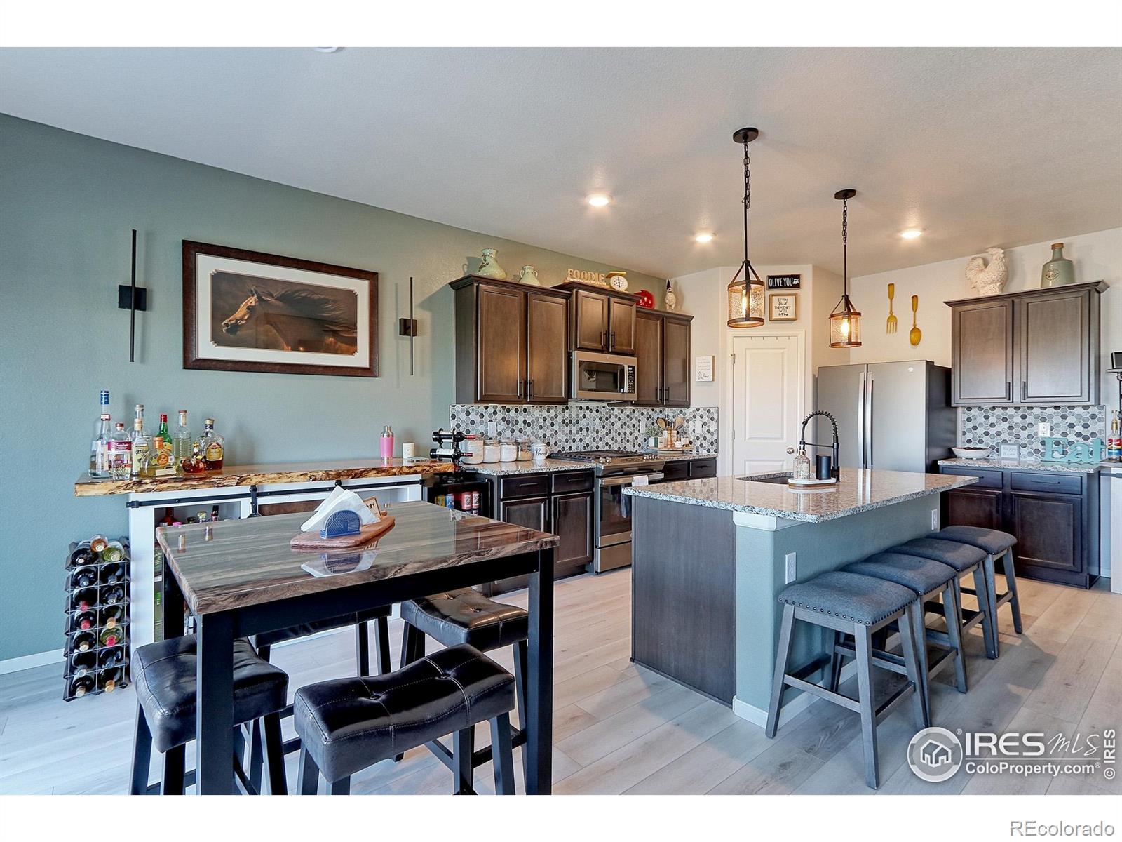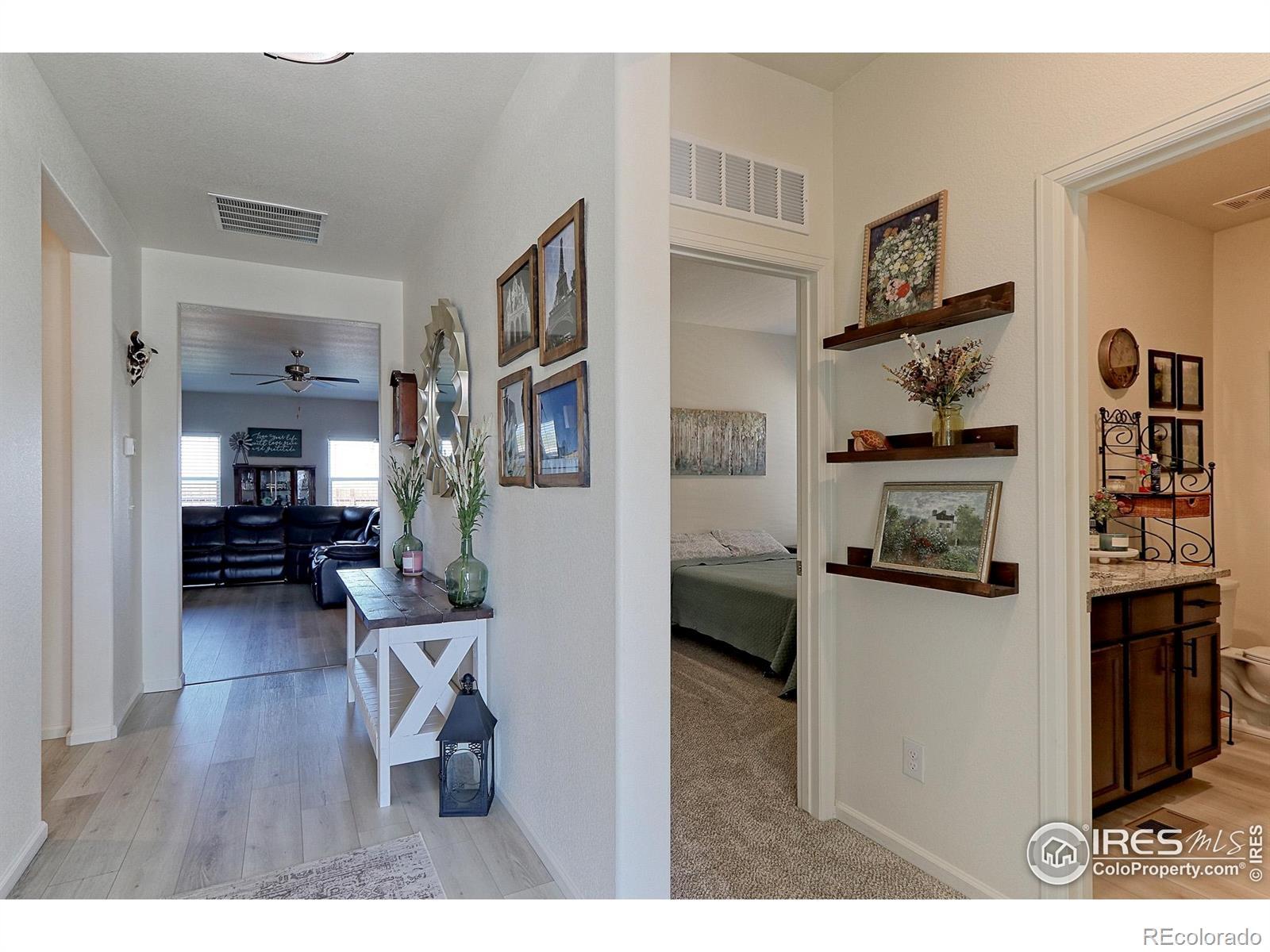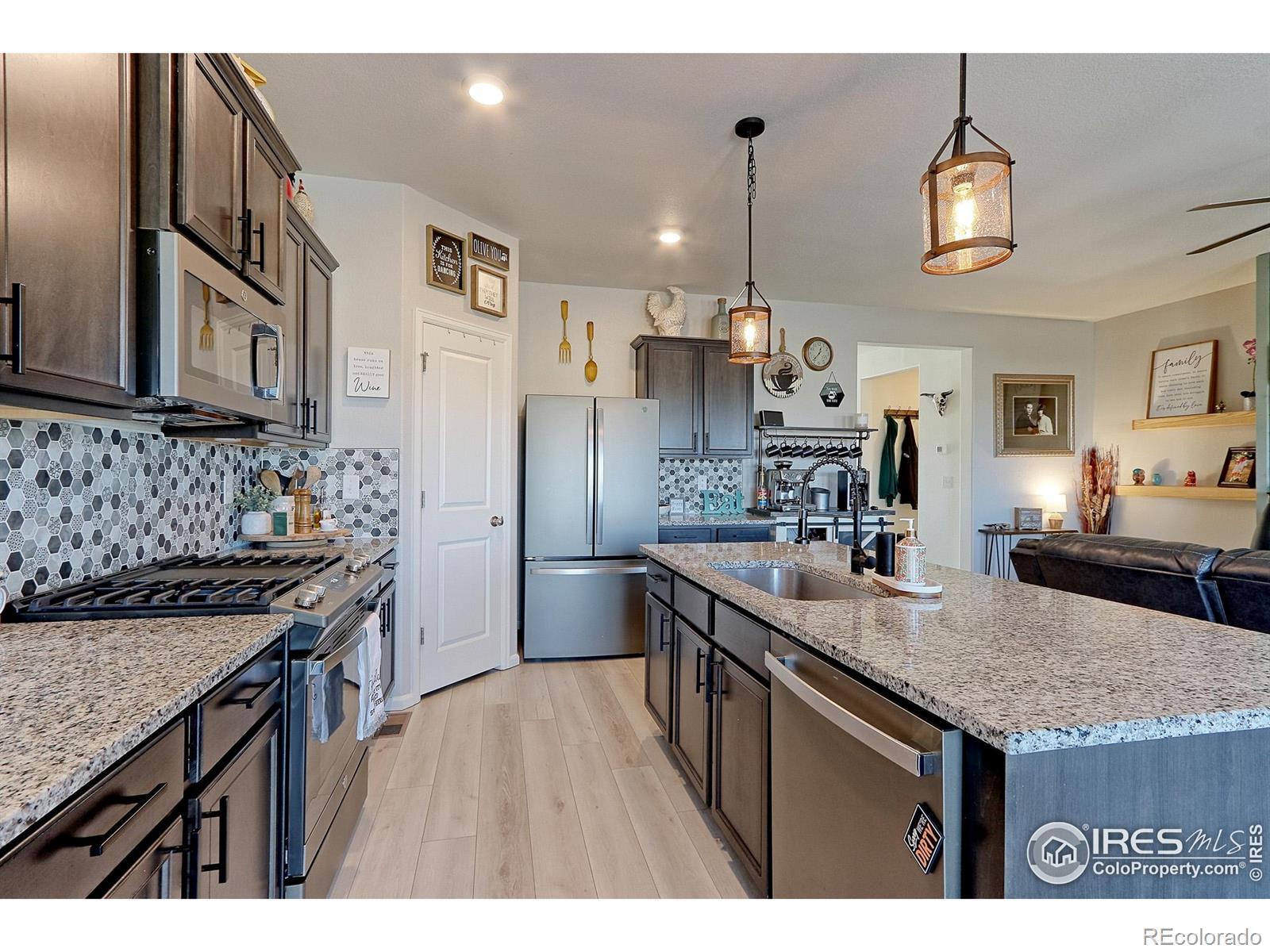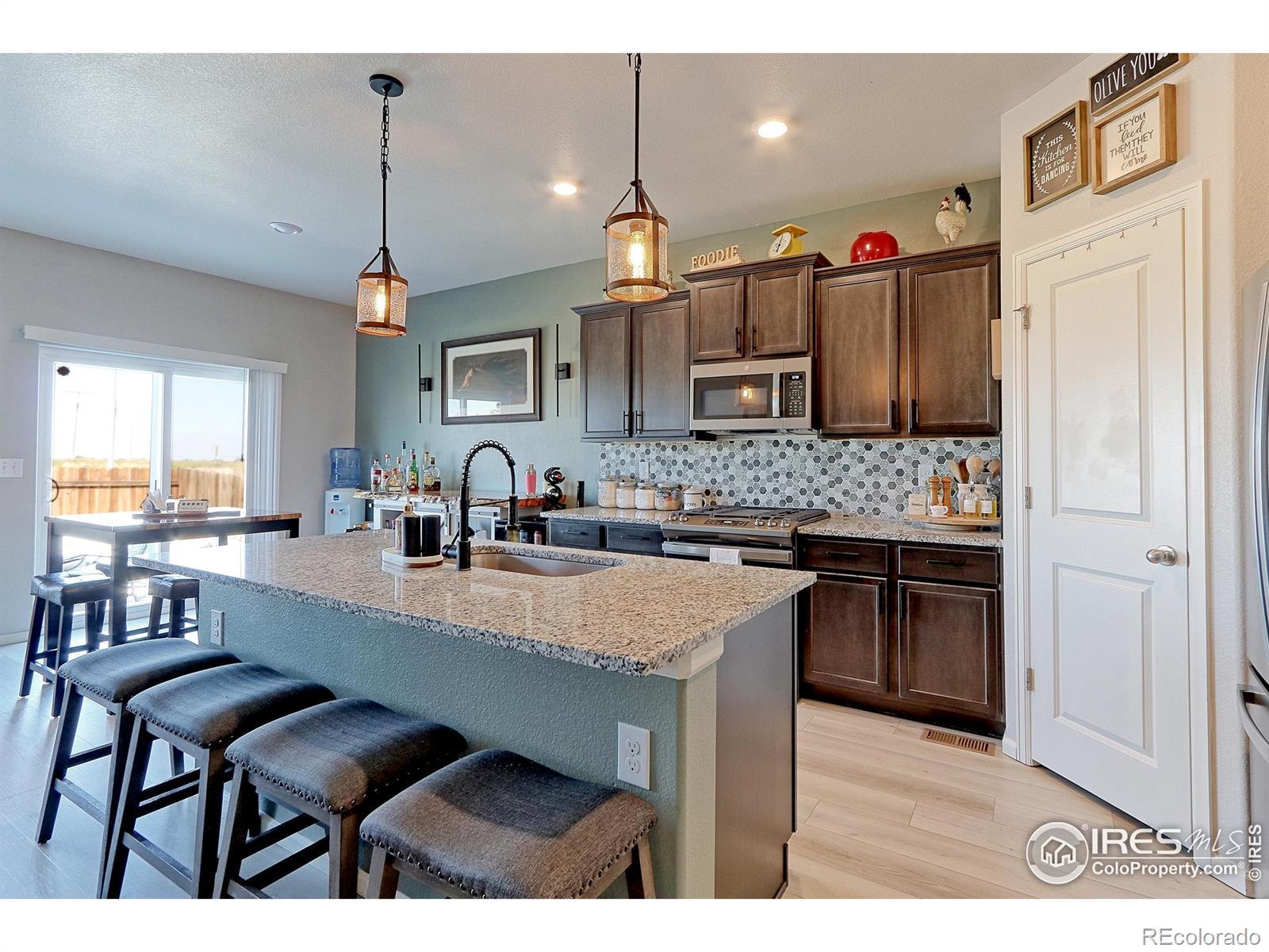 Final price reduction, well under market! Just 16 miles northeast of Brighton, discover this stunning ranch style home in the peaceful town of Keenesburg. Built in 2020 and thoughtfully upgraded throughout, this home blends modern comfort with custom touches you'll love. Step inside to find wood look laminate flooring flowing through most of the main living areas, with plush new carpet in the two secondary bedrooms. The kitchen shines with updated stainless steel appliances, granite countertops, a full tile backsplash, and plenty of space to cook and entertain. The highlight of the family room is a custom-designed fireplace and entertainment wall, soaring from floor to the 9-foot ceilings, both functional and beautiful. The spacious primary suite features a dream bathroom and large walk-in closet, creating the perfect retreat. Outside, enjoy a 19'x16' patio wired for a hot tub, a fully fenced backyard with raised garden beds, and an extra concrete pad with a walkway that connects to the front of the home. The two car garage is fully finished with hot and cold water hookups-ideal for a dog wash or easy car care. This move-in ready home offers smalltown charm, thoughtful upgrades, and modern convenience all just a short drive from Brighton or the Denver Metro area and is priced to sell quickly.