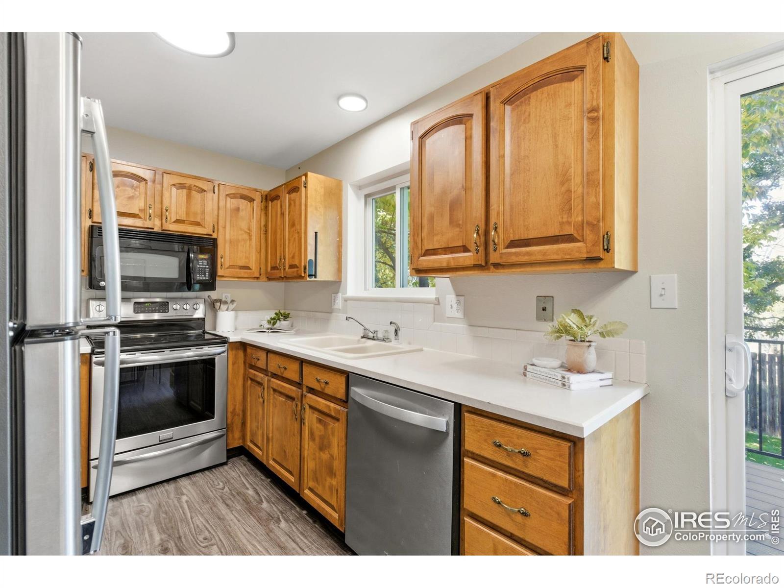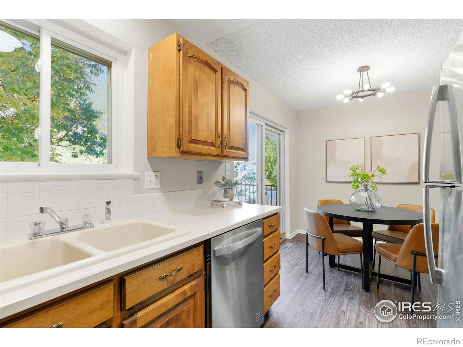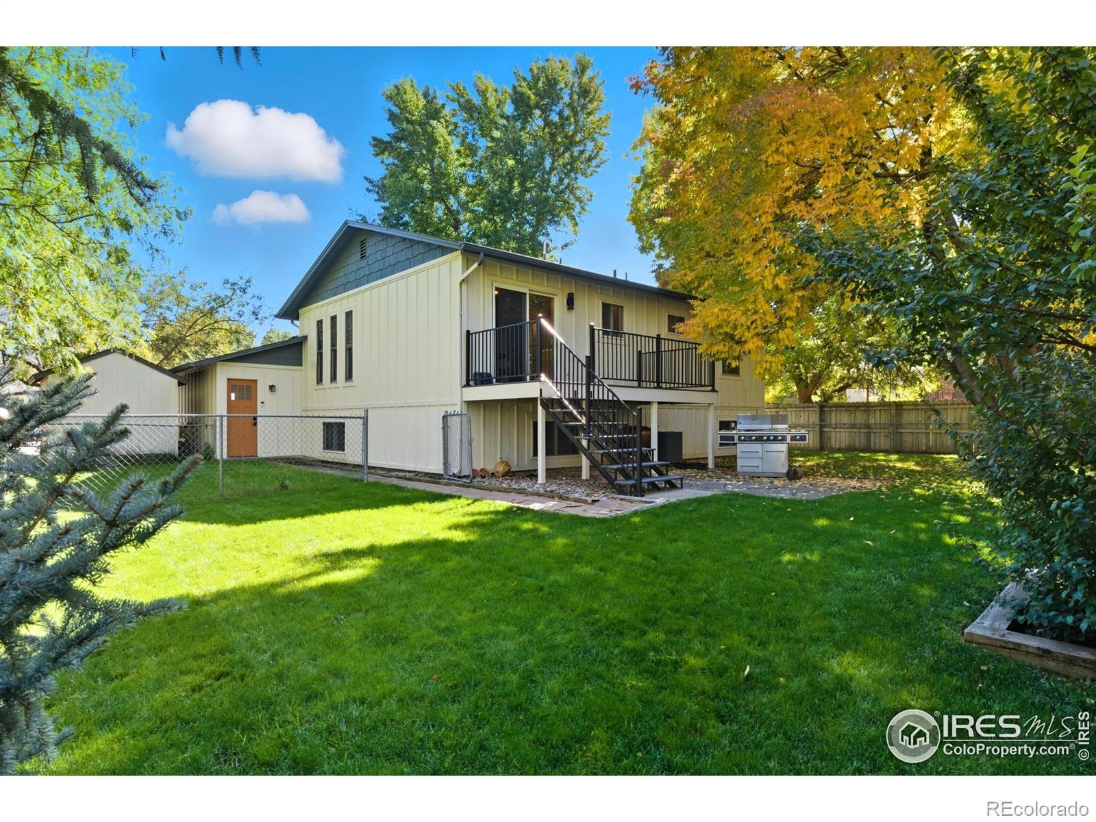 You found it! Do not miss this immaculate move-in ready home backing to OPEN SPACE and the Spring Creek Trail. Step out your back gate right onto the trail! And just 1 block from Rolland Moore Park. You'll have so much fun living the Fort Collins outdoor lifestyle here! Right when you pull up you will love the beautiful curb appeal of this home, with fresh exterior paint and modern updates. Light & bright layout with lots of windows and large living room with a cozy gas fireplace for crisp evenings. Two spacious bedrooms on the main level + completely updated bathroom straight out of HGTV! Walk out from your kitchen/dining onto the newly built deck with open space and Foothills views. Plus a lower level BBQ patio! Lots of room to play in this big fully-fenced yard with fresh sod & beautiful shade trees + separately fenced dog-run for the pup! Garden level basement offers a huge rec room + 2 bedrooms/1 bath. Updated LVP flooring & vinyl windows. This home comes complete with central AC & furnace. BONUS oversized 2-car attached garage WITH shop heater, perfect for your in-home workshop! Plus an additional storage shed, you'll have plenty of room for all the toys. No HOA. You'll be hard-pressed to find a better value at this price point in this epic Fort Collins location. Call for a tour today!