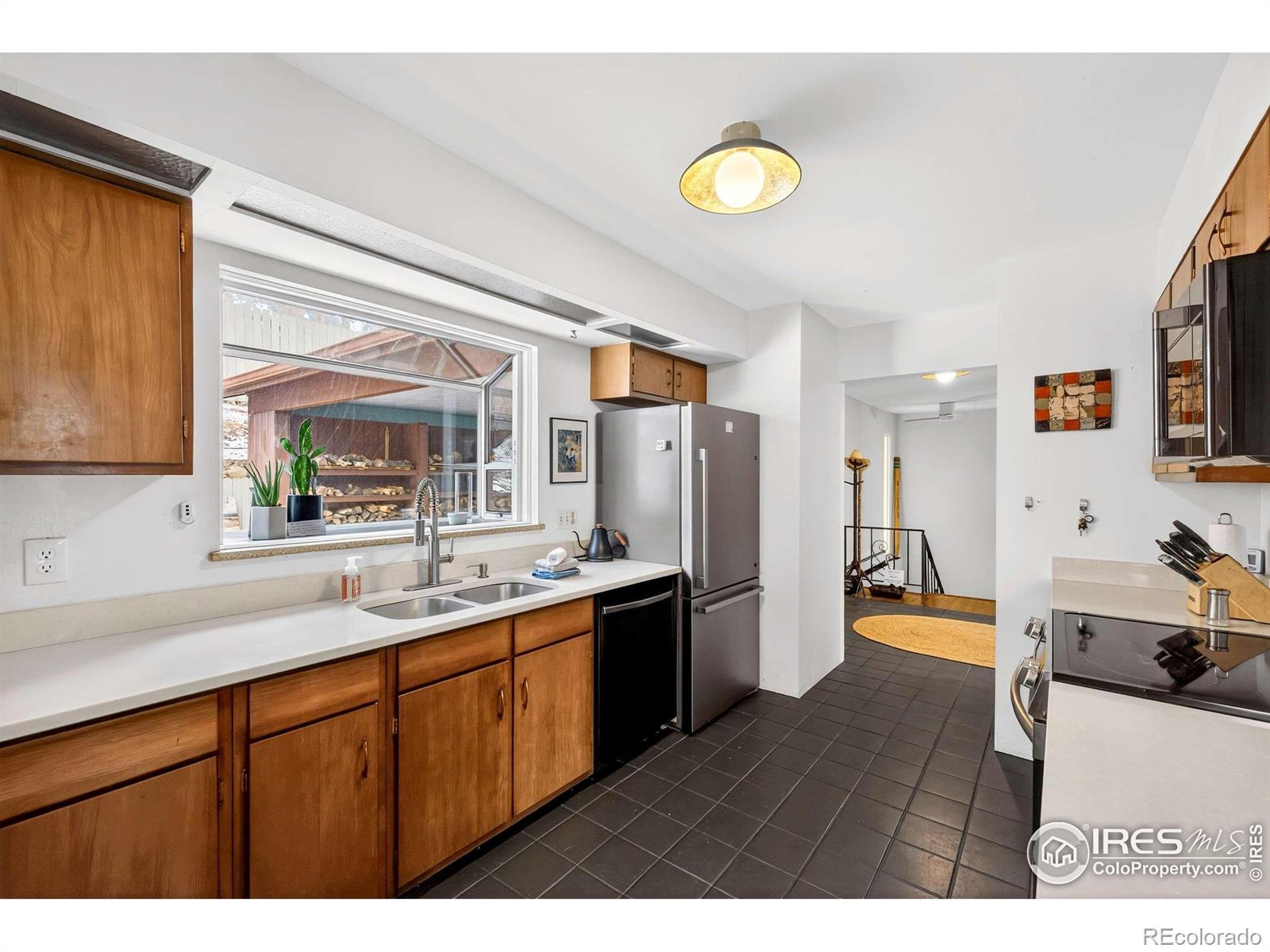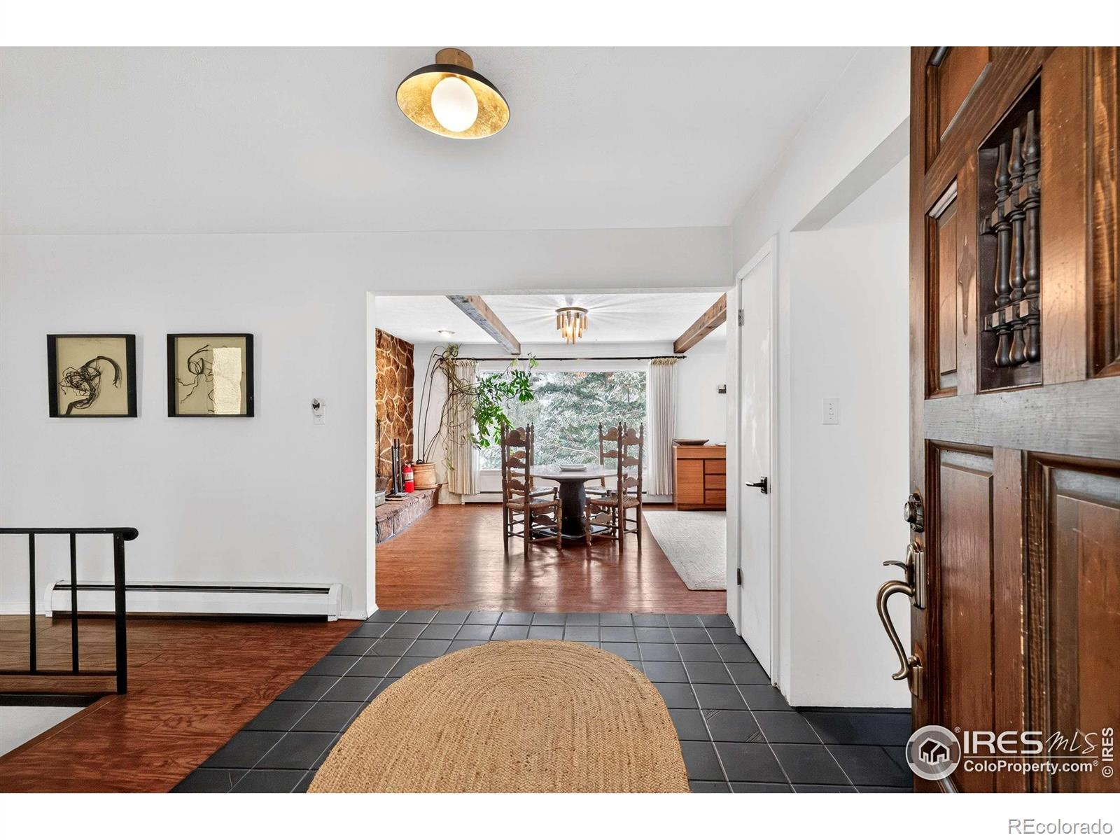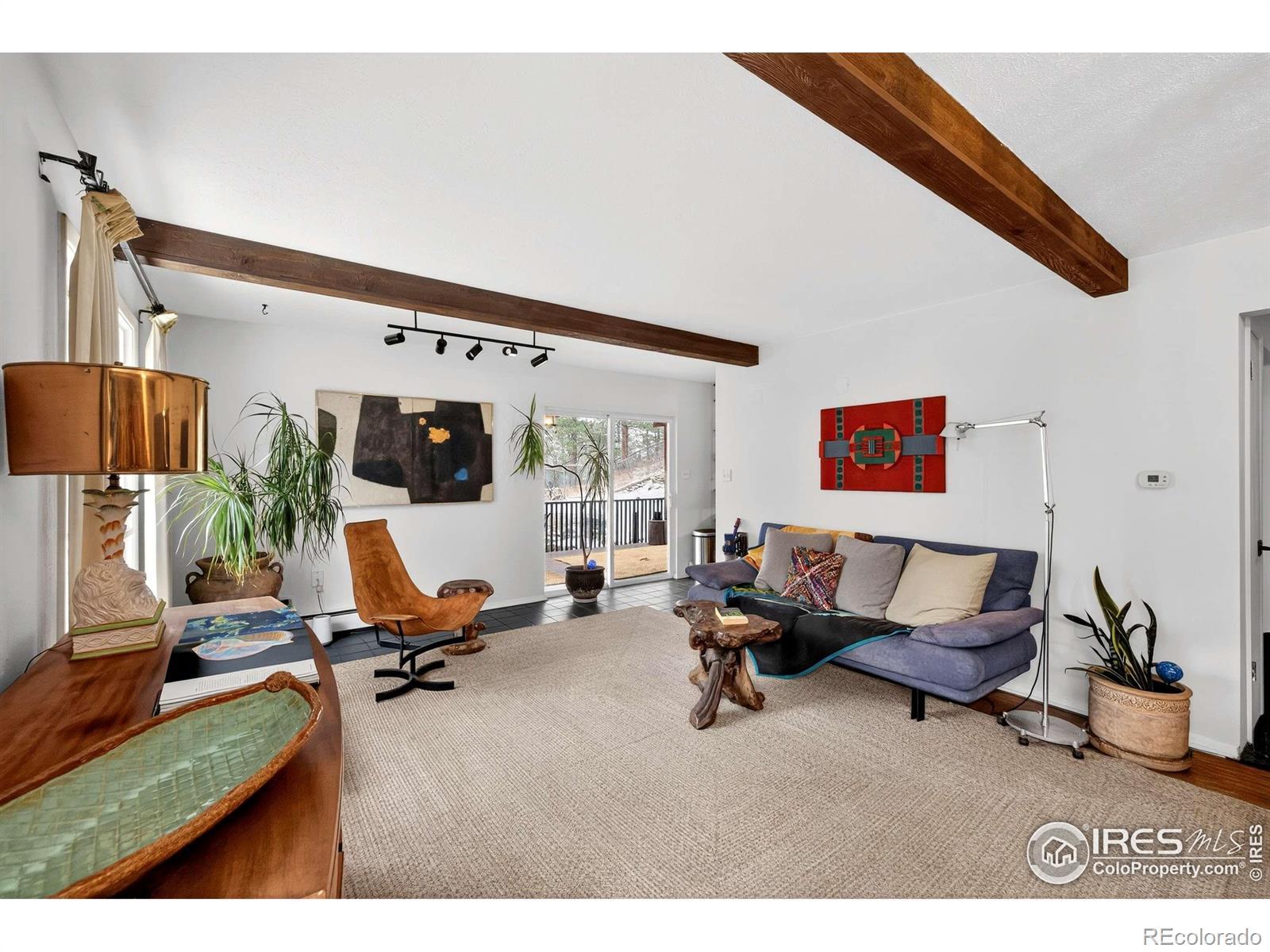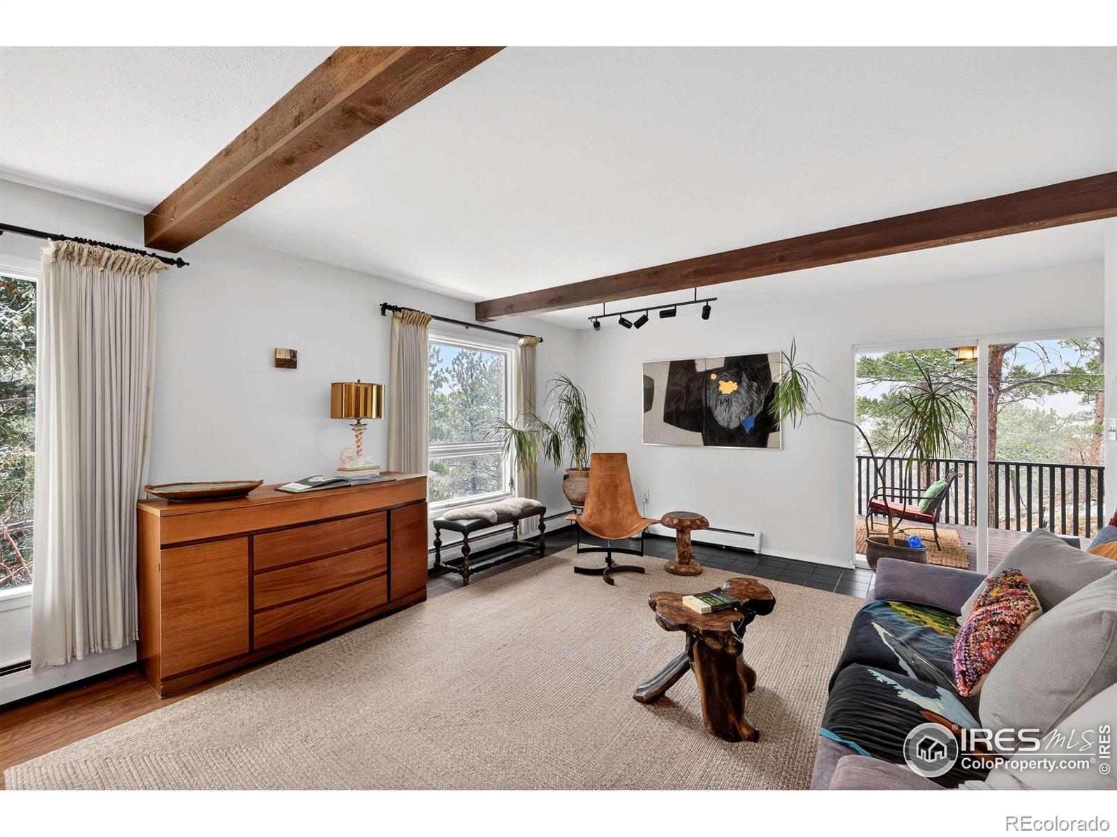 Incredible opportunity to own an idyllic mountain property walking distance to downtown Jamestown & the Merc. A convenient carport welcomes you home. As you enter through a striking, expansive double wood door to a living room with beamed ceilings and huge picture windows that frame stunning views of Porphyry and the surrounding woods. Thoughtfully preserved original features throughout blend seamlessly with modern updates, adding vintage appeal and charm to the home. You will love the cozy, wood-burning fireplace that anchors the living space with warmth and comfort. Step outside to the covered patio, the perfect place to spend quiet afternoons enjoying the views and wildlife. Freshly refinished cabinets adorn the kitchen, adding timeless character and featuring a new range. The main level primary bedroom is secluded and showcases unbeatable views. The full bath has been tastefully updated. Two secondary bedrooms on the walk-out lower level are spacious and bright. There is a wet bar in the rec room that welcomes entertainment and is available to convert into a guest suite. A flagstone patio is a serene retreat perfect for Colorado's indoor/outdoor lifestyle. Spend your days here indulging in the ever-inspiring drama of this remarkable setting in this well-appointed home.