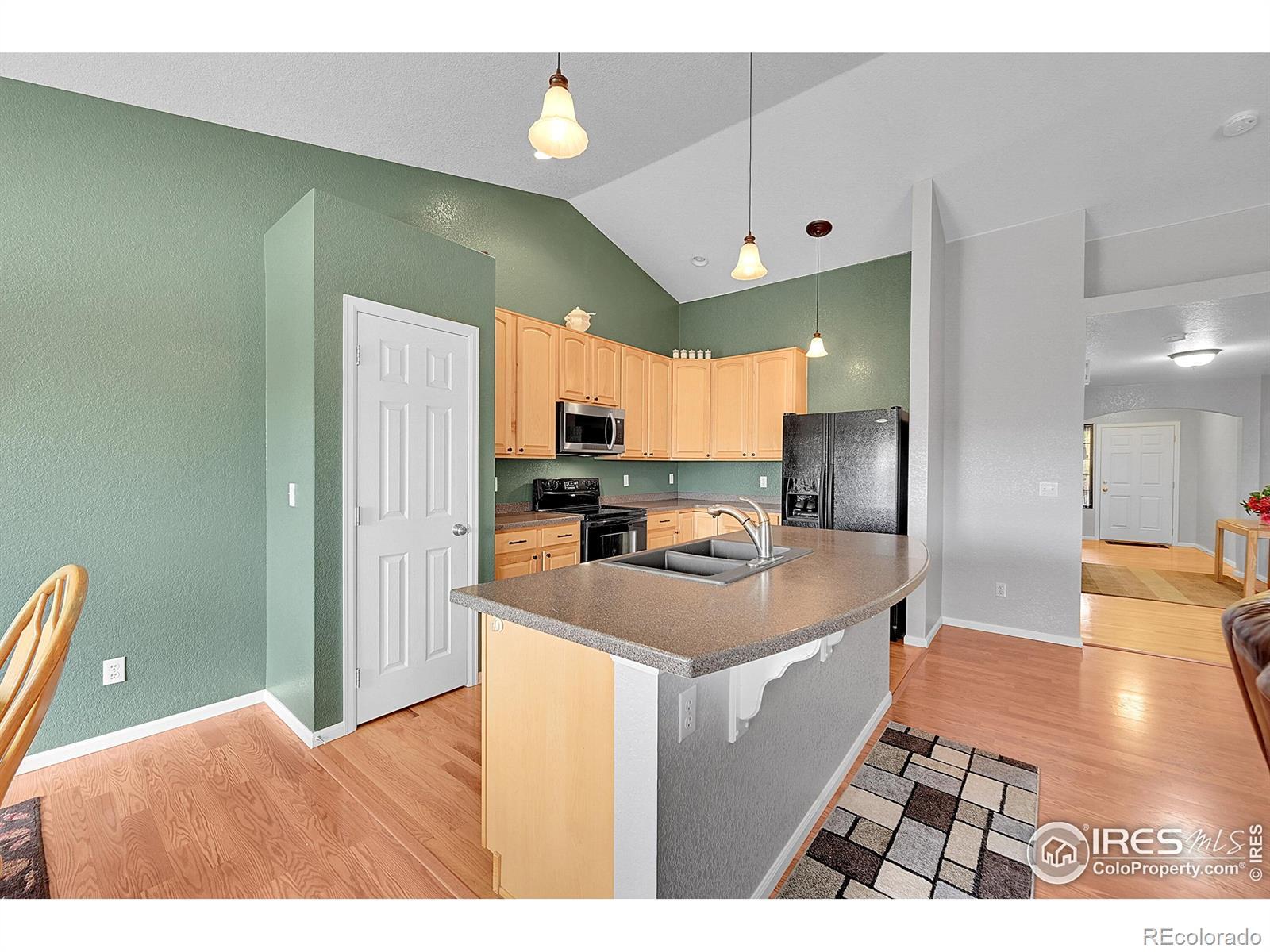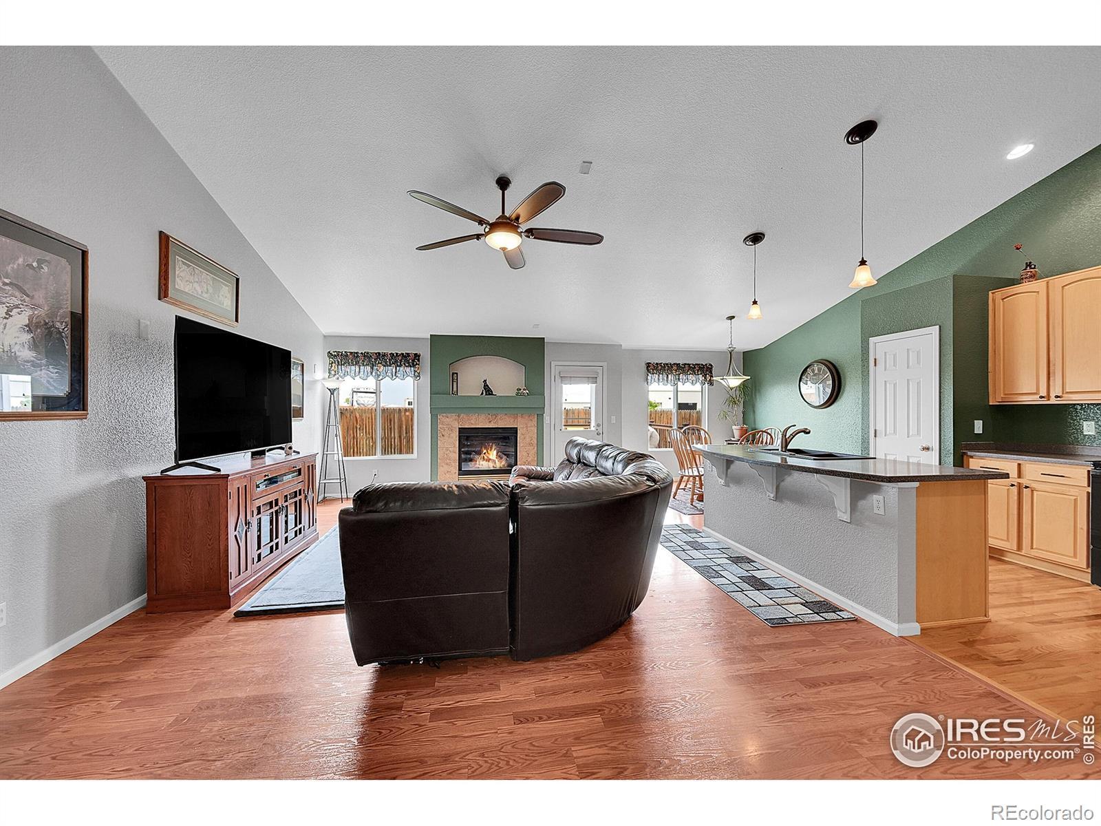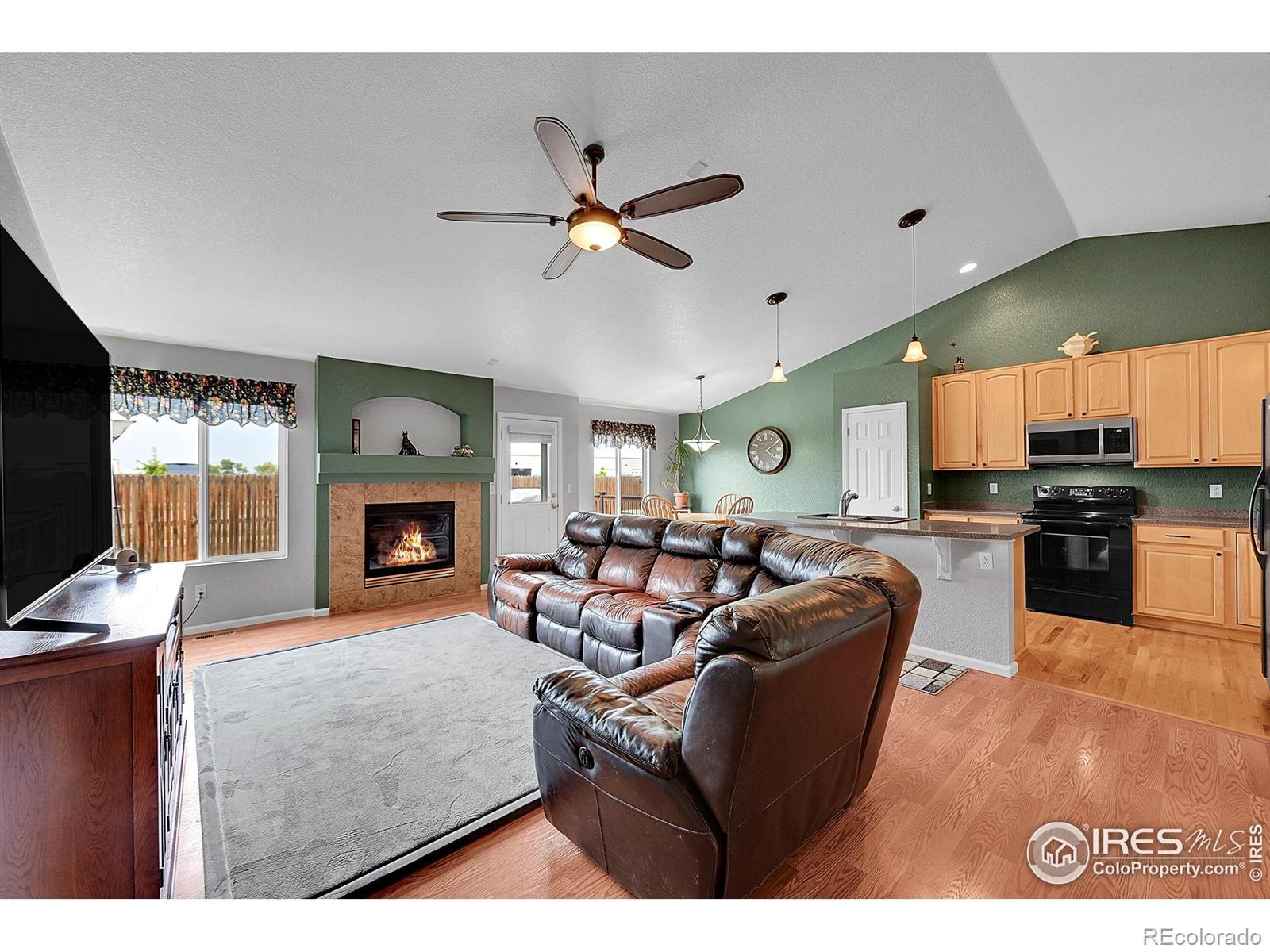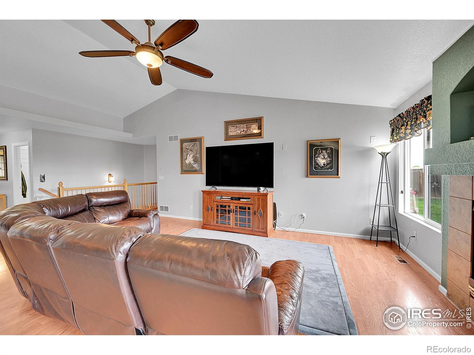 Welcome Home to Serenity and Style! Listed below its recently appraised value, this open and airy ranch offers the perfect blend of comfort, quality, and breathtaking mountain views. So thoughtfully upgraded, this home features beautiful hardwood floors throughout the entry and kitchen, Corian countertops, upgraded cabinetry, and stainless steel appliances including a smooth-top range, microwave, dishwasher, and refrigerator.The great room showcases dramatic vaulted ceilings, a cozy fireplace, and built-in surround sound wiring-ideal for entertaining or relaxing evenings at home. The oversized primary suite is a peaceful retreat with a luxurious full bath and a huge walk-in closet. Enjoy the convenience of main-level living with laundry on the main floor for easy access.Step outside to your gorgeous composite deck with custom railings, where you can unwind and take in panoramic views of Long's Peak and the surrounding greenbelt. The large unfinished basement offers endless possibilities for expansion, featuring two sump pumps and a rough-in for a future third bathroom. With a newer roof for added peace of mind, this home combines modern upgrades with the tranquility of Colorado living.Come experience the best of ranch-style living-where every detail has been designed for comfort, beauty, and relaxation. Located within walking distance to parks, trails, schools, churches, shopping, restaurants and more and conveniently located approximately 30 minutes from Denver, Boulder and Fort Collins.