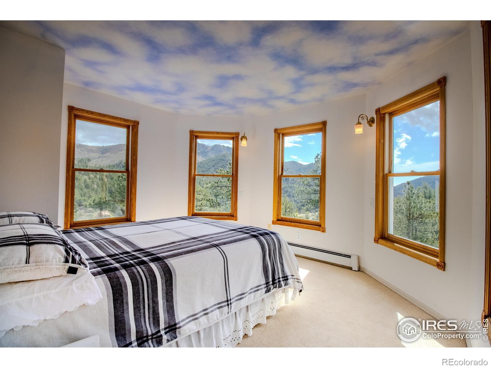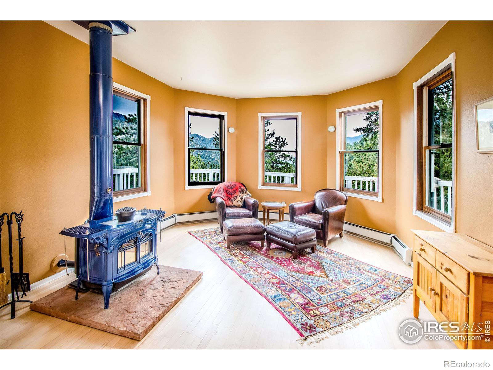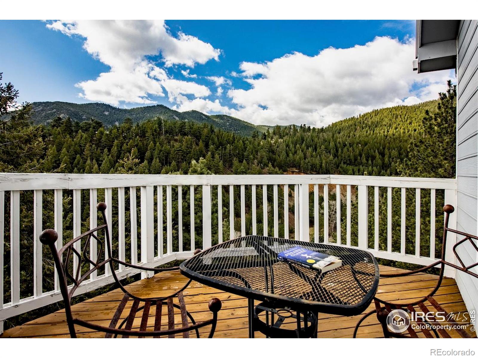 This is the Colorado lifestyle at its best! Motivated Seller!! Enjoy panoramic mountain views from every window of this lovely home, just 20 minutes from Boulder and nestled above the picturesque community of Jamestown. You'll be swept off your feet by this unique and inviting home with incredible 270deg mountain views. The open living room, dining room, and kitchen are designed to maximize the vistas and sparkle with the newly finished floors. Enjoy evenings around the gorgeous wood stove with no outside lights in sight. The kitchen features a new gas stove and a classic country sink. The primary bedroom offers sweeping views in every direction ensuring a serene start to each day. With three comfortable bedrooms, two full & one 3/4 baths, plus a flex space, there is plenty of room for everyone plus guests. Glorious outdoor living is enhanced by multiple decks, perfect for enjoying the dramatic surroundings. Frequent wildlife visitors and outstanding sunrises add to the boundless charm of this home. Located just a short distance from the lively heart of this peaceful community, it's a short stroll to great food and live music at the world famous Jamestown Merc Cafe. This home is conveniently situated up the road from the local elementary school, a true treasure. Ideal for outdoor enthusiasts, this property offers quick access to 100's of acres of Nat'l Forest with incredible hiking trails, mountain activities, road & mtn biking. Nature's best at your doorstep. With the vibrant city of Boulder just 20 min away you're an easy drive from world class entertainment, schools, restaurants and more! Eldora ski resort and amazing XC skiing is a short drive up the hill. This home combines modern comfort, stunning natural beauty, in an amazing location. Don't miss your chance to become king of your own Colorado castle!