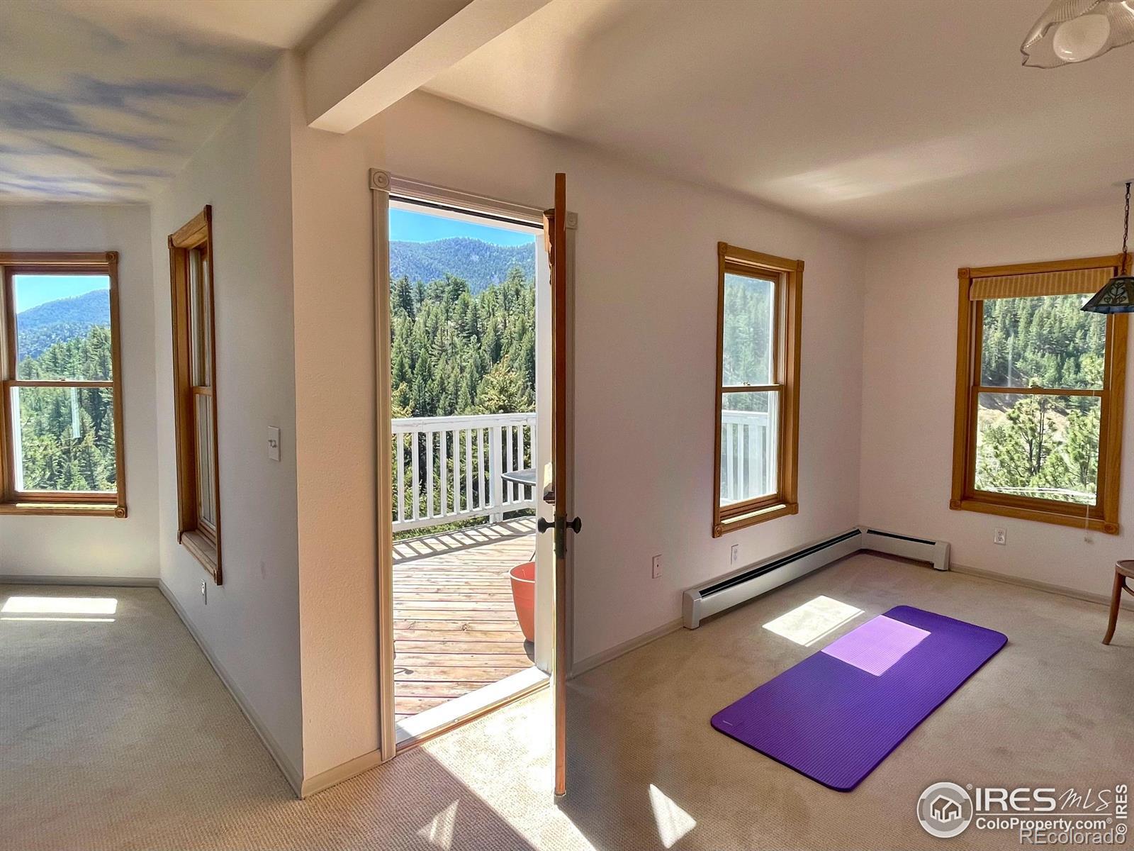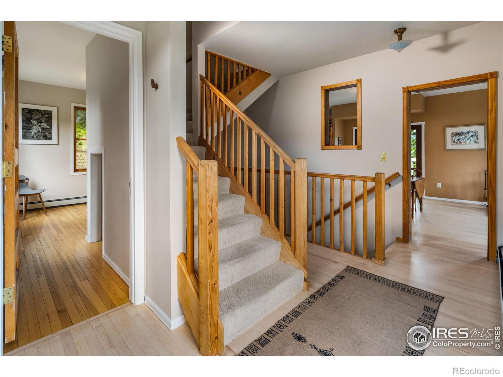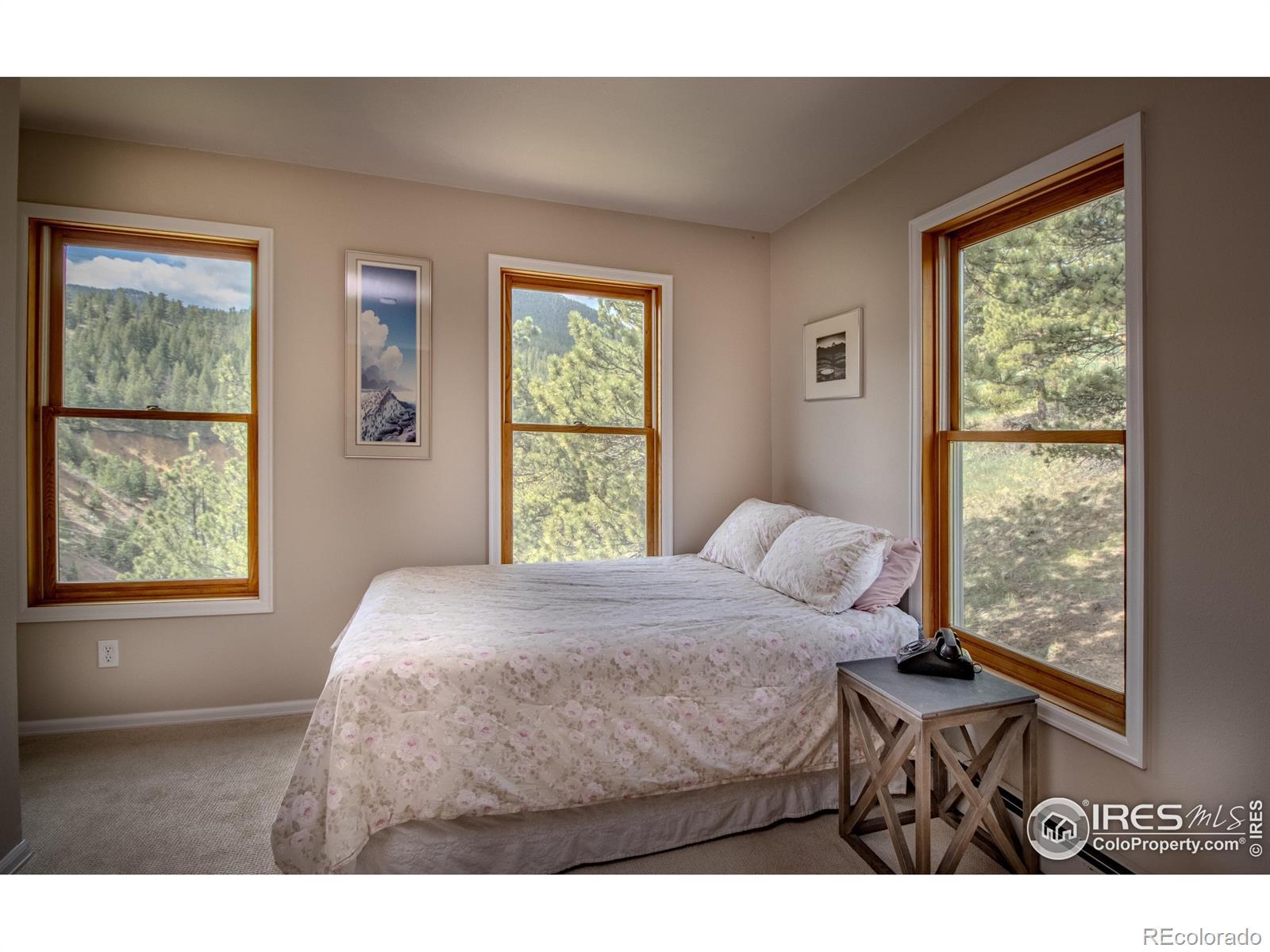 This is the Colorado lifestyle at its best! Motivated Seller!! Enjoy panoramic mountain views from every window of this lovely home, just 20 minutes from Boulder and nestled above the picturesque community of Jamestown. You'll be swept off your feet by this unique and inviting home with incredible 270deg mountain views. The open living room, dining room, and kitchen are designed to maximize the vistas and sparkle with the newly finished floors. Enjoy evenings around the gorgeous wood stove with no outside lights in sight. The kitchen features a new gas stove and a classic country sink. The primary bedroom offers sweeping views in every direction ensuring a serene start to each day. With three comfortable bedrooms, two full & one 3/4 baths, plus a flex space, there is plenty of room for everyone plus guests. Glorious outdoor living is enhanced by multiple decks, perfect for enjoying the dramatic surroundings. Frequent wildlife visitors and outstanding sunrises add to the boundless charm of this home. Located just a short distance from the lively heart of this peaceful community, it's a short stroll to great food and live music at the world famous Jamestown Merc Cafe. This home is conveniently situated up the road from the local elementary school, a true treasure. Ideal for outdoor enthusiasts, this property offers quick access to 100's of acres of Nat'l Forest with incredible hiking trails, mountain activities, road & mtn biking. Nature's best at your doorstep. With the vibrant city of Boulder just 20 min away you're an easy drive from world class entertainment, schools, restaurants and more! Eldora ski resort and amazing XC skiing is a short drive up the hill. This home combines modern comfort, stunning natural beauty, in an amazing location. Don't miss your chance to become king of your own Colorado castle!