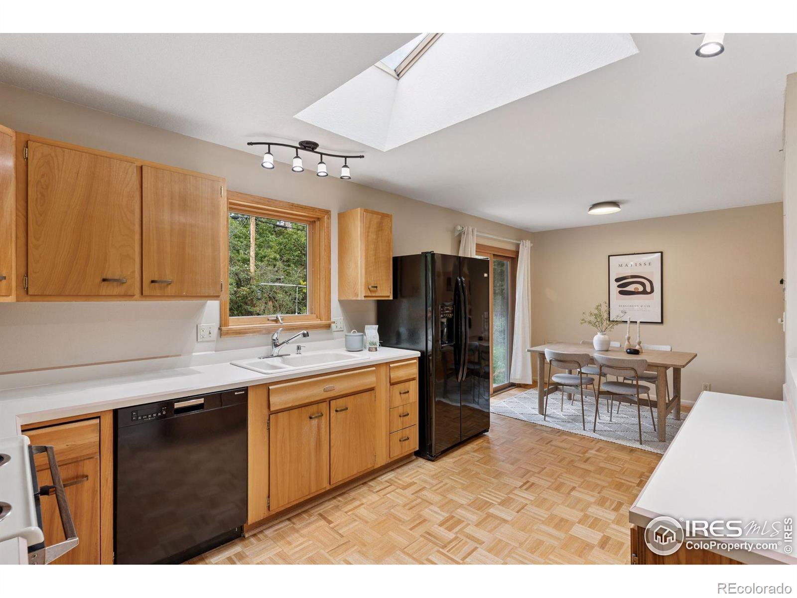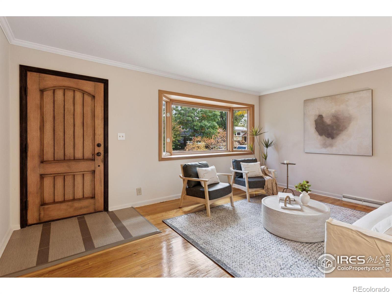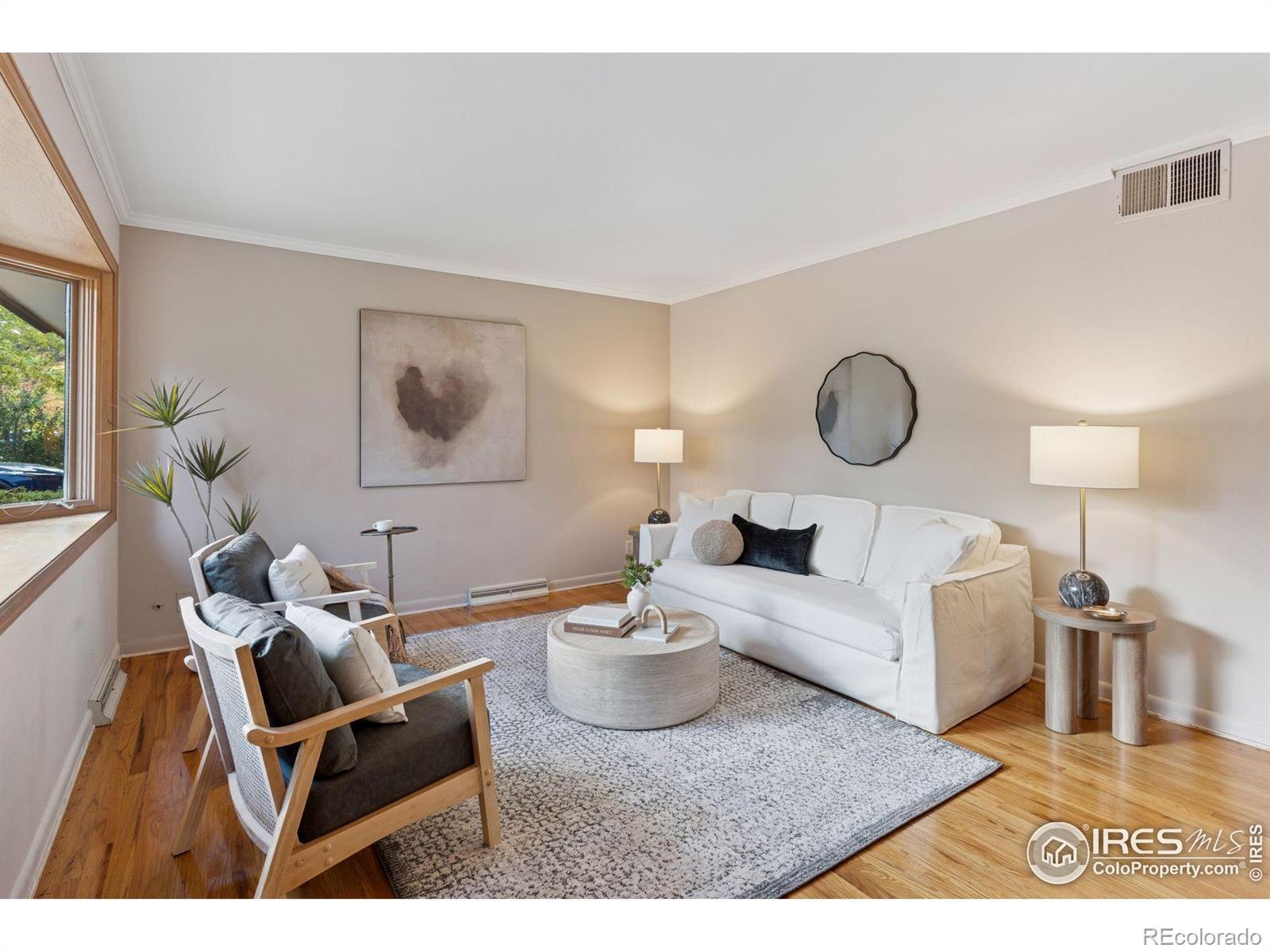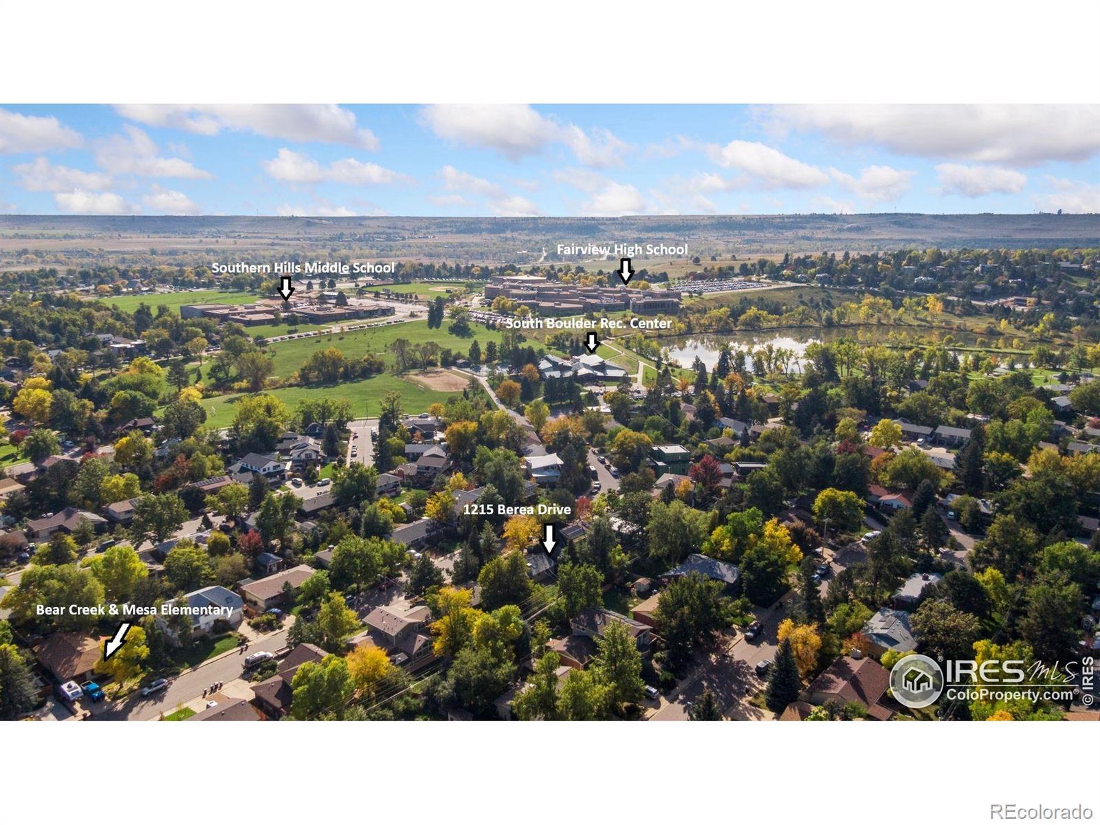 Welcome to this beautiful ranch-style home just a block from the South Boulder Rec. Center, Viele Lake, and trails. The home offers 3 upstairs bedrooms and real hardwood floors throughout the main level. A bright, open living room greets you and provides a bonus bay window for more light and coziness. The open kitchen design is bright with an added skylight that lets in natural sunlight. The separate dining room space opens to the private backyard. The lower basement offers a large recreation room. Additionally, there are 2 more bedrooms, each with expanded, larger windows allowing in ample natural light and a shared 3/4 bath. The basement also has space with abundant storage. The backyard is a natural fenced-in oasis with many trees for privacy and shade, and plenty of space for outdoor enjoyment. Solar (owned) offsets a portion of the energy consumption, making this a great, efficient home. Looking at schools? This home is close to Bear Creek Elementary, Southern Hills Middle, and Fairview High School. The neighborhood offers close and convenient shopping at Whole Foods, King Soopers, many eateries, and more, all just a few blocks away. Don't wait and miss out on this great opportunity to enjoy the coveted area of Table Mesa in SW Boulder.