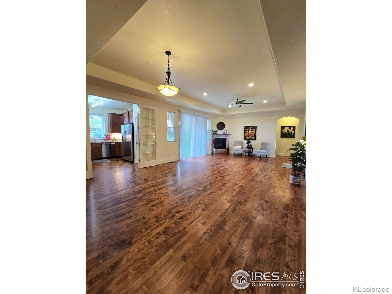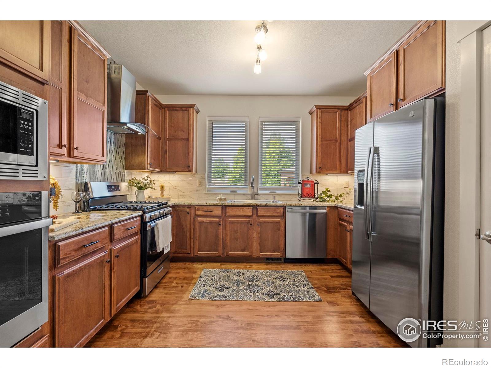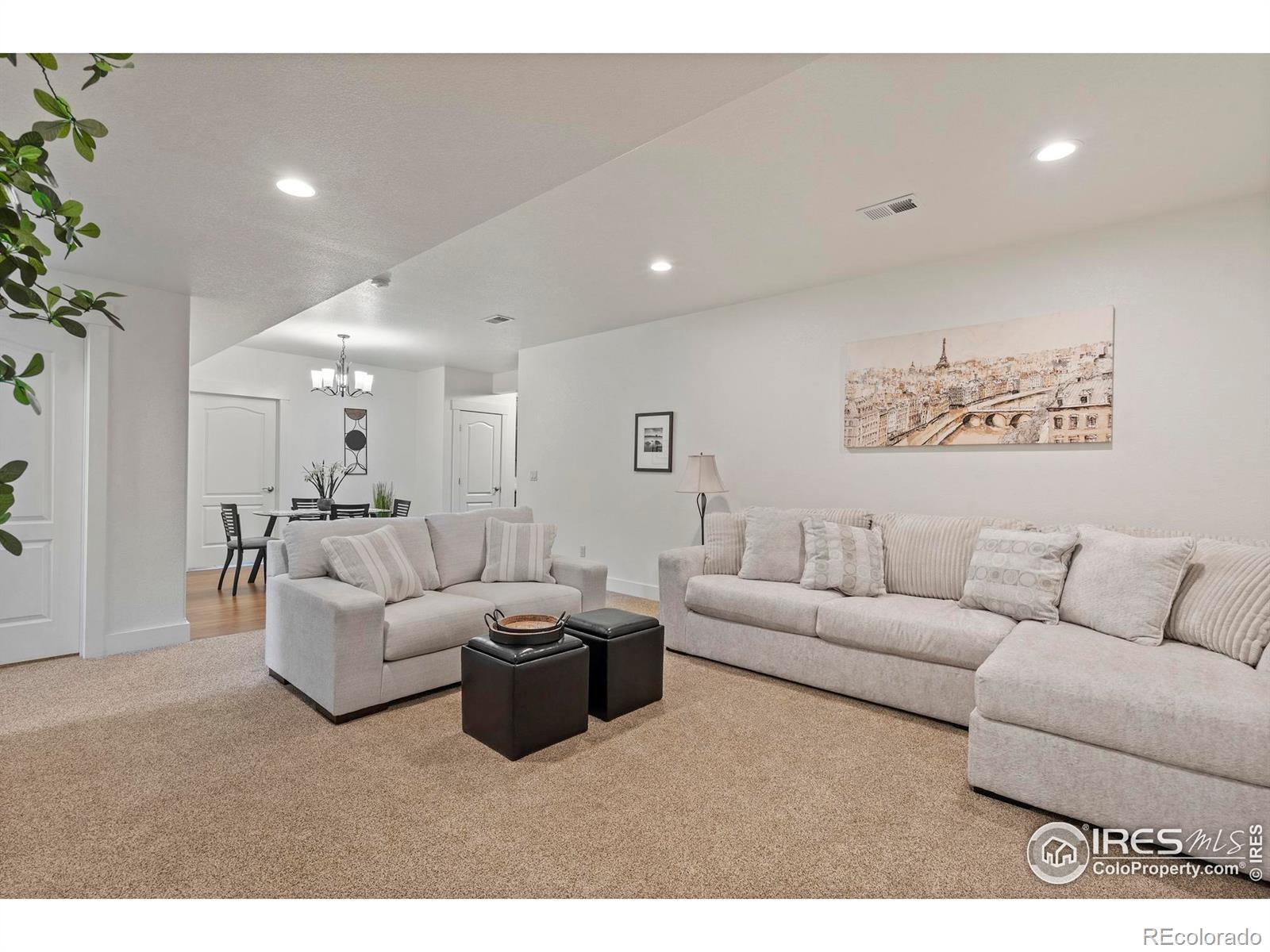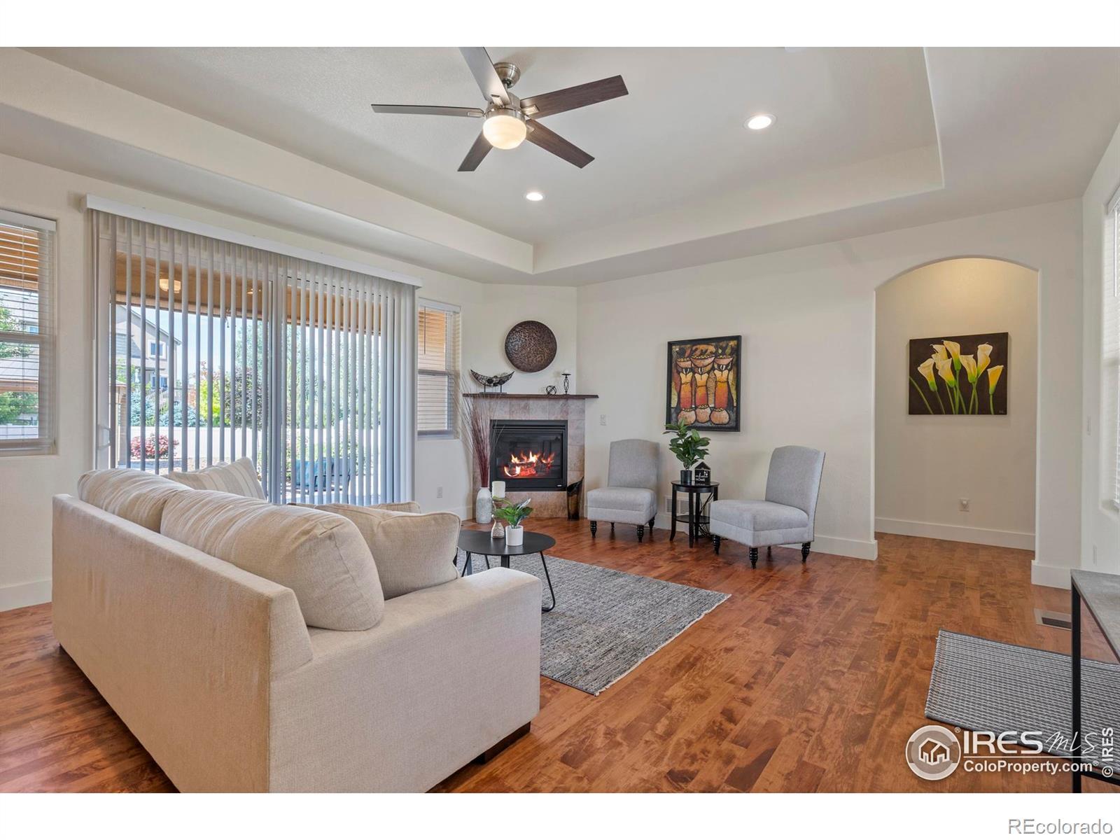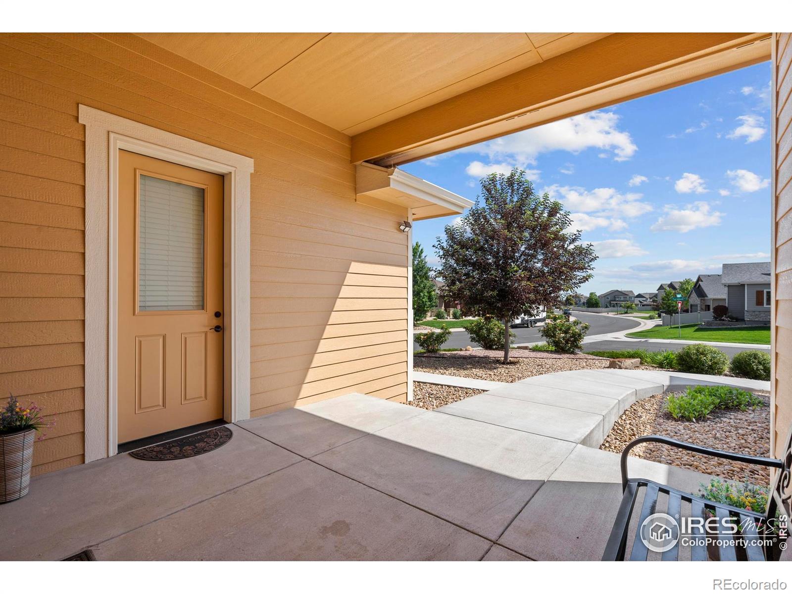 Discover refined elegance in this remarkable custom-designed home in the heart of Windsor. Built with exceptional attention to quality and detail, this residence blends timeless luxury with modern innovation, presenting an exclusive haven for buyers seeking comfort, sophistication, and flexibility. Enter through a welcoming, ramped entryway and enjoy expansive living spaces impressively appointed with 10-foot ceilings and rich maple hardwood flooring throughout. The gourmet kitchen features granite countertops, maple cabinetry, and a stylish tile backsplash, flowing seamlessly into a light-filled living and dining area. The primary suite offers an indulgent retreat with a five-piece bath and private 10x14 ft covered patio, where you can enjoy the serene, professionally landscaped backyard. The professionally finished lower level offers outstanding versatility for multi-generational living or longer guest visits. With direct access from the mud room, it has 2 bedrooms, second laundry including washer/dryer, large living/dining area, and a beautiful full kitchen. Multiple covered patios-including a large front porch and a 12x17 ft back patio-are perfect for quiet mornings or larger gatherings, while the beautifully landscaped xeriscape garden with drip irrigation and a 12x12 ft backyard gazebo creates an enchanting outdoor oasis. This thoughtfully designed home includes a tankless water heater, 2-zone HVAC system, HRV air mixing, and whole-house humidifier for year-round comfort. Upgrades such as hardwired ethernet and premium Hunter Douglas & Levolor blinds add convenience and style. The oversized 3-car garage is finished with insulation, epoxy floors, and hot and cold water taps, offering plenty of room and functionality. Fully enclosed Vinyl fenced in large back yard perfect to sit and enjoy the outdoors. Located in a peaceful neighborhood, this exceptional home is close to top-rated restaurants, shopping, and excellent schools. Schedule a private tour today!!